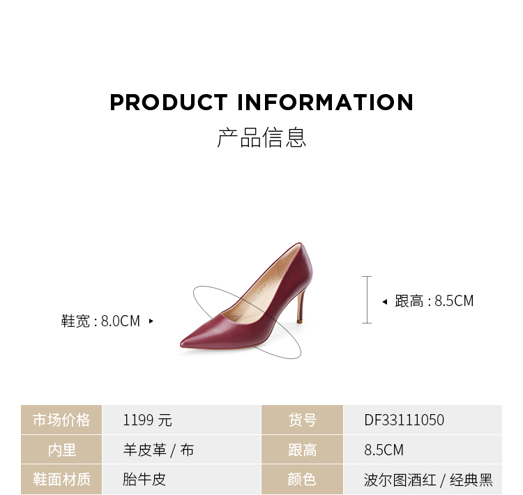 DFuse迪芙斯秋季新款牛皮尖头气质细跟高跟单鞋女DF33111050