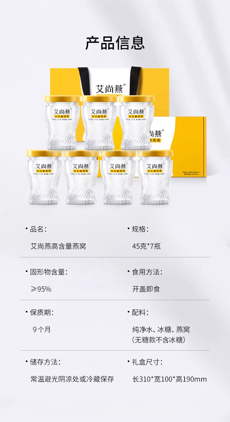 - 艾尚燕专注高含量燕窝10年!