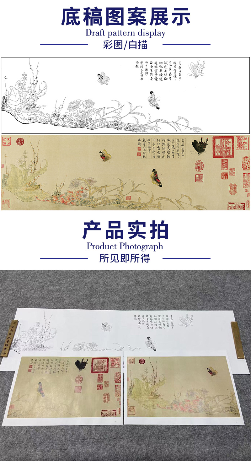 【长卷】工笔花鸟蝴蝶画白描底稿古画长卷赵昌《写生蛱蝶图》多种白描尺寸可选G005