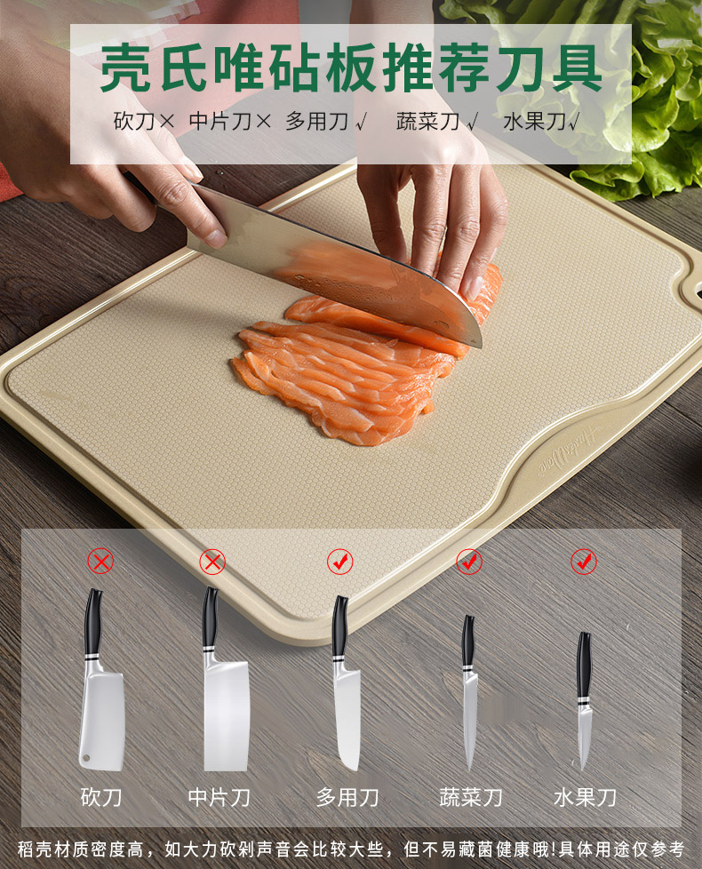 壳氏唯稻壳菜板家用厨房切菜板防霉防滑无菌水果砧板双面案板