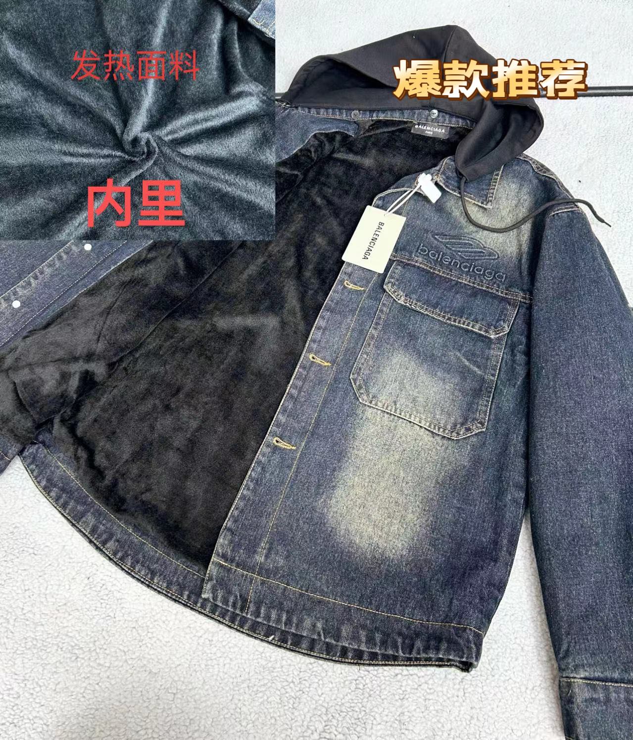 230 货号190785230 yg Bal/巴黎世家2023秋冬新款!内里毛绒。自带热感,一件过冬,保暖,效果超级好。穿在身上不显臃肿,特别好看。做旧情侣款牛仔外套!谁穿谁好看!Logo立体高温压印非常好看。各大网红都在穿。自留款可以带一件,回去试一下,真的非常好看,效果一级棒。
