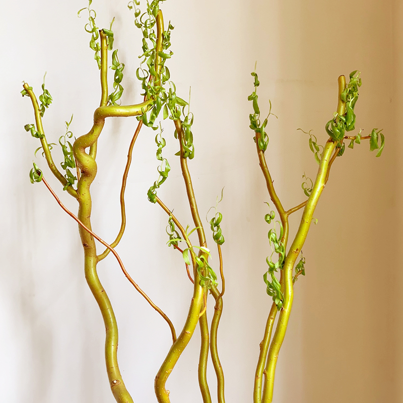 龙柳因枝条蜿蜒如龙而得名,黄金龙柳的枝条呈金色,比普通龙柳的枝条更粗壮,枝条苍劲的质感、天性自然的舒展,极具文艺气质。