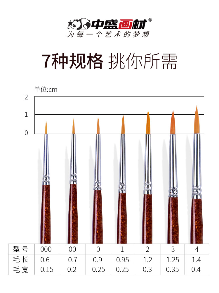 中盛画材 水彩水粉勾线笔油画勾线笔描线笔描边笔数字油画笔勾边700