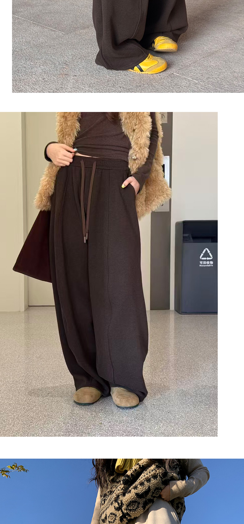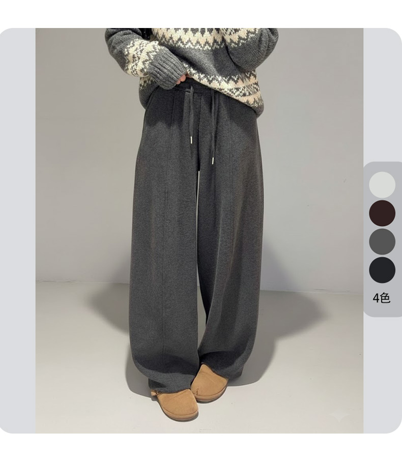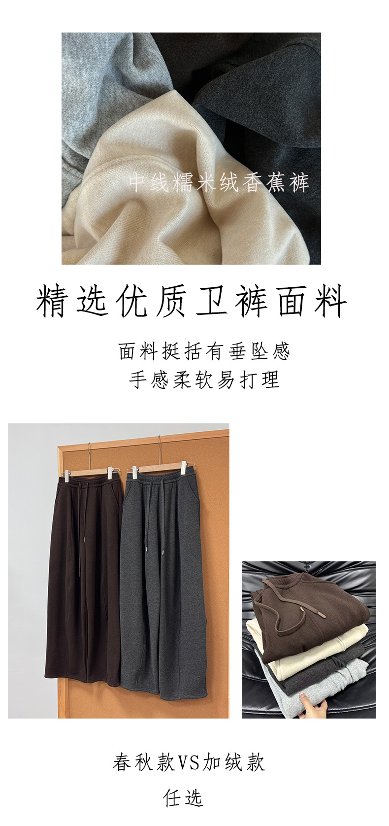 【合作款】糯米绒垂感抽绳毛呢阔腿弯刀裤 yc0112001