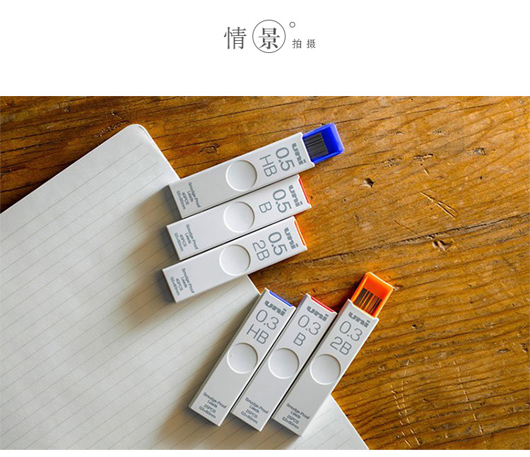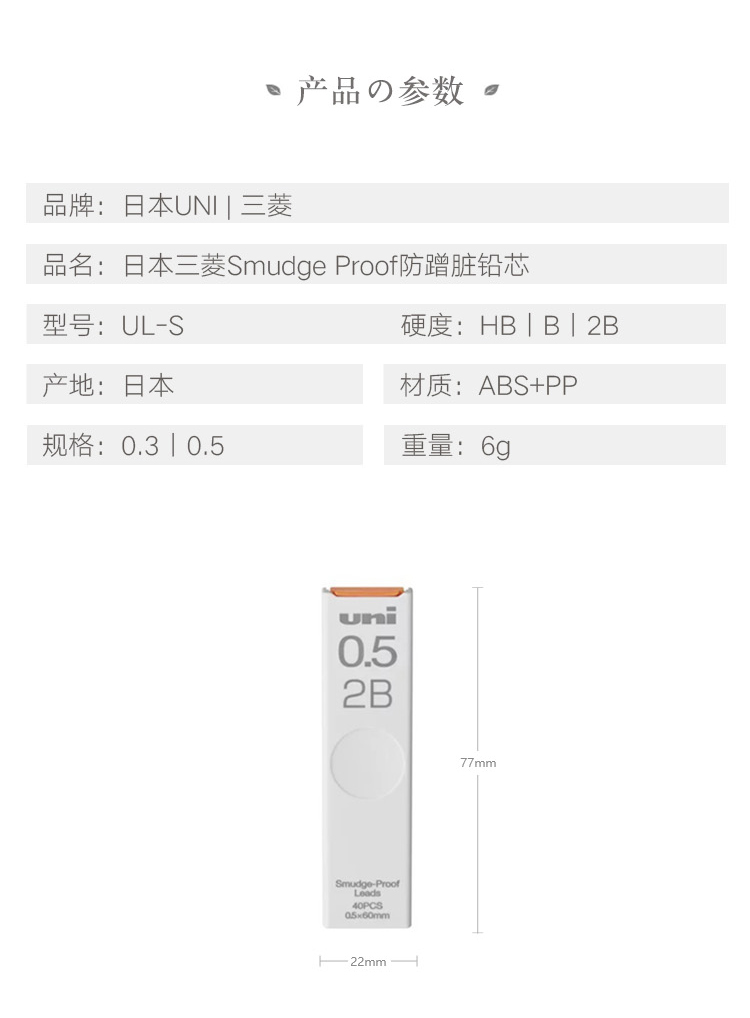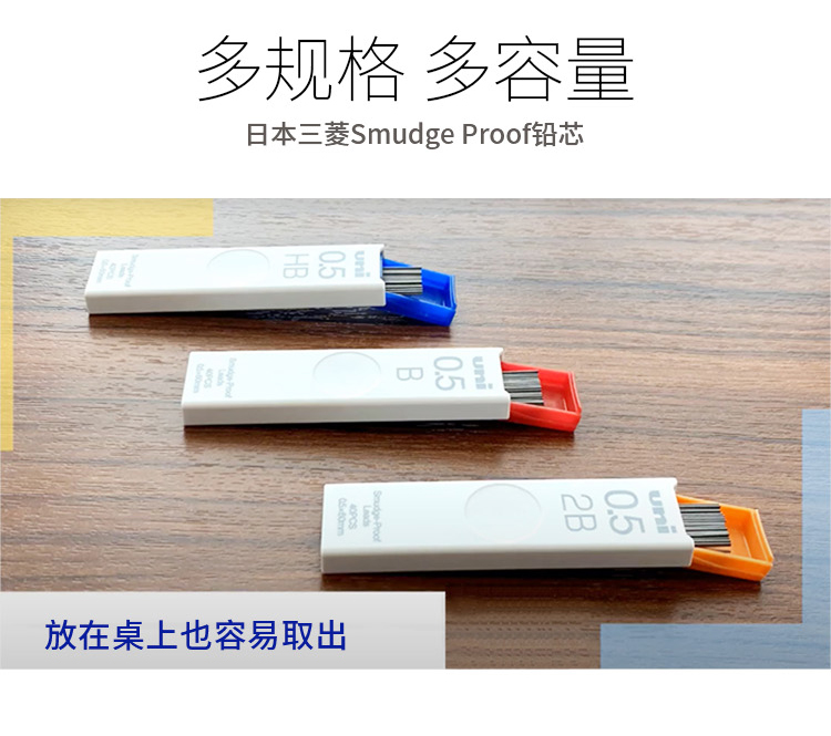 UNI三菱UL-S防蹭脏铅芯Smudge Proof浓黑不晕染 防污替芯自动铅芯0.5 0.3 0.7不易断活动铅笔芯2b hb