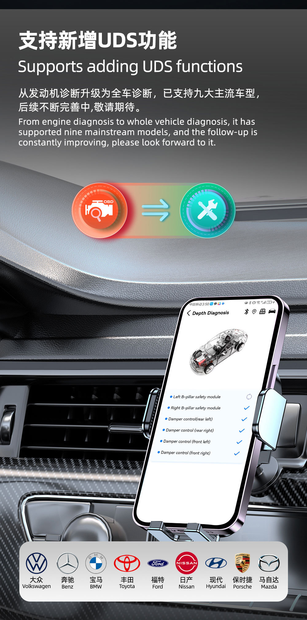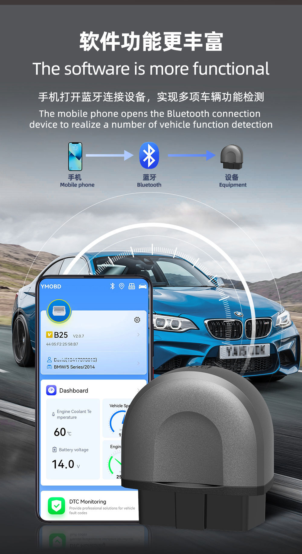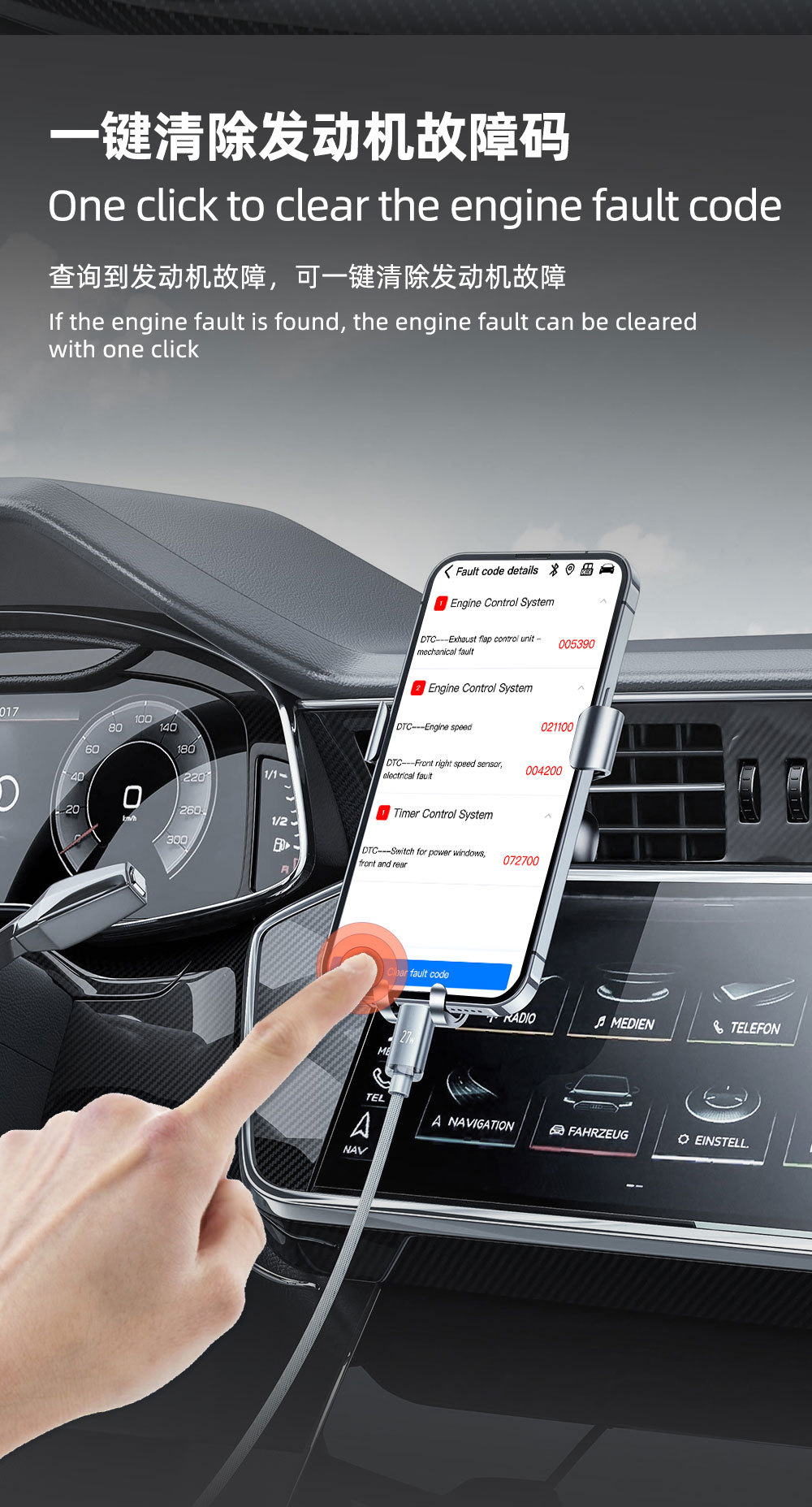 OBD汽车故障检测仪诊断仪 读取清除故障码解码器 全车故障检测诊断 读取数据流 蓝牙5.1即插即用