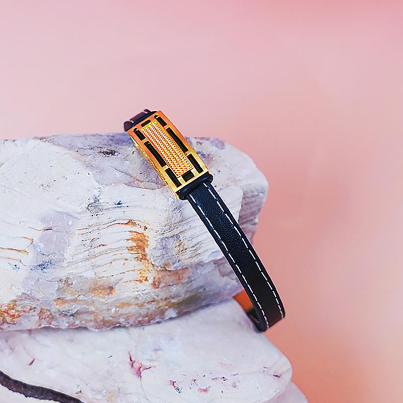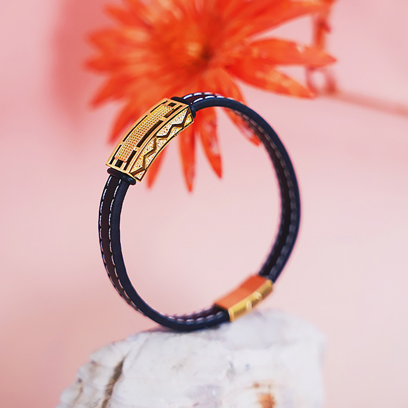 【现货】 足金999 5D工艺 宽面镂空手链男女同款配黑色皮绳【金重约2.75g】 【一物一广州省检标签】