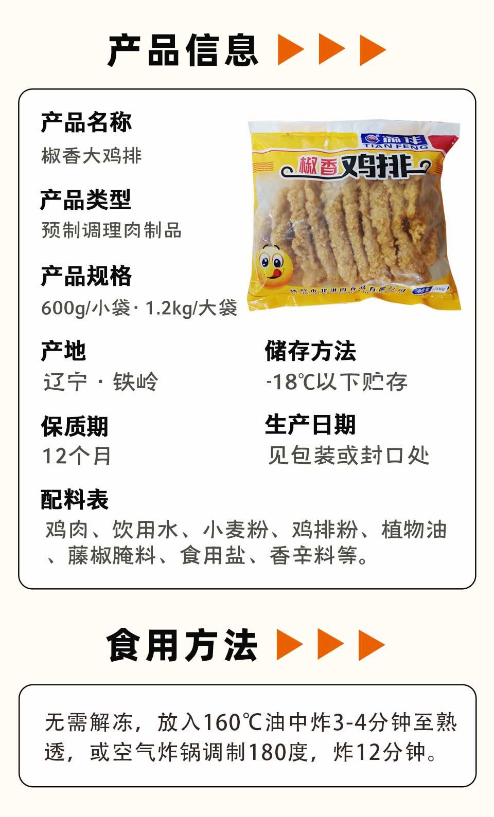 25E【会员专享】添沣椒香大鸡排600g/小袋(5片) 1200g/大袋 10袋/件 5件/套