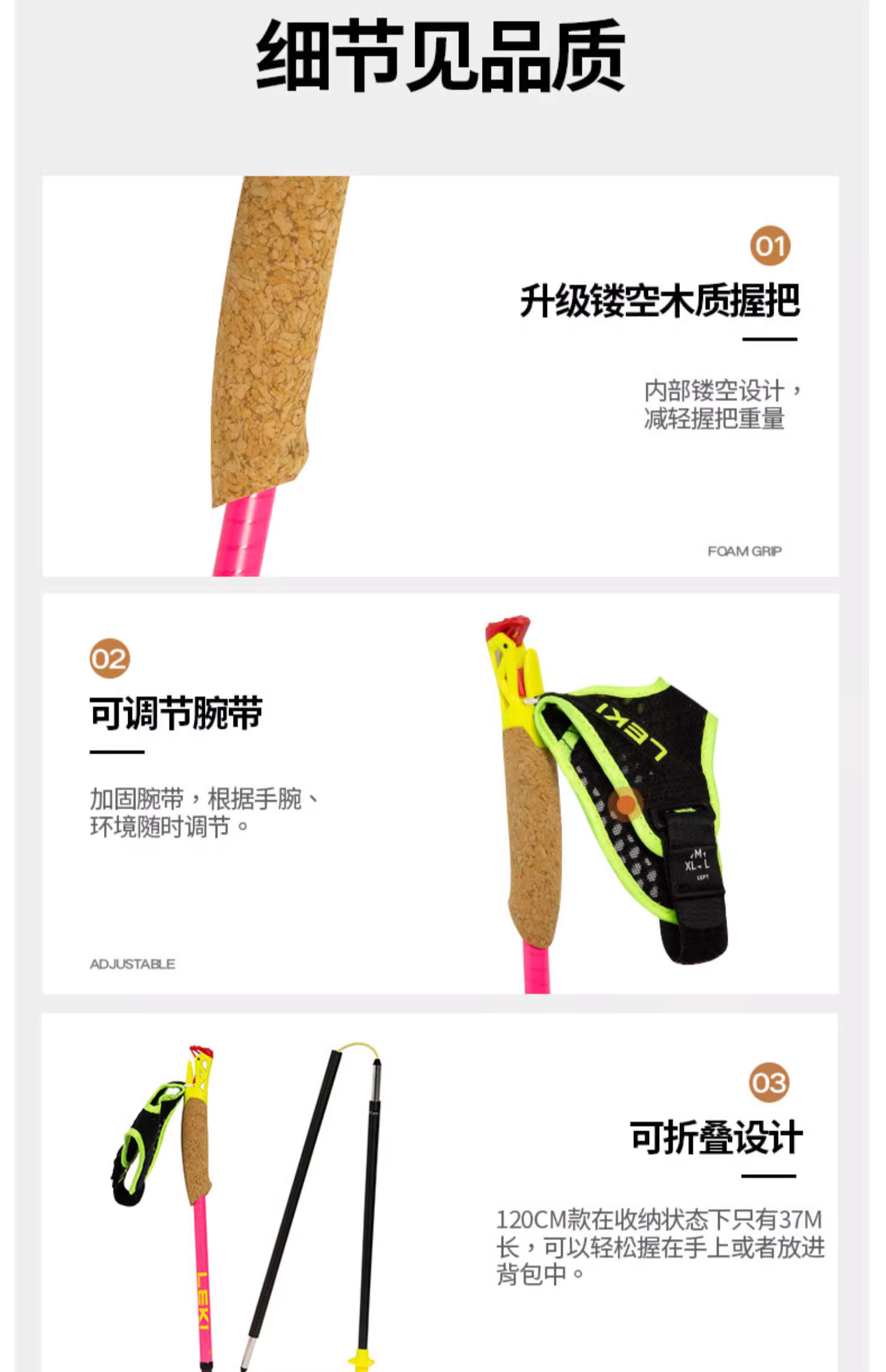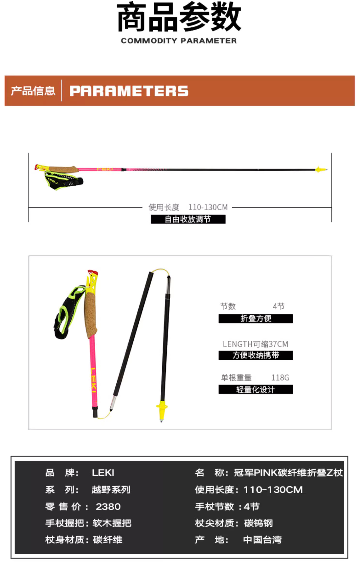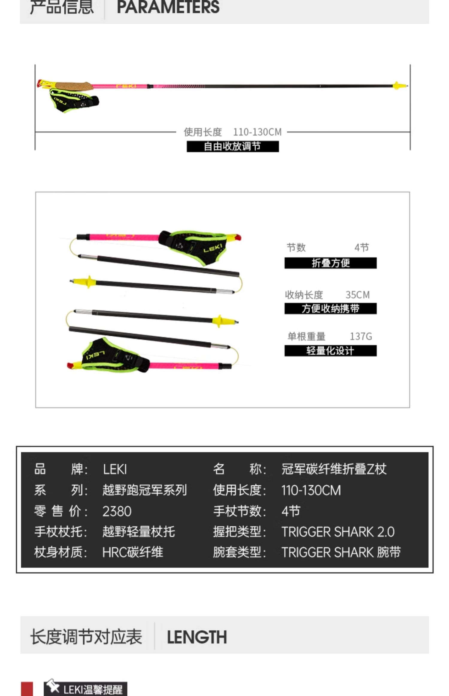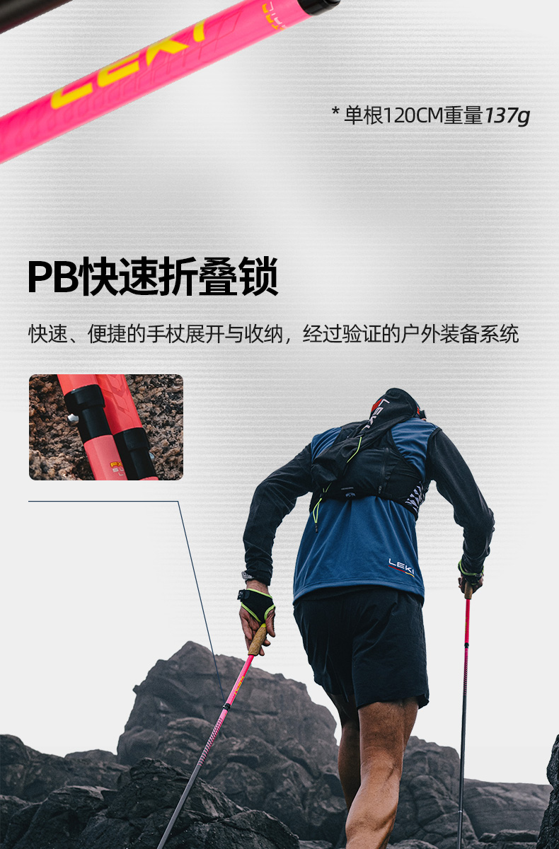 LEKI 冠军PINK 碳纤维折叠Z杖 登山杖手杖