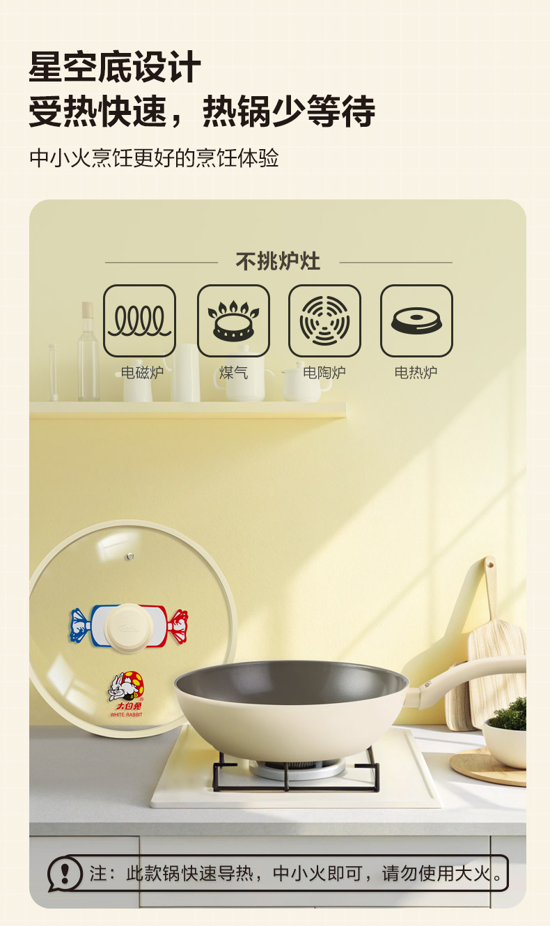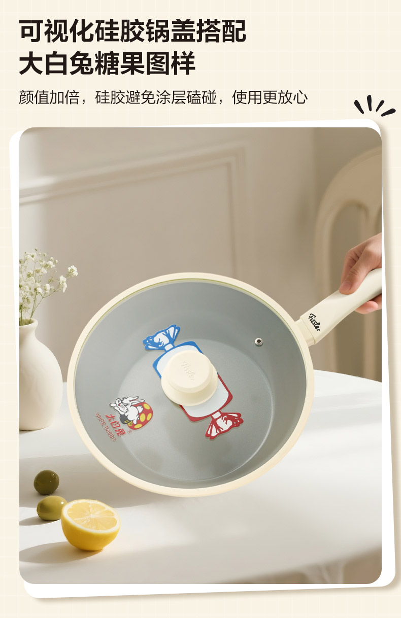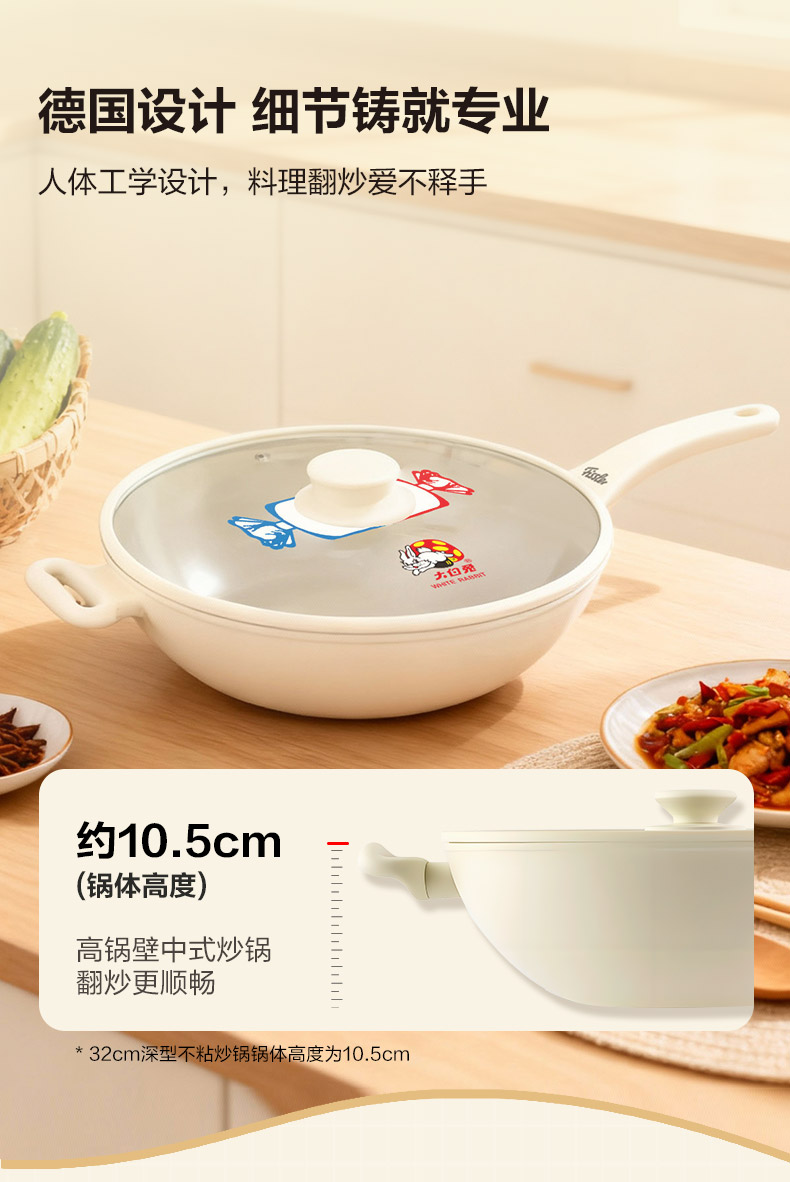 【IP联名】大白兔IP联名系列不粘炒锅(含玻璃盖)多尺寸可选-赠硅胶铲环保购物袋