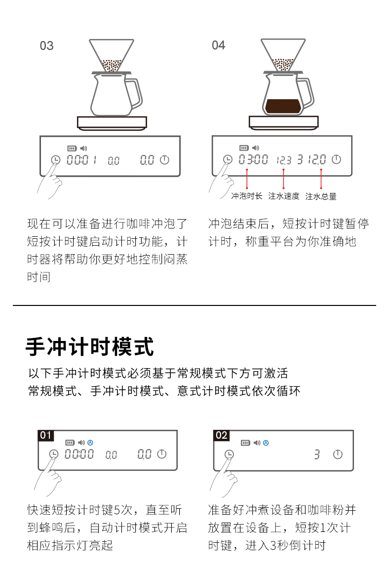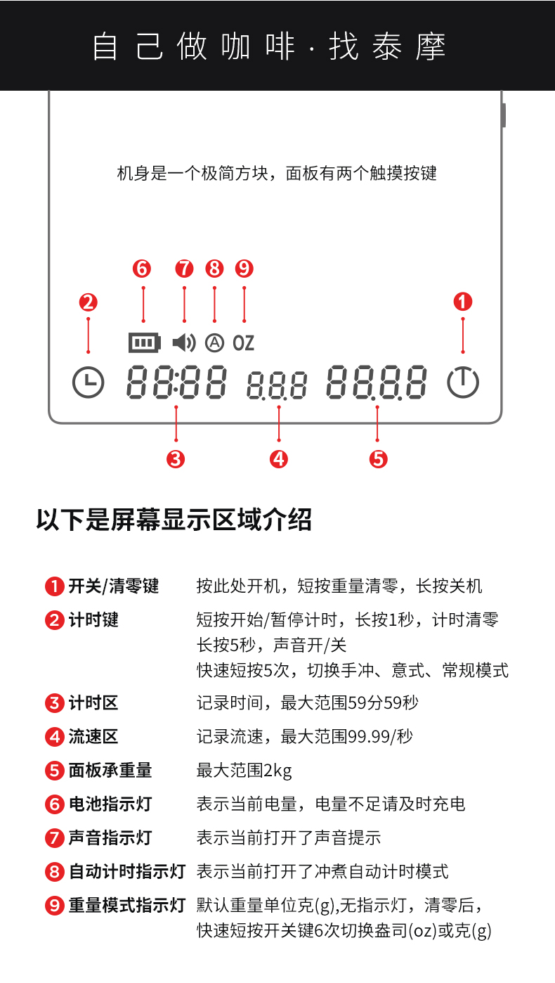 【按箱批发】泰摩 黑镜MINI咖啡电子秤迷你智能称重 意式咖啡手冲电子称带流速 黑色 24台/箱