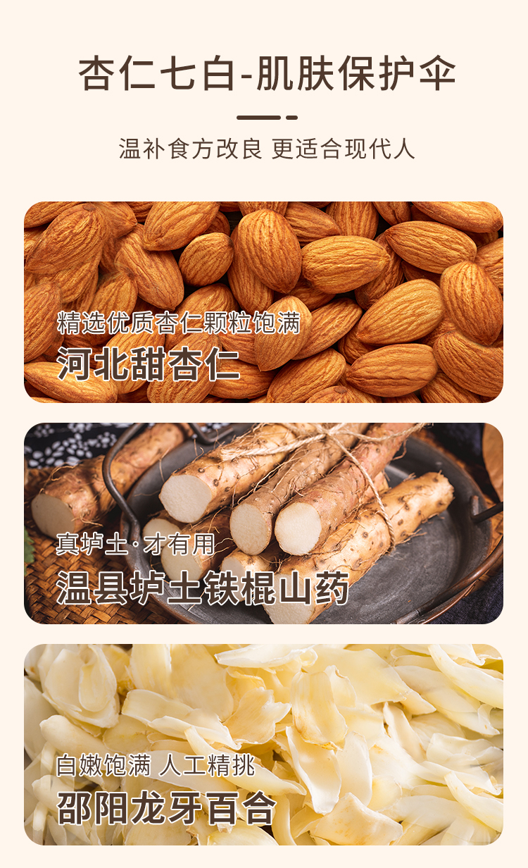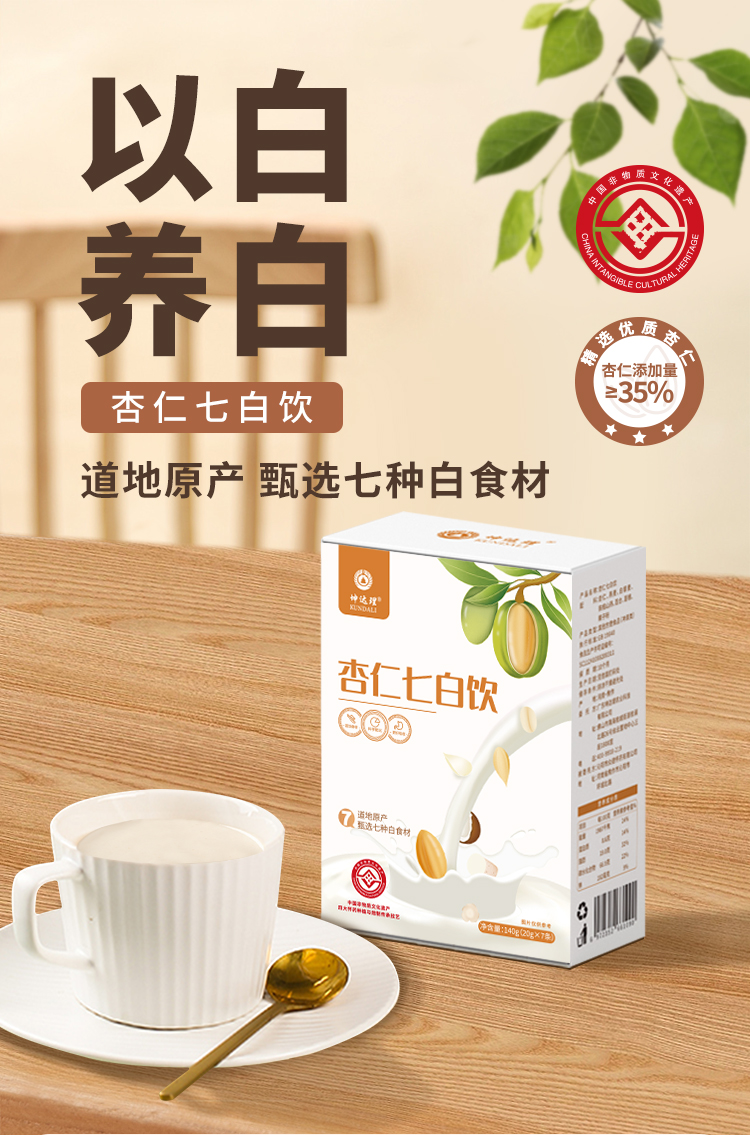 【怀生堂】坤达理杏仁七白饮140g/盒(20g*7袋) 古法七白配方升级:杏仁+薏仁+百合等7种白色食材,协同褪黑提亮
