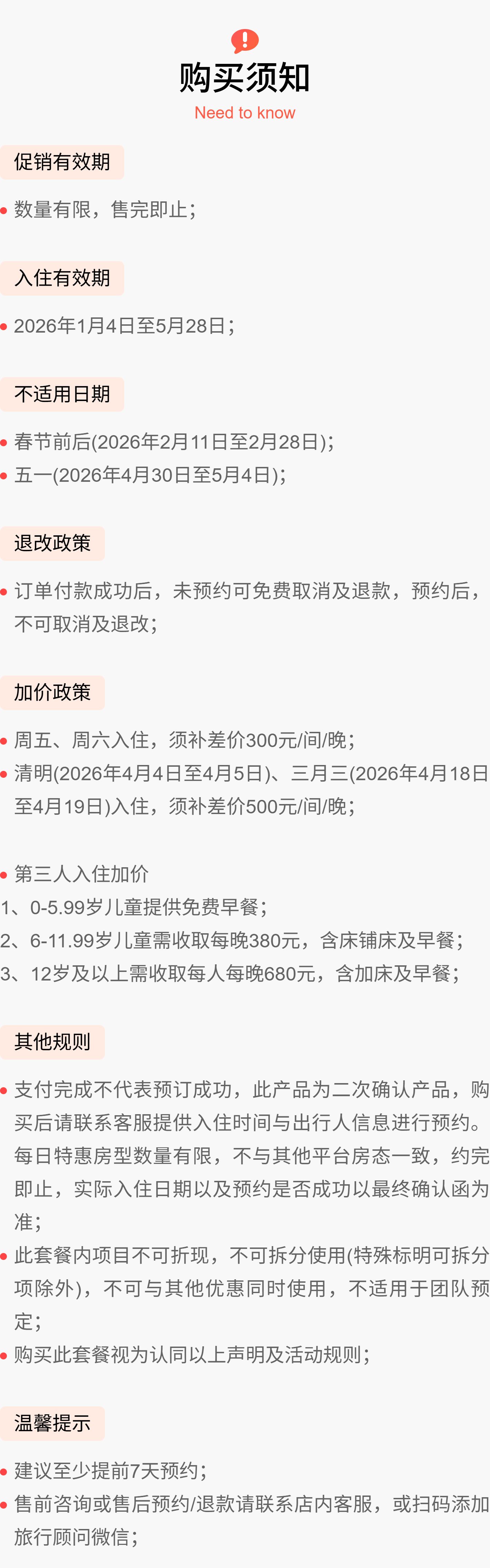 4天3晚【广西崇左秘境丽世度假村及别墅】可用至2026年5月,清明/三月三可用!入住100㎡丽世套房,享每日早、迷你吧畅饮,探小众秘境崇左,寻绝世山水风光~