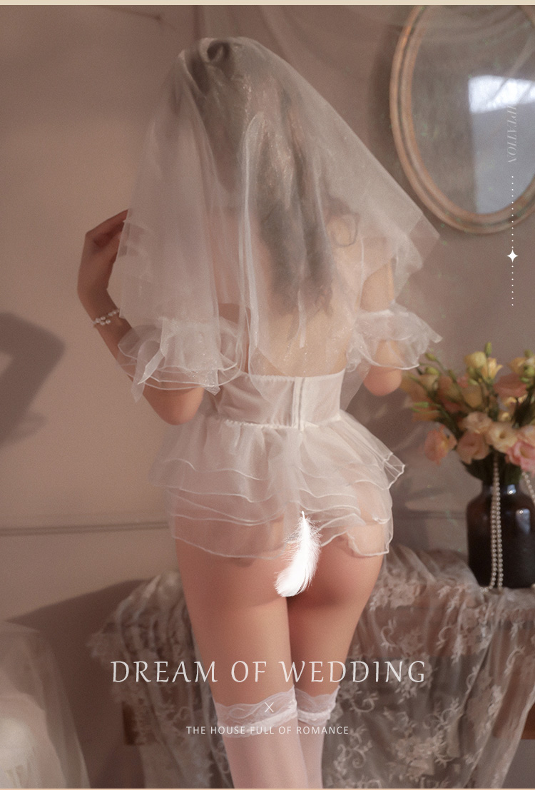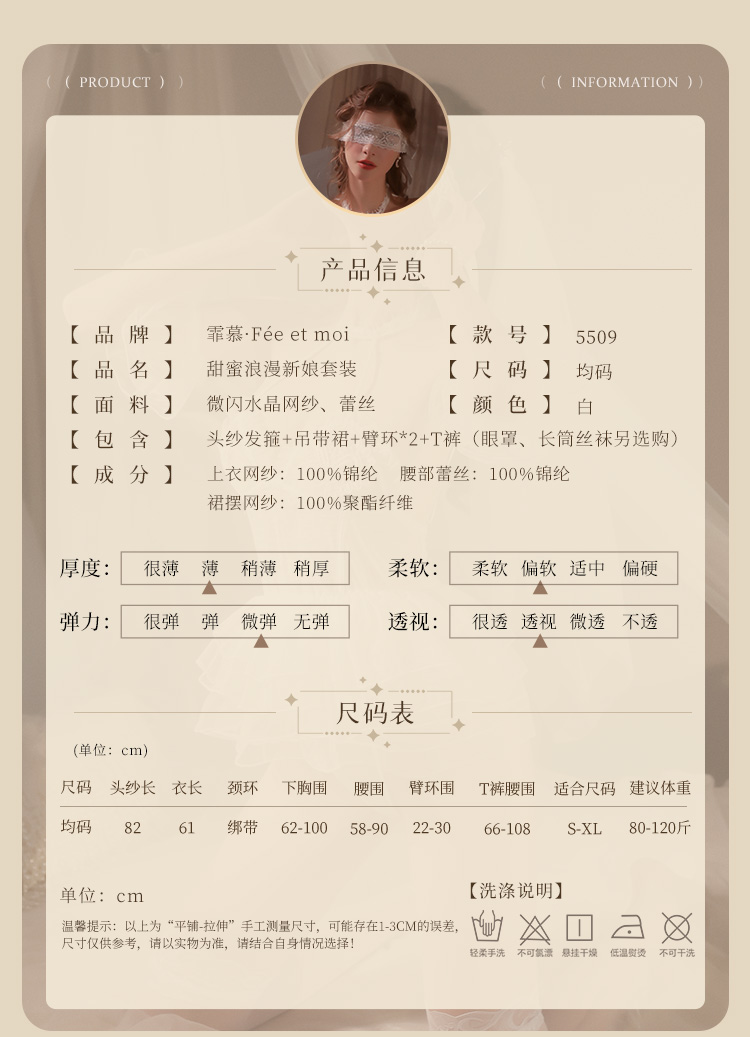 【情趣内衣】甜蜜浪漫新娘套装5509 唯美新娘5层水晶网纱蓬蓬裙亮钻皇冠头纱