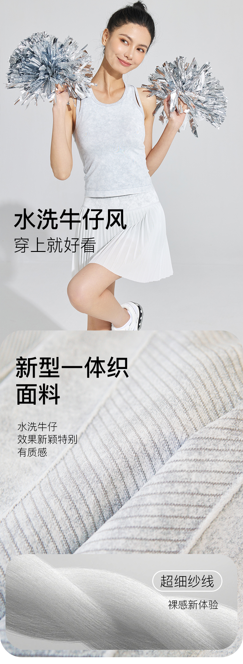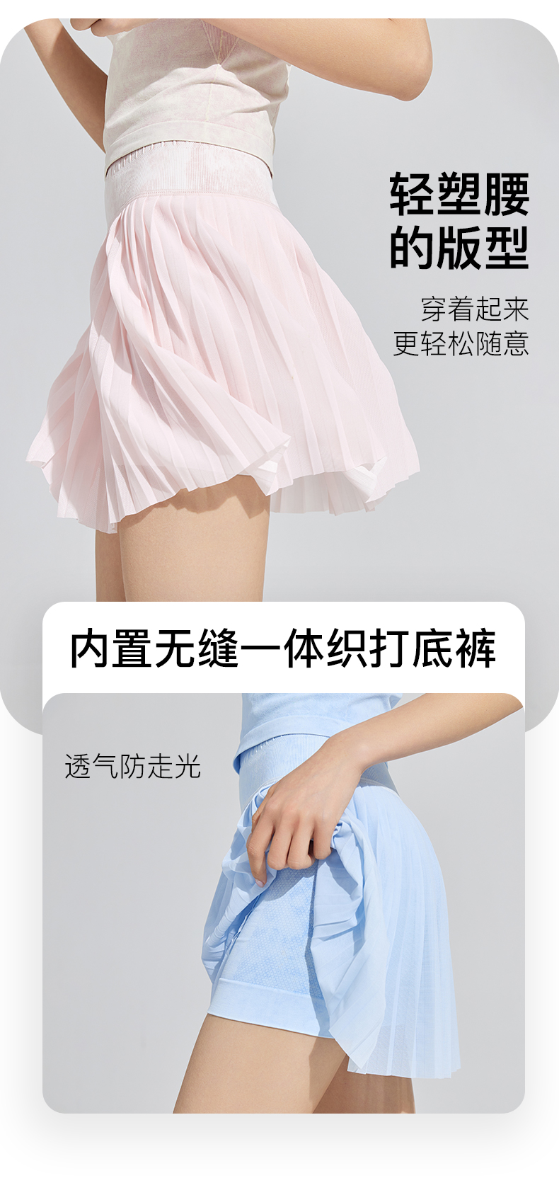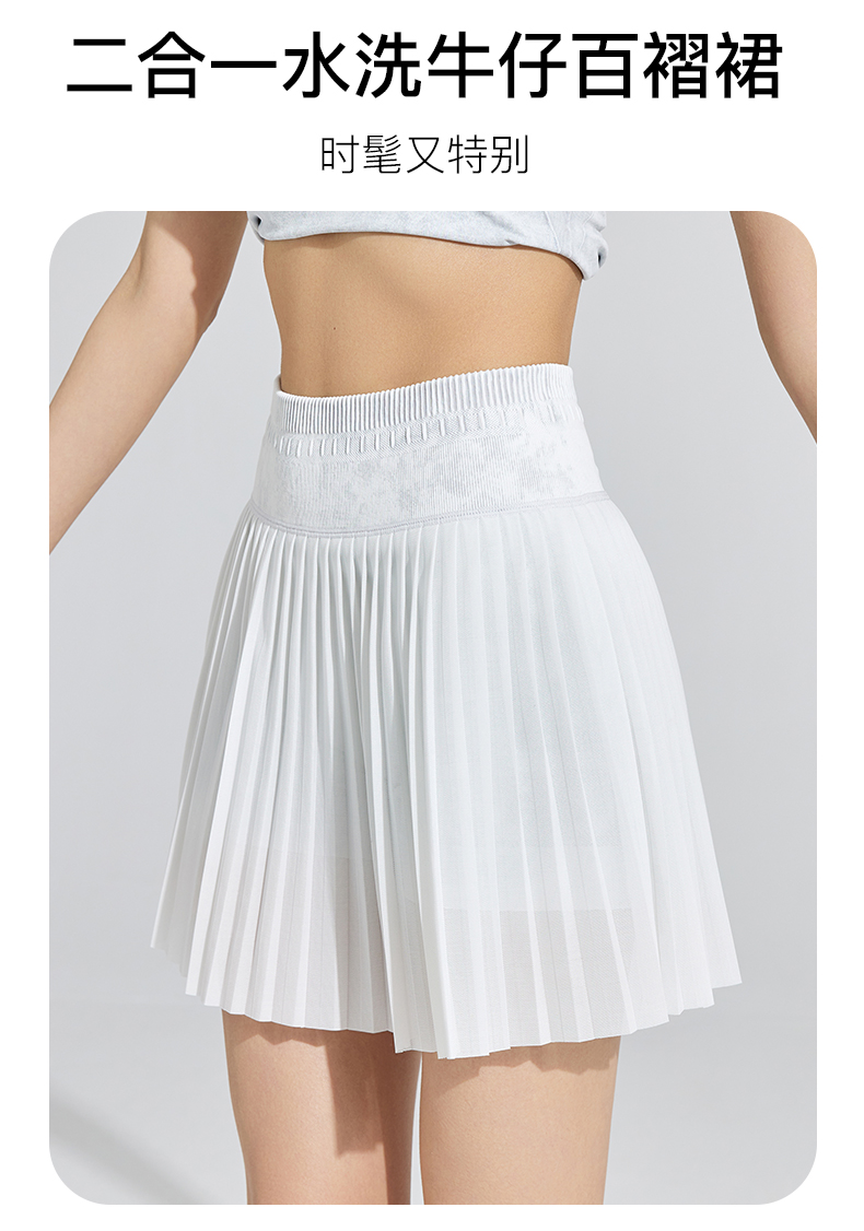 Leorrey/乐拉自带打底裤水洗牛仔时尚透气夏季跑步户外运动百褶裙