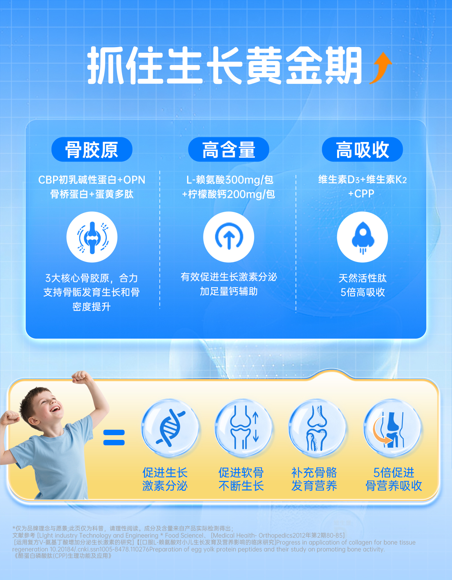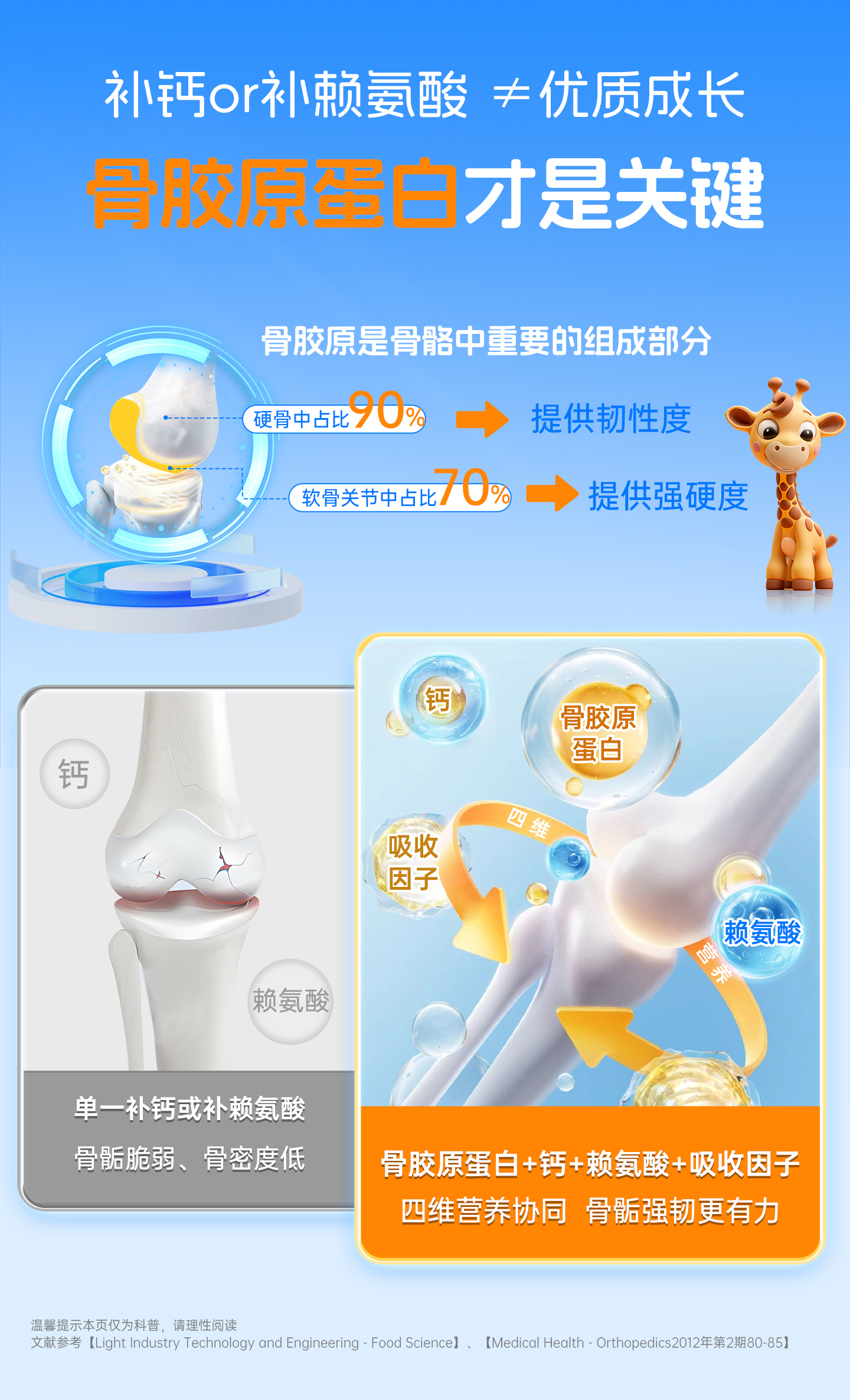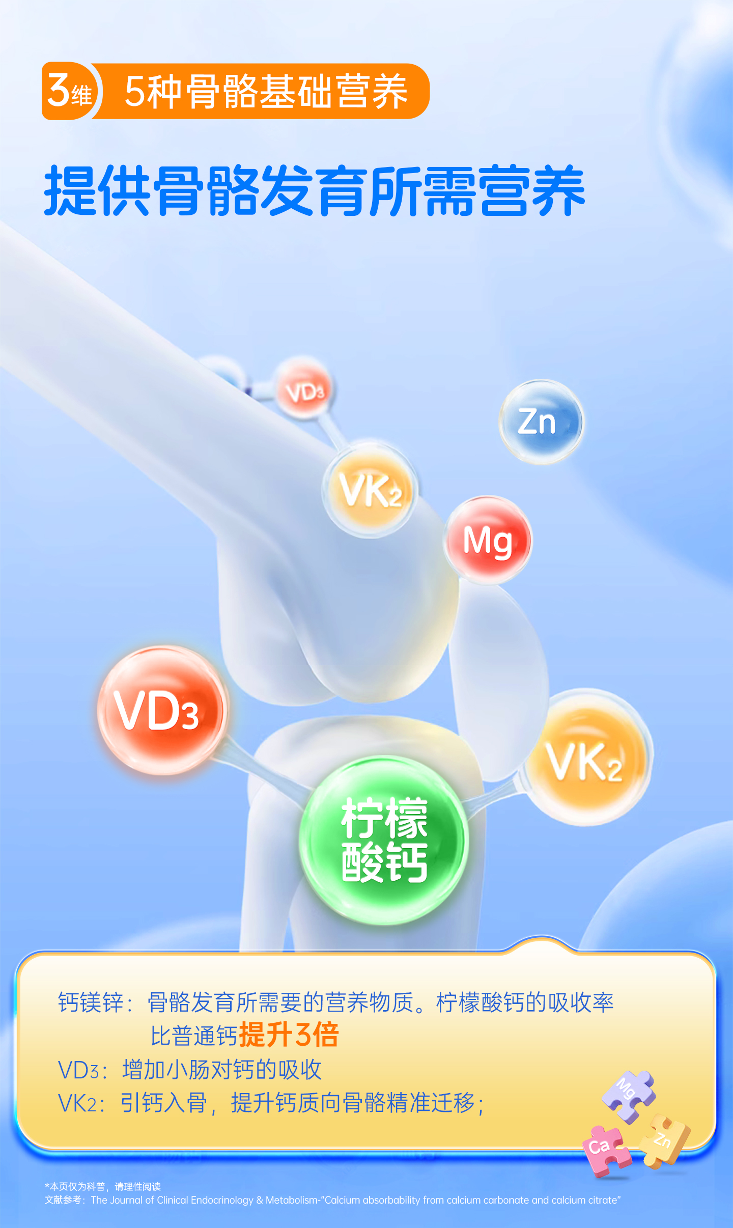 【梦奇口袋003专属】双子星骨胶原蛋白青少年儿童助力生长素补钙镁锌VD 30条/盒
