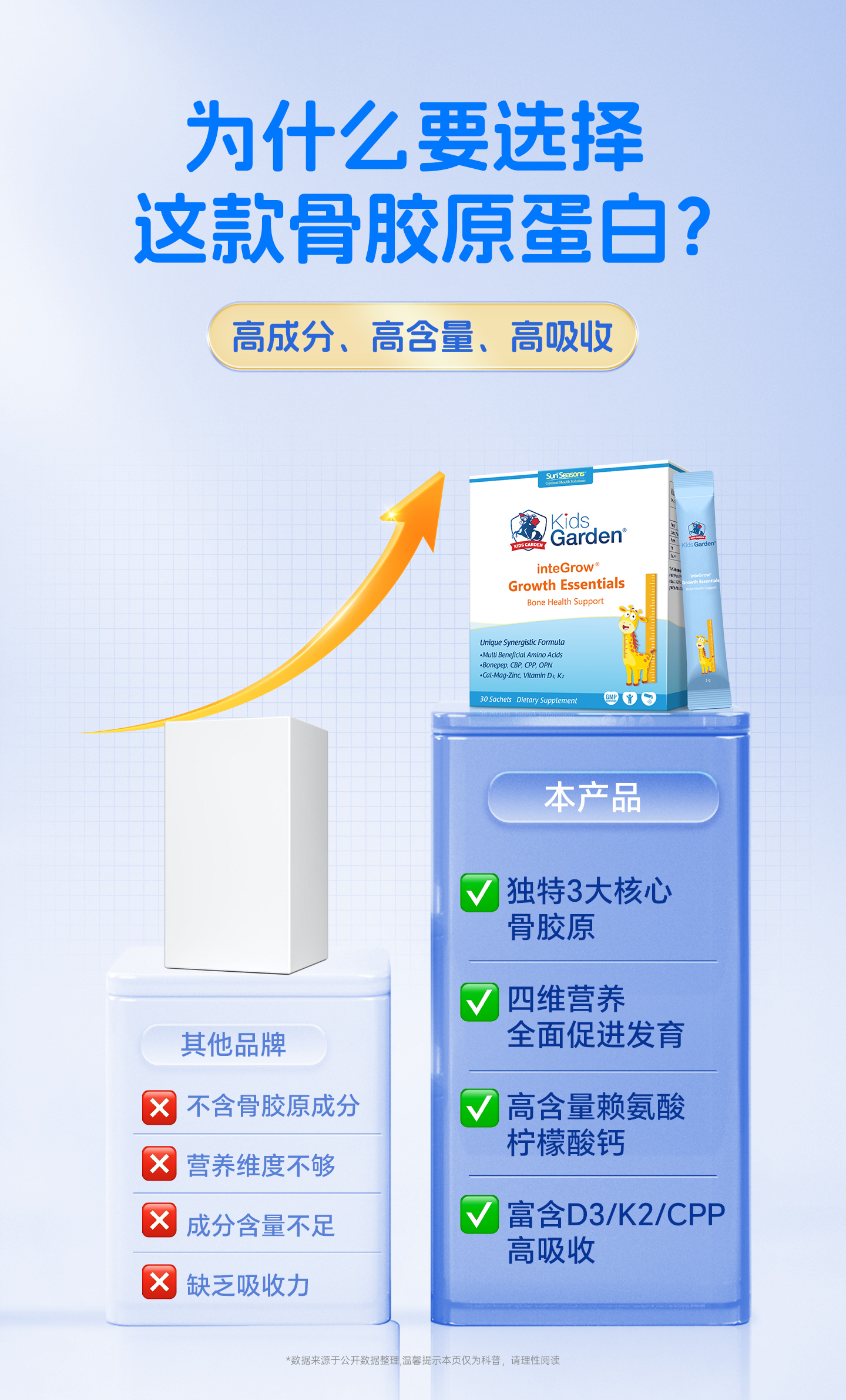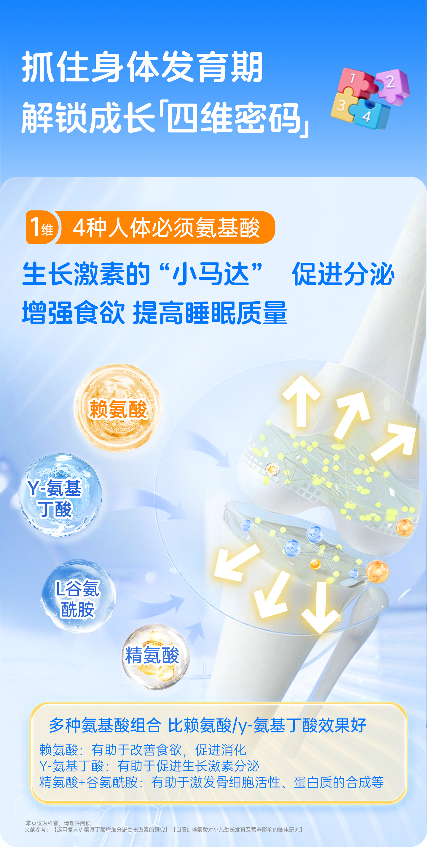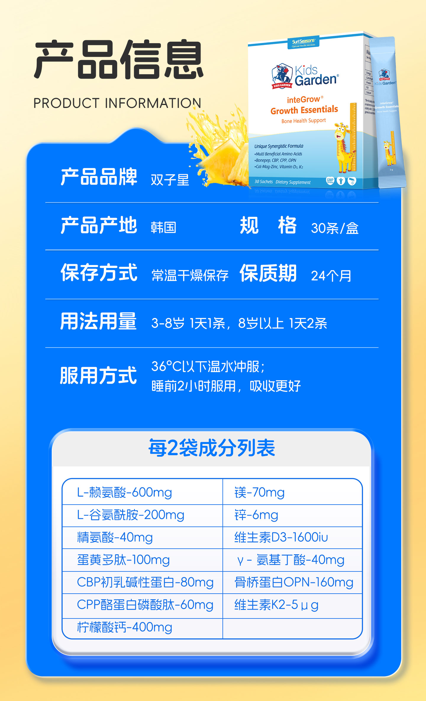 【梦奇口袋003专属】双子星骨胶原蛋白青少年儿童助力生长素补钙镁锌VD 30条/盒