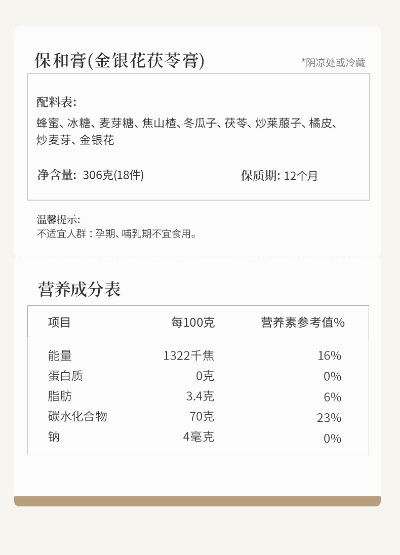 【保和膏】中正平和 草本清甜 温和配方 身体清畅 306g/盒 lc