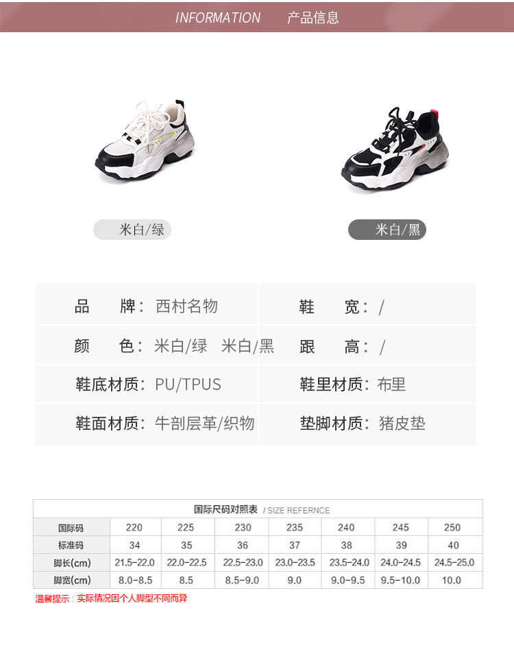 西村名物2021秋冬ins潮撞色老爹鞋透气运动休闲鞋厚底显高女鞋T22AM16671