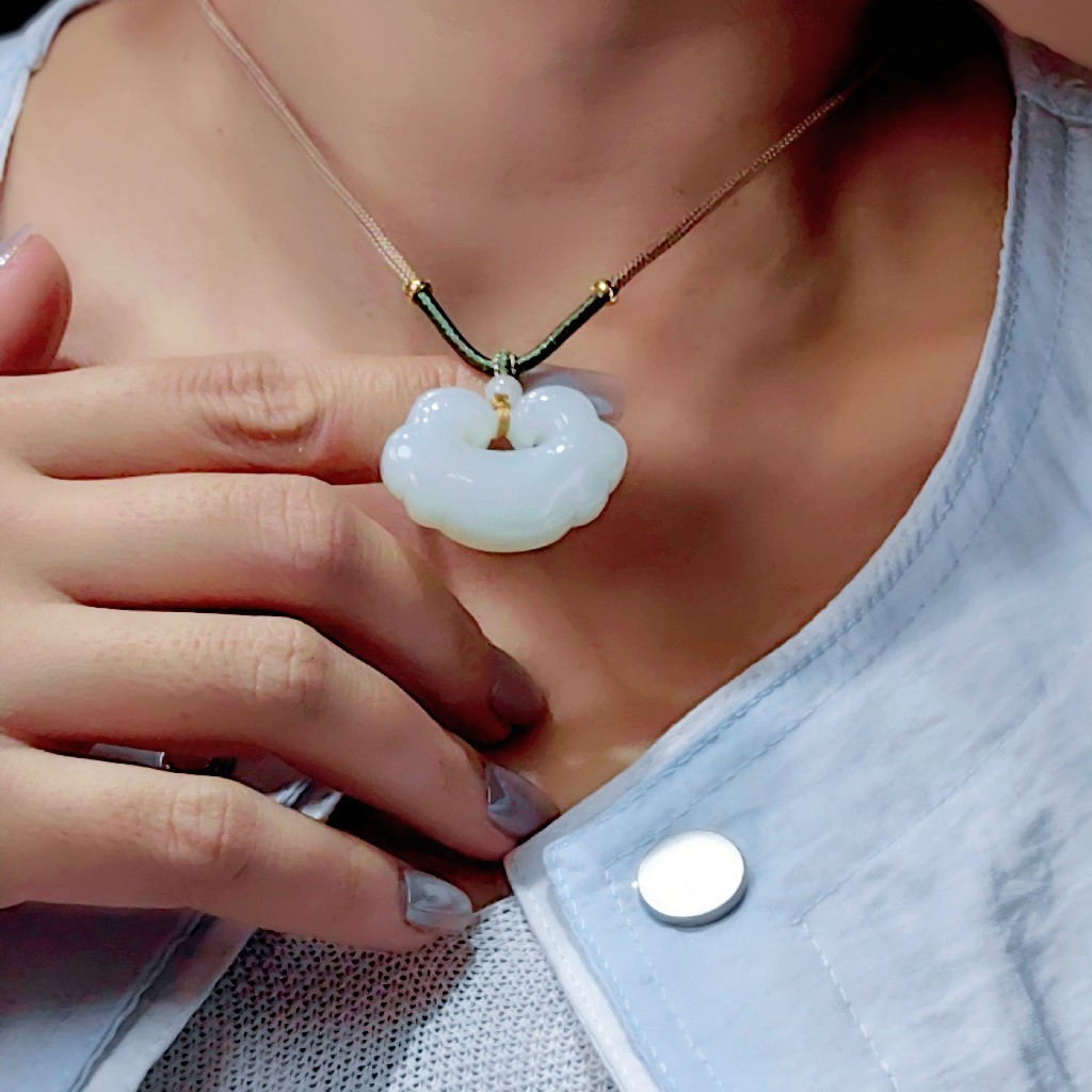 这枚和田玉锁型项坠,是时光雕琢的诗意篇章。精选的和田玉,质地温润细腻,如春日晨露般清新,似冬日初雪般纯净,其色泽柔和,散发着内敛而迷人的光泽。