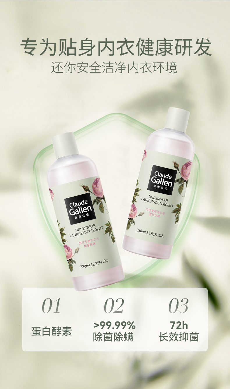 【新香上市】歌歌兰妮甜茶玫瑰内衣裤专用洗衣液除菌抑菌去血渍手洗机洗通用(拍组合划算)