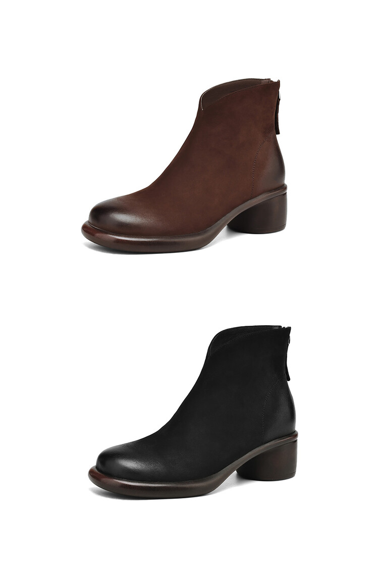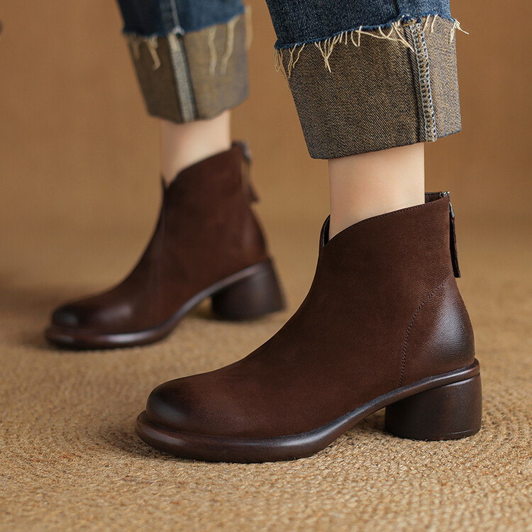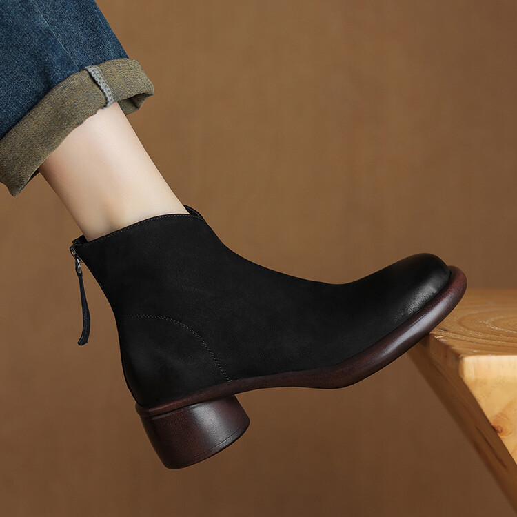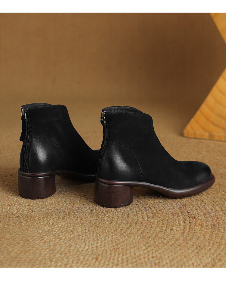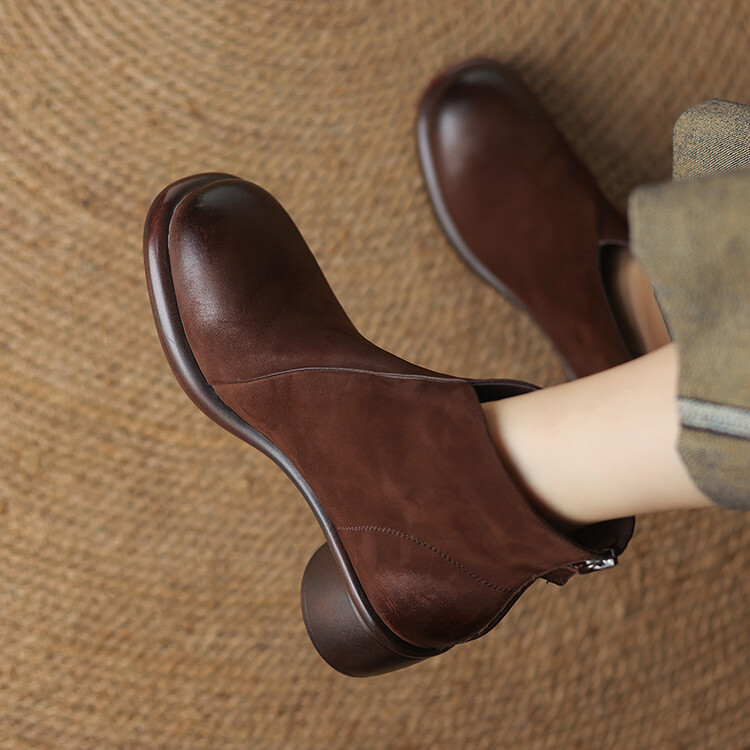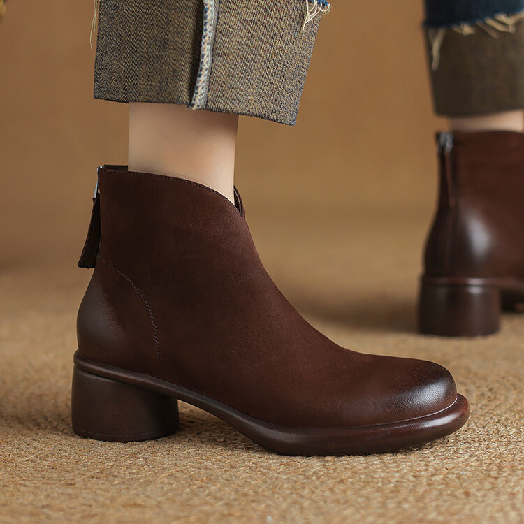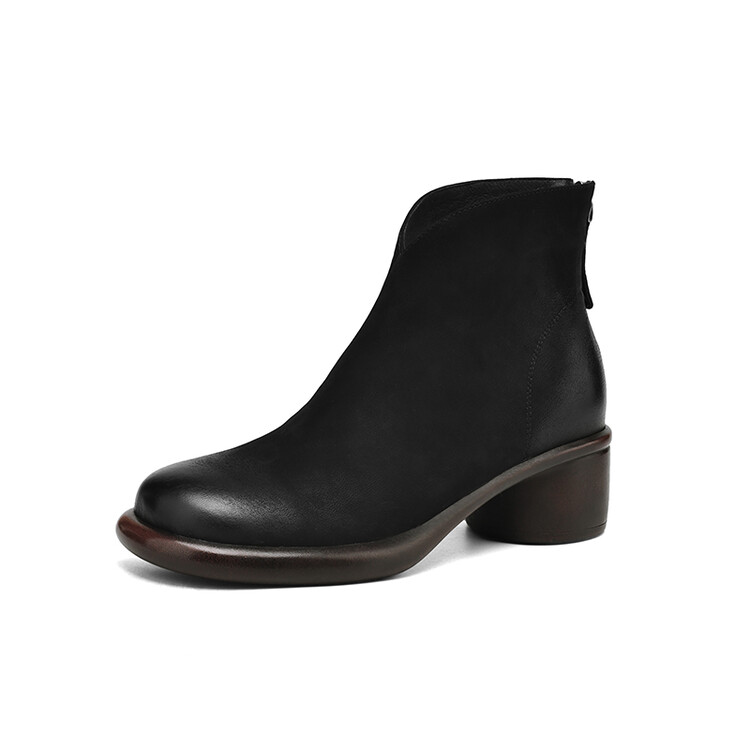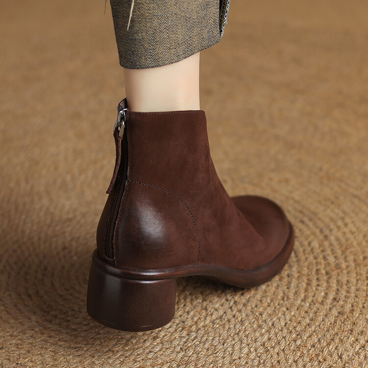 【预售5天】羊皮时装靴秋冬季新款圆头粗跟低跟女靴防水台拉链短靴女DPJ&7072