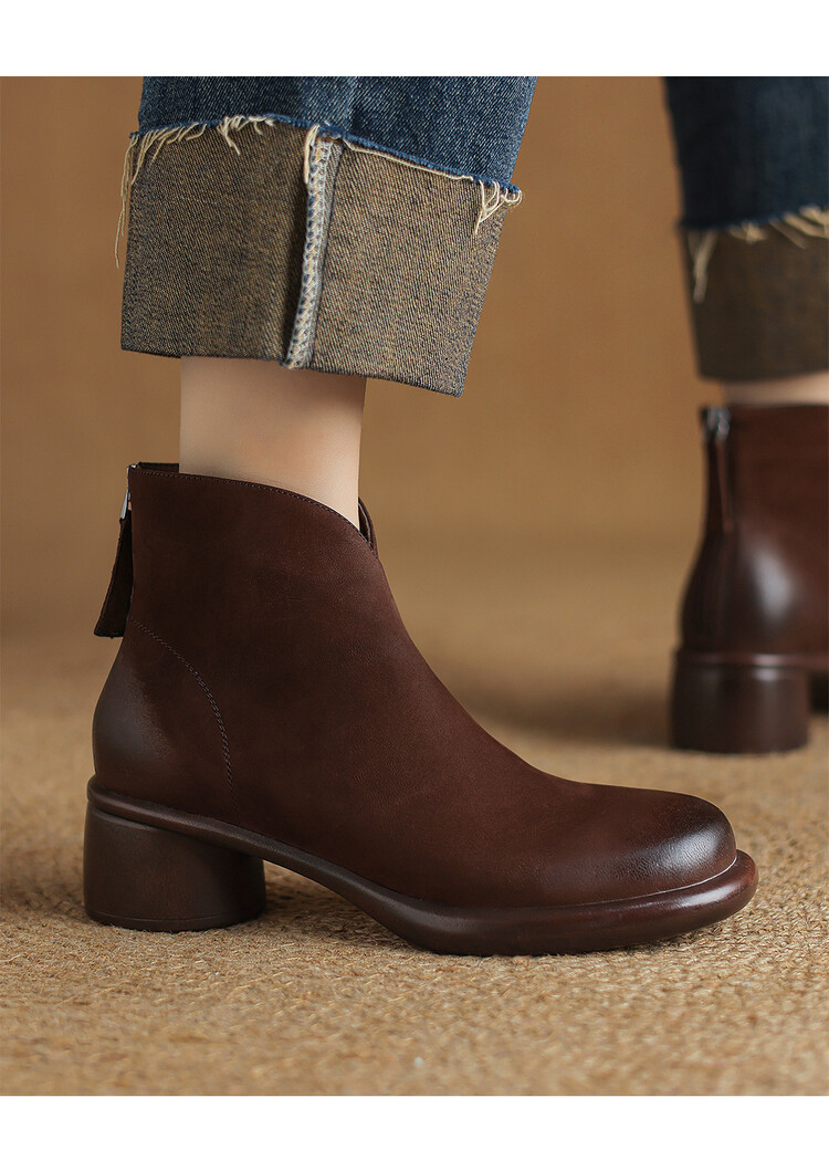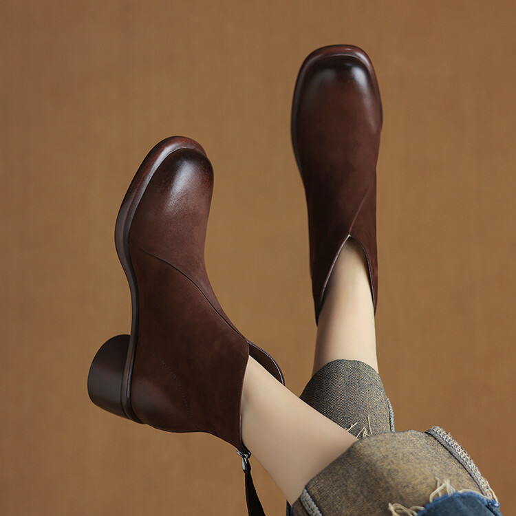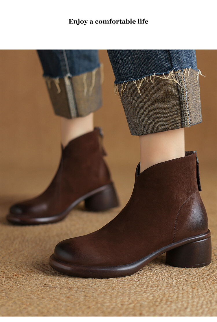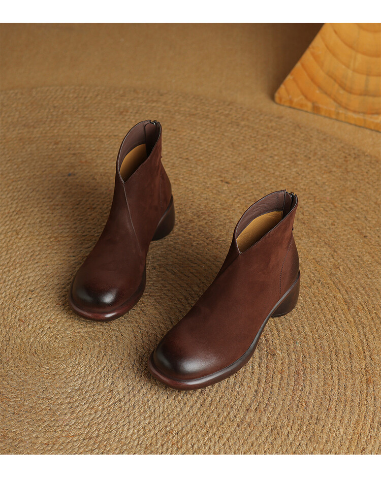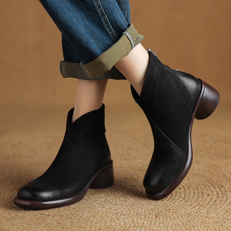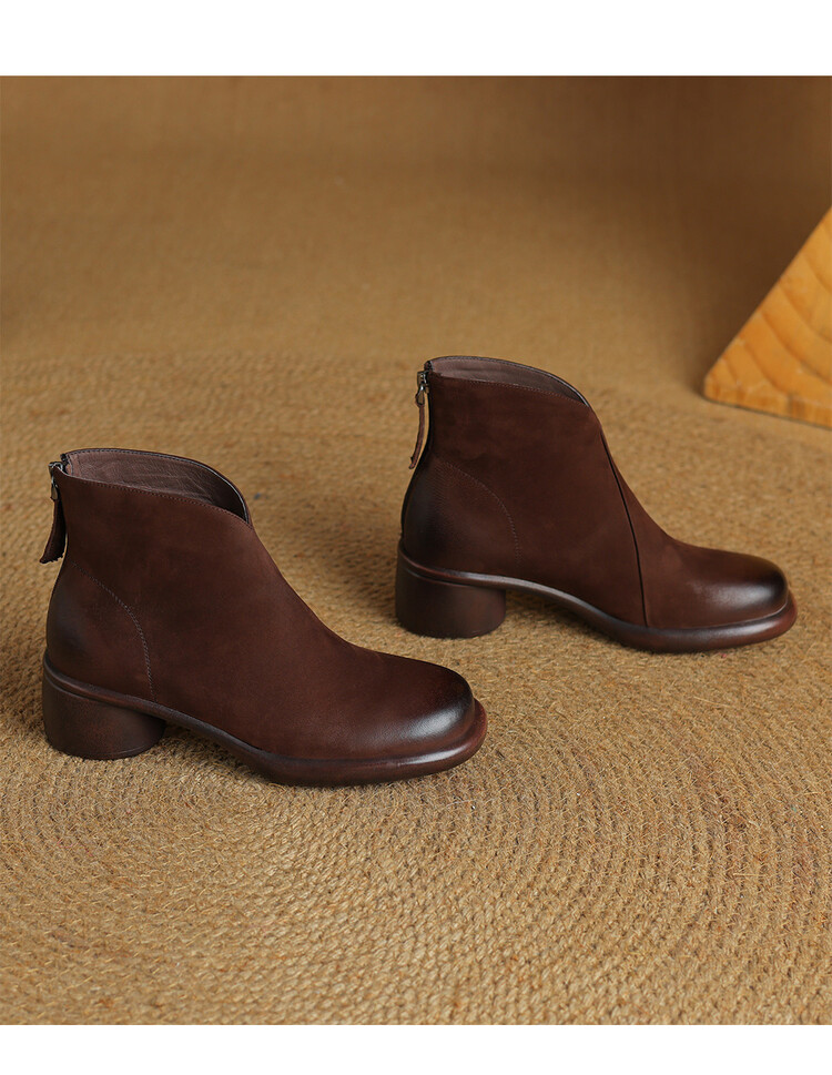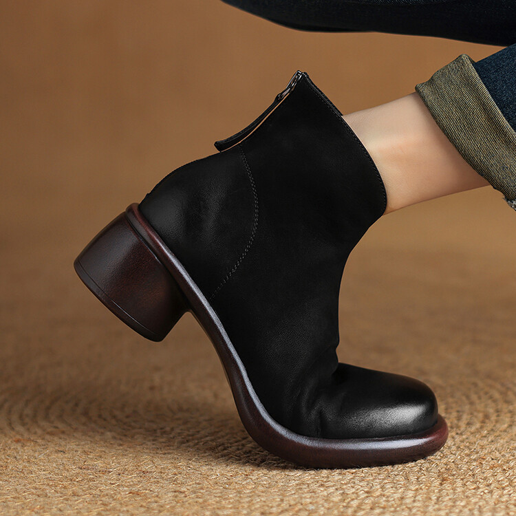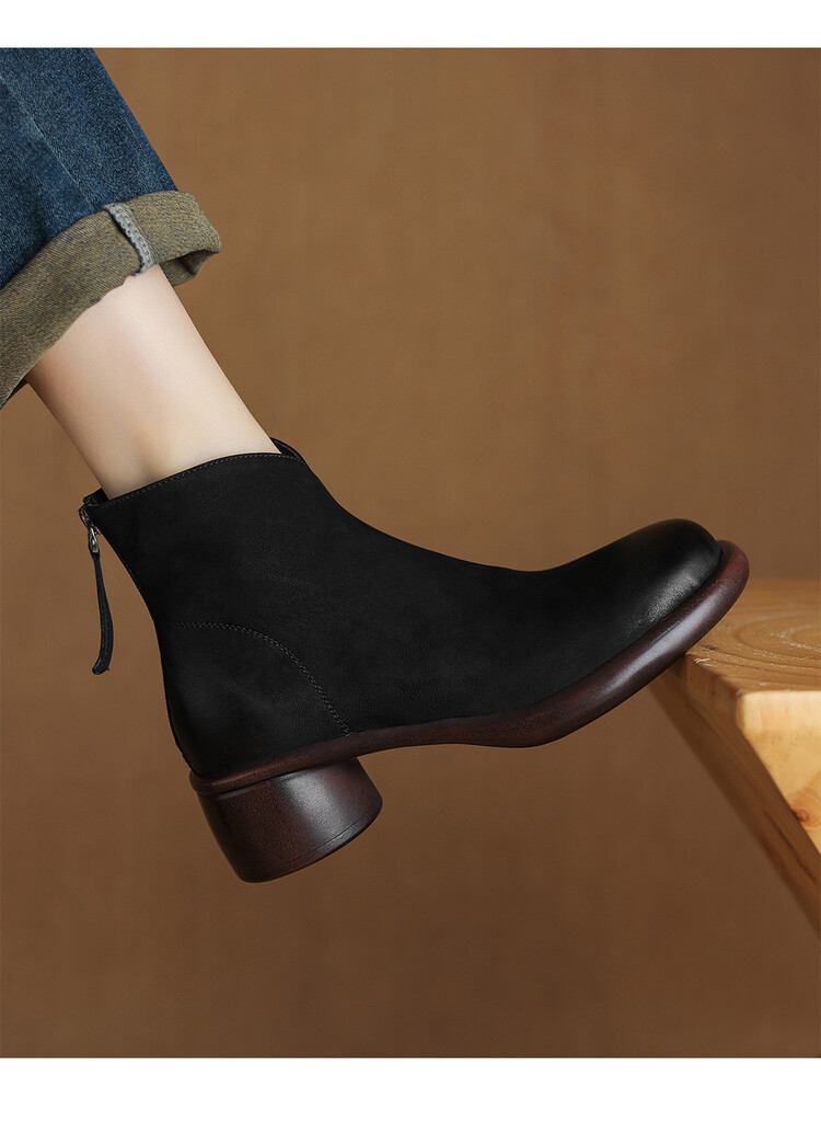 【预售5天】羊皮时装靴秋冬季新款圆头粗跟低跟女靴防水台拉链短靴女DPJ&7072