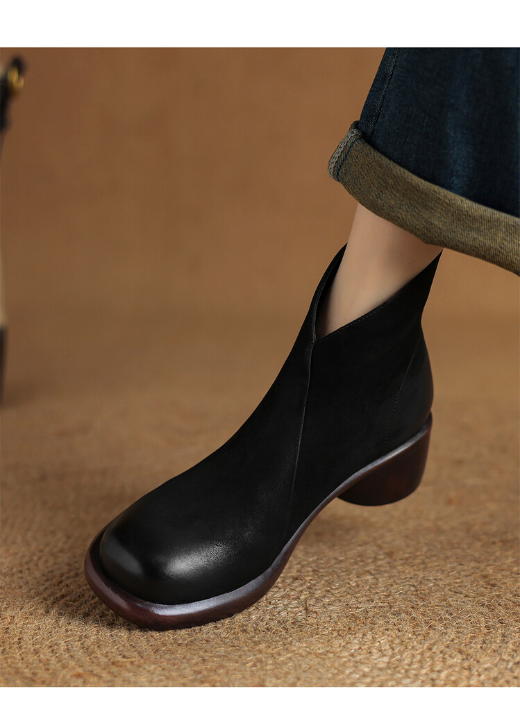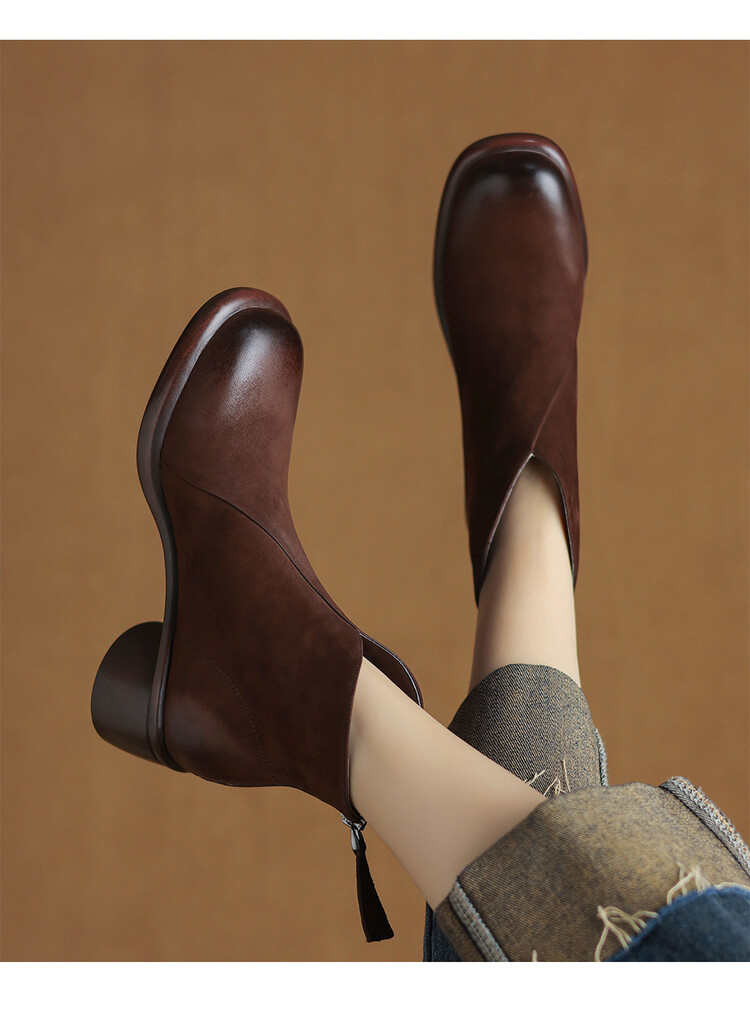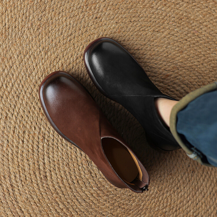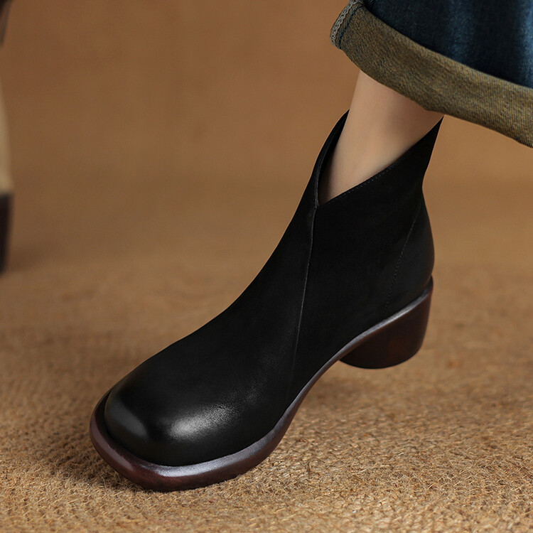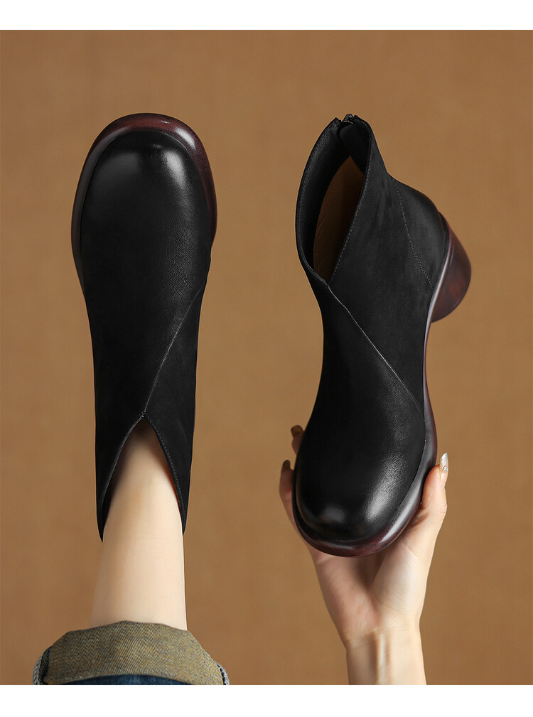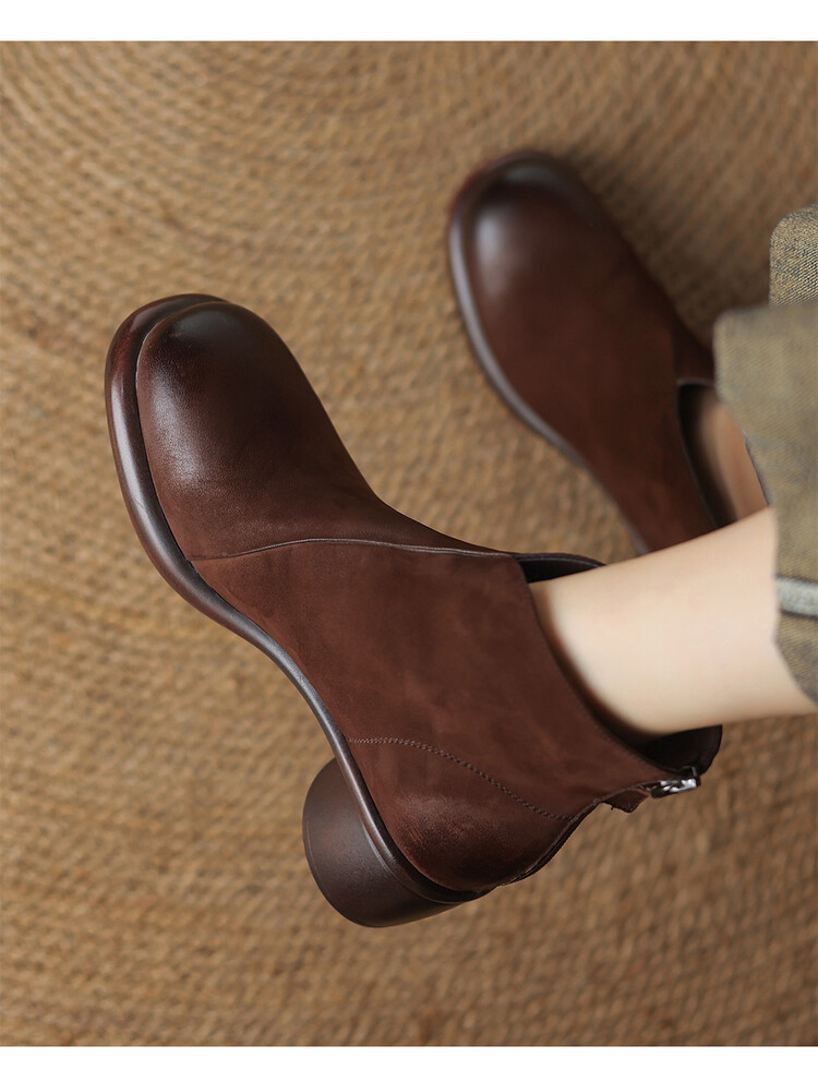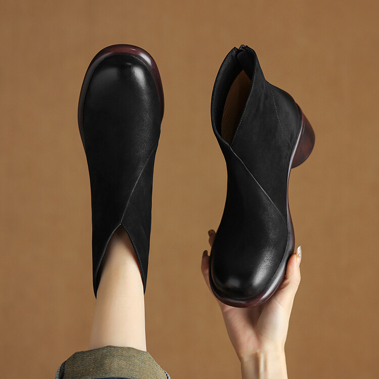 【预售5天】羊皮时装靴秋冬季新款圆头粗跟低跟女靴防水台拉链短靴女DPJ&7072