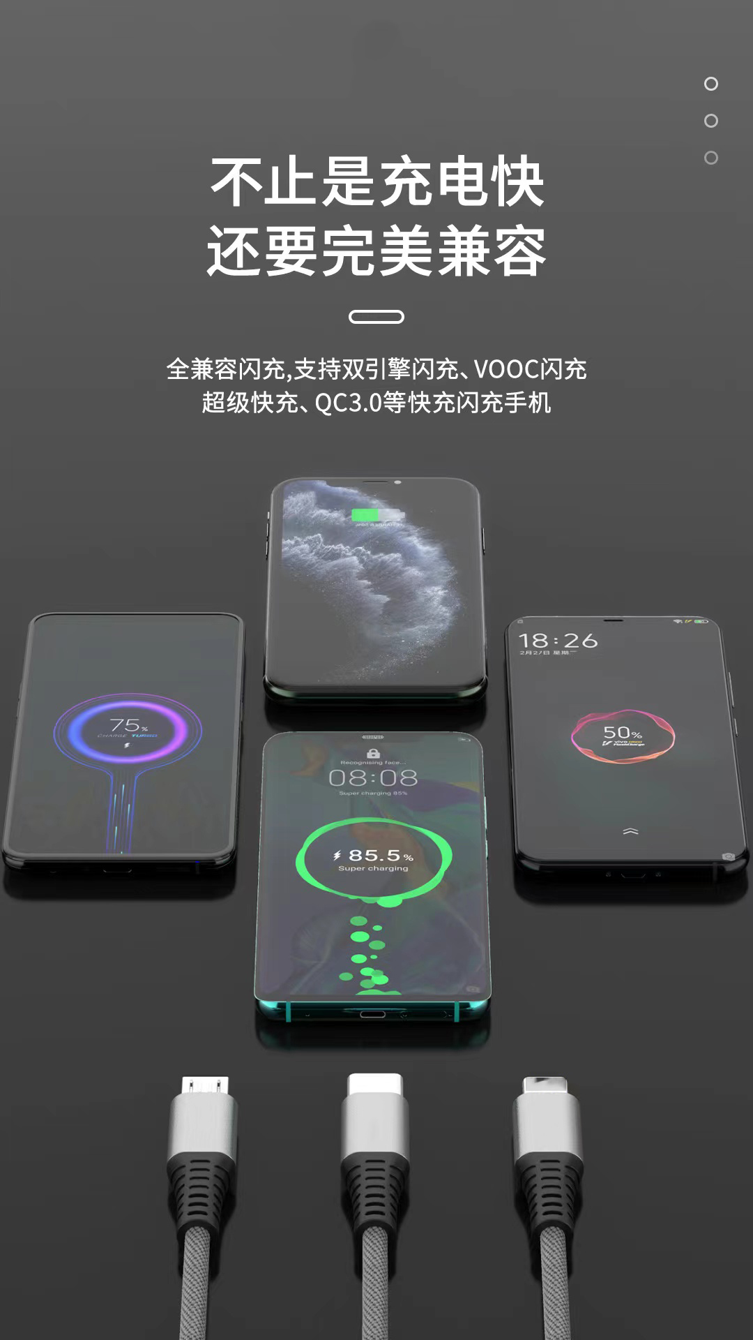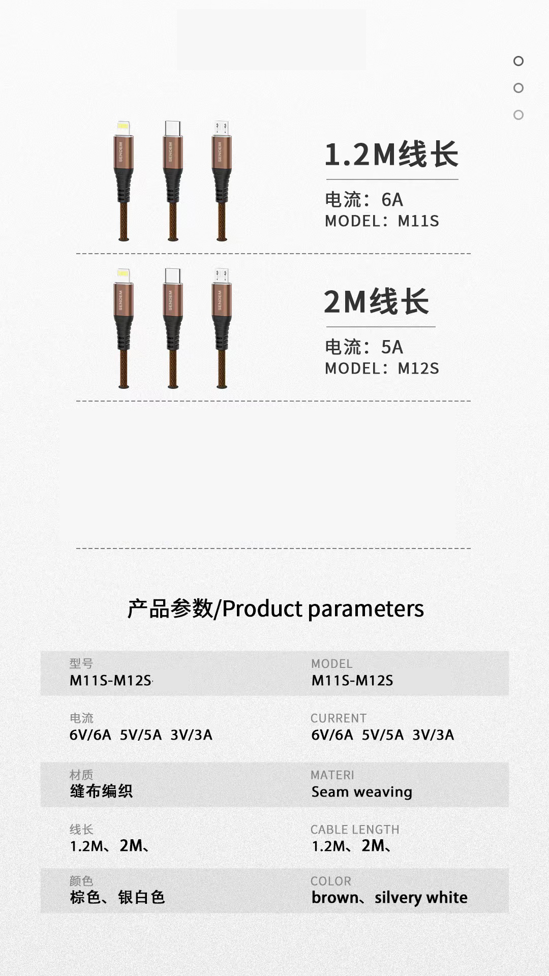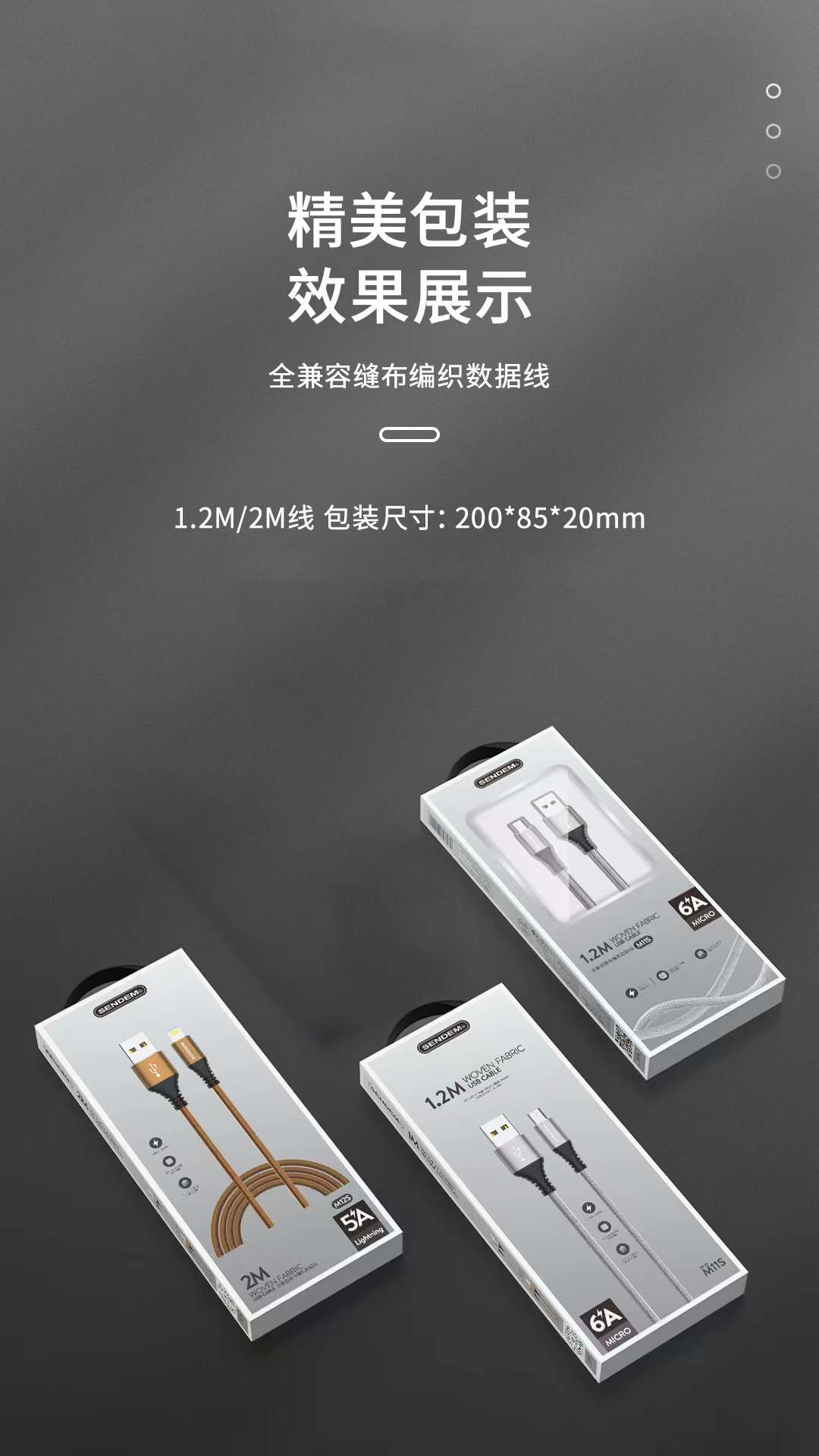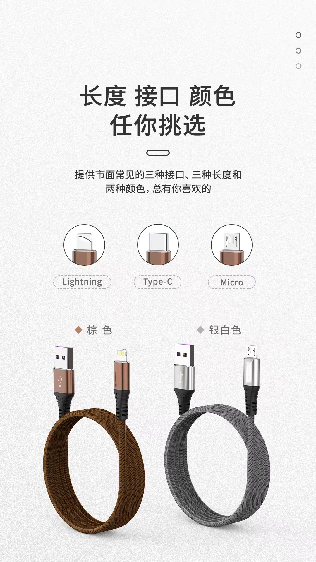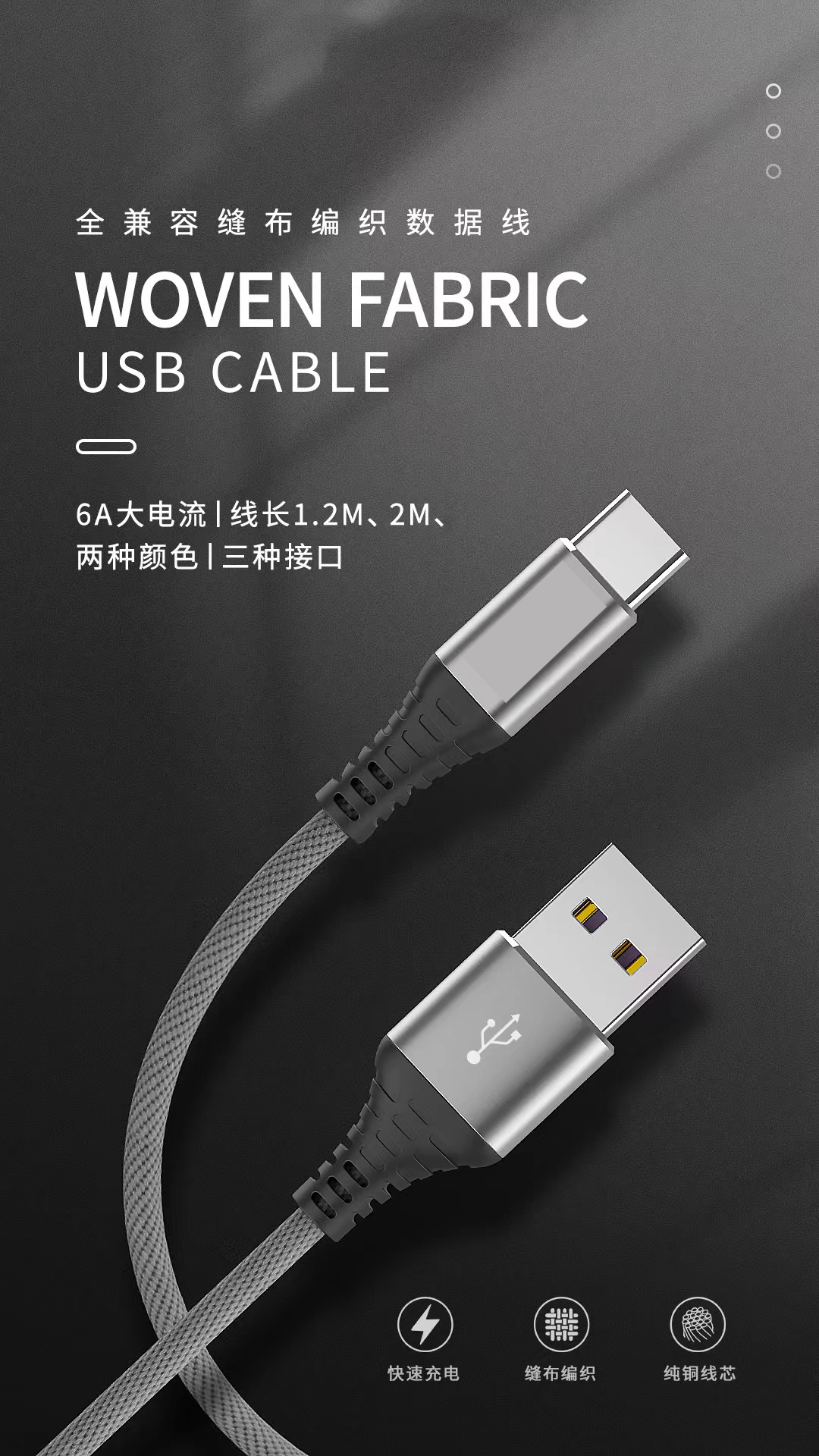 1金属合金缝布编织数据线1.2米6A快充适用于苹果乐视安卓type-c/v