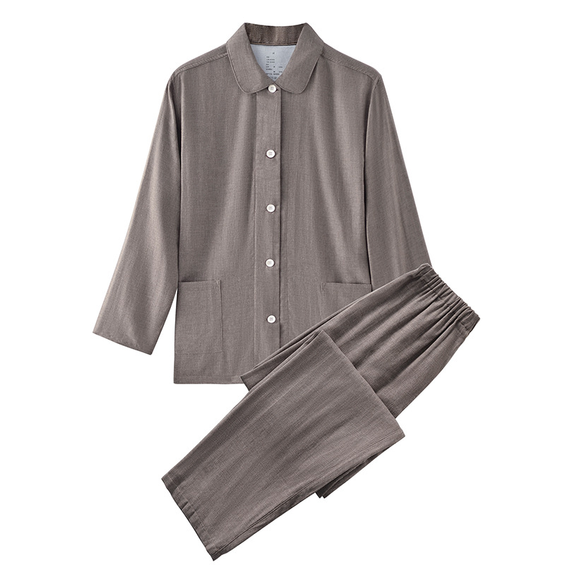 双层纱面料,排汗排湿松软透气,能贴合身体肌肤,感受如同云朵般的绵软舒适。贴心的男女分领款设计,贴合颈部,自在舒适,随身含有小型收纳口袋,让您的居家生活无比方便。