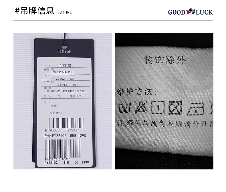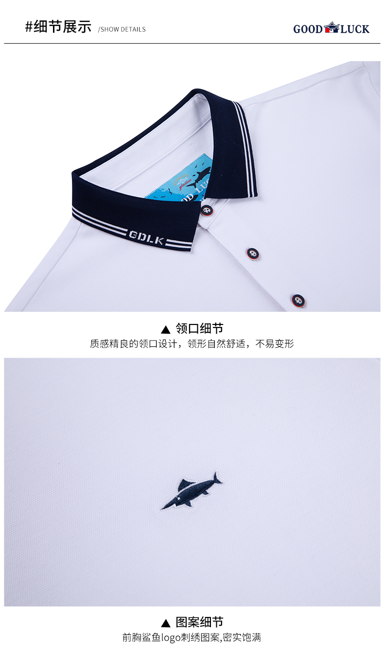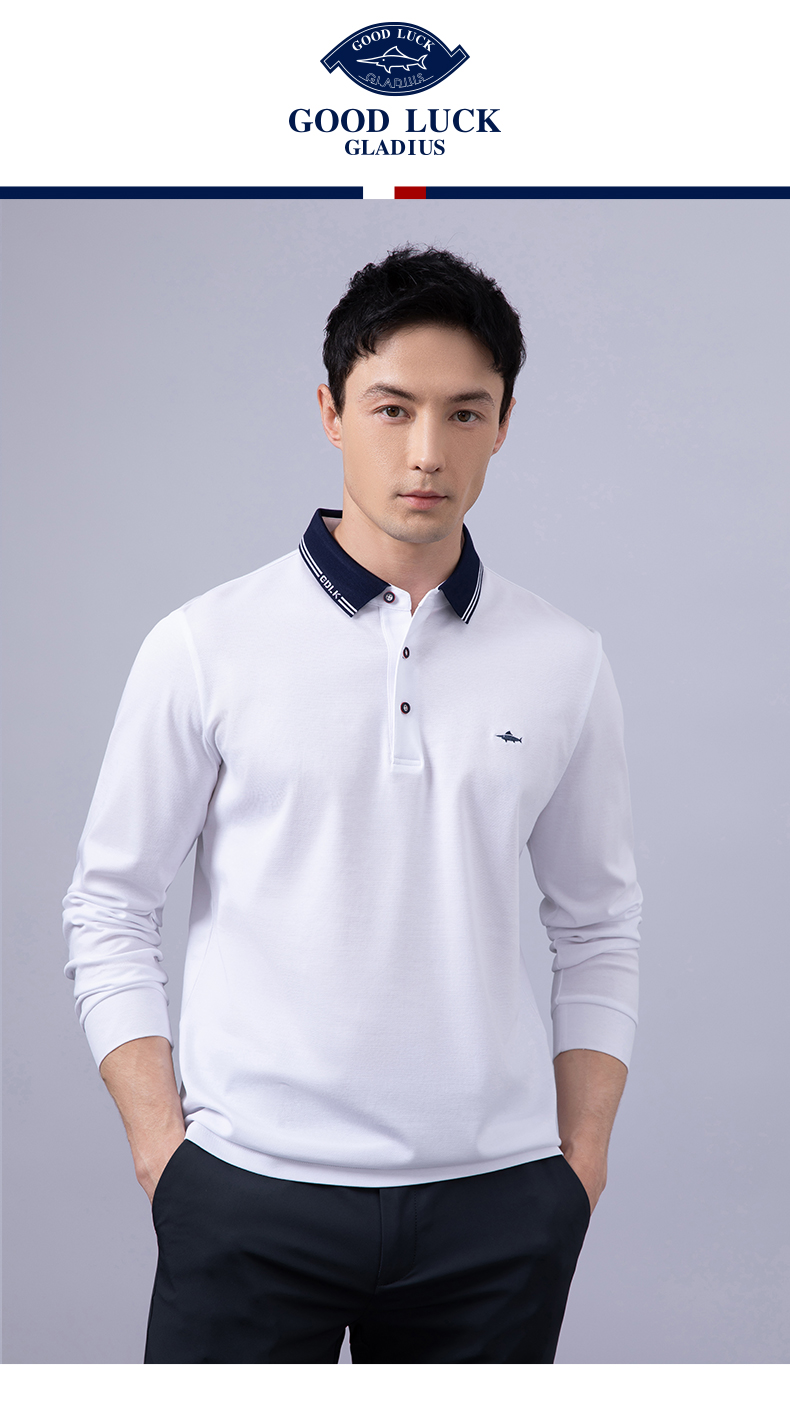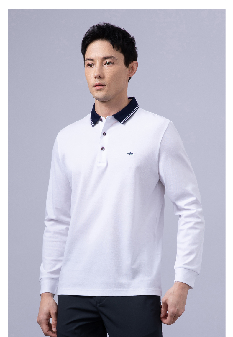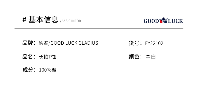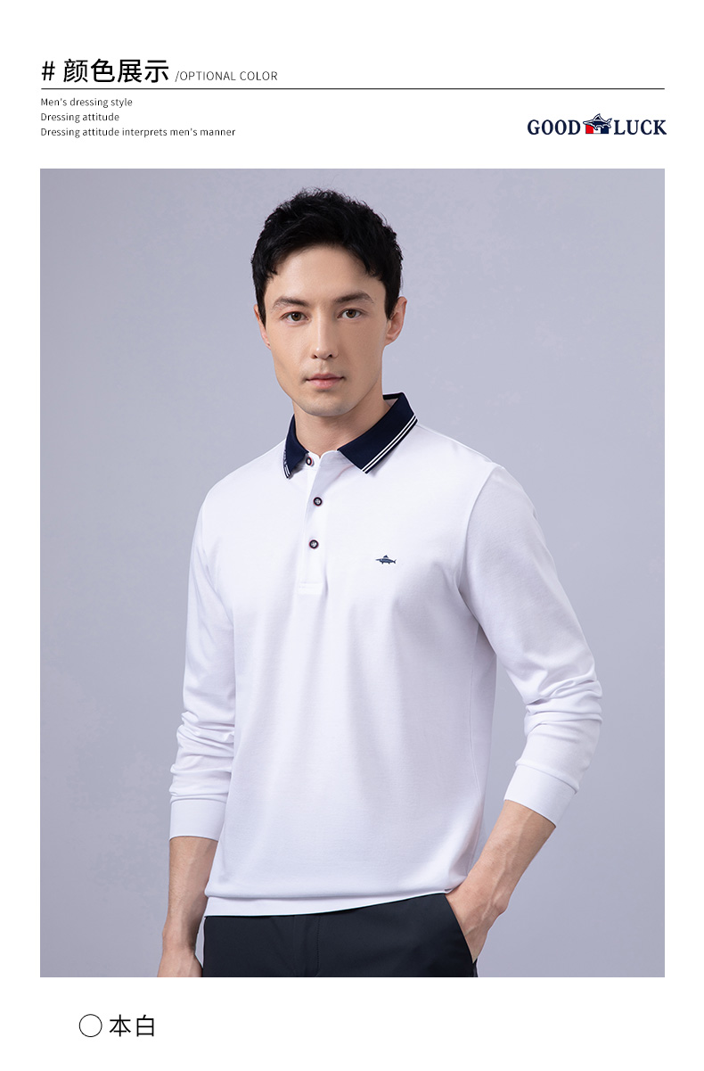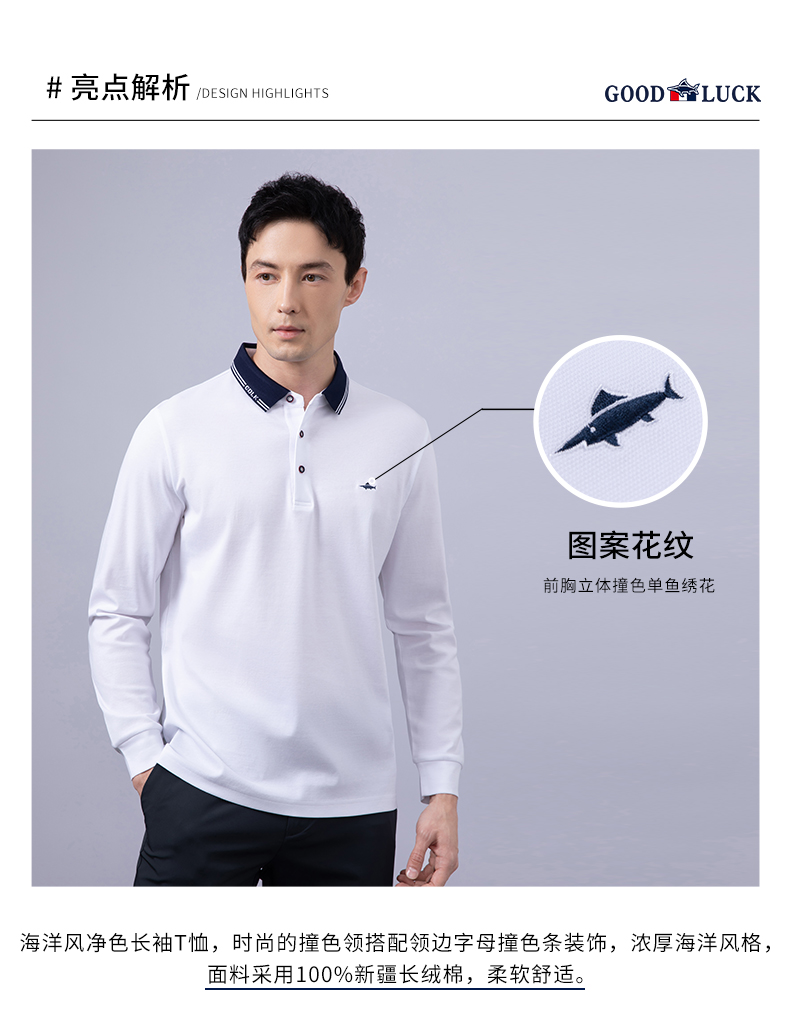 GOOD LUCK/德鲨100%棉海洋风撞色领边时尚休闲T领长袖T恤FY22102-818