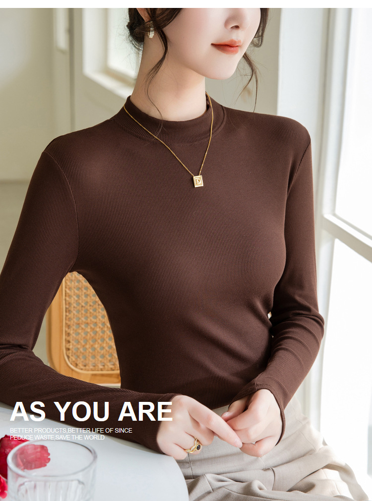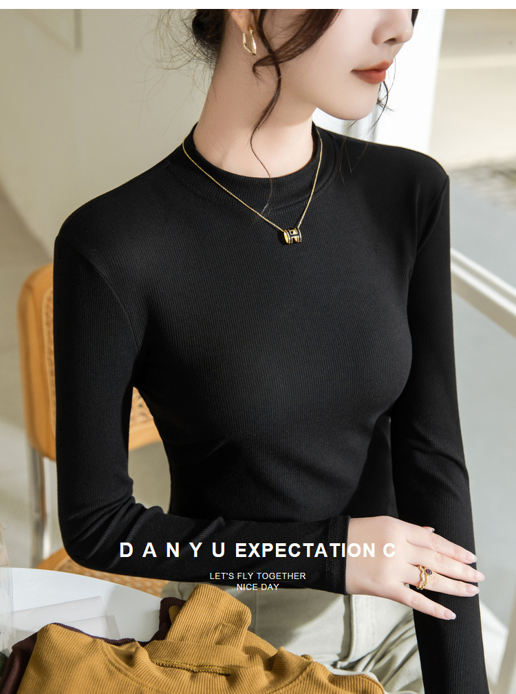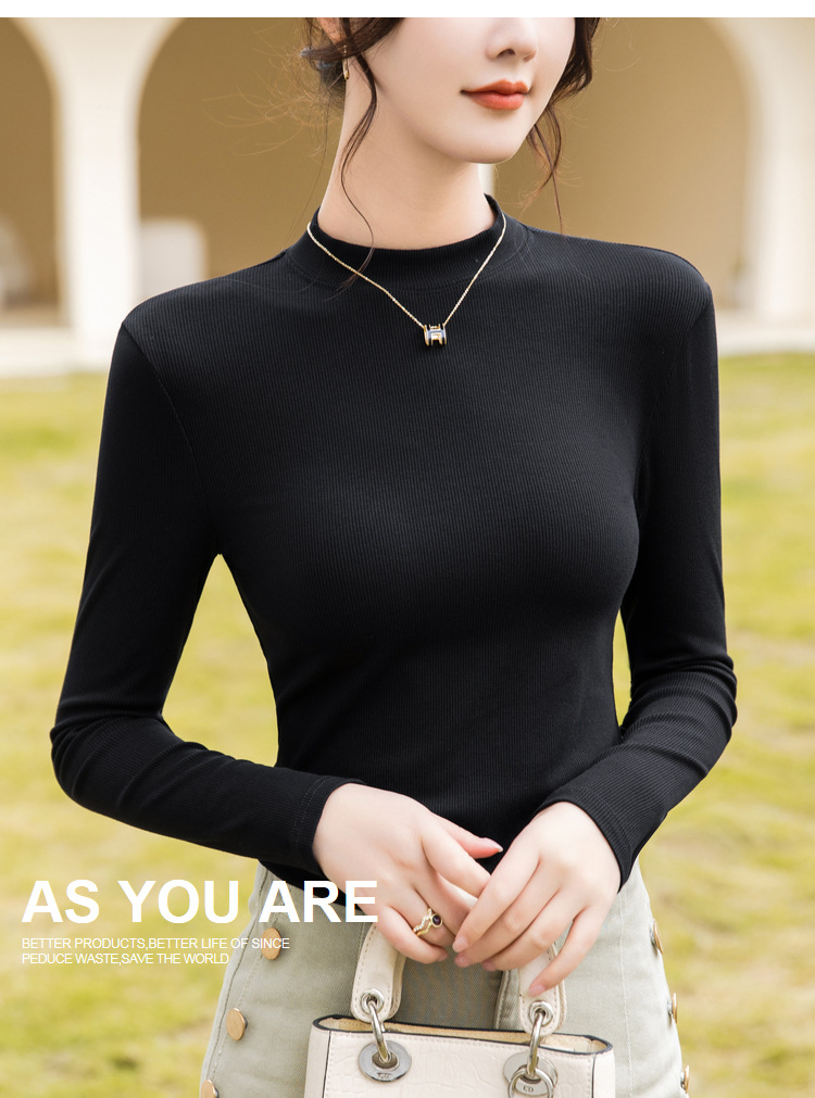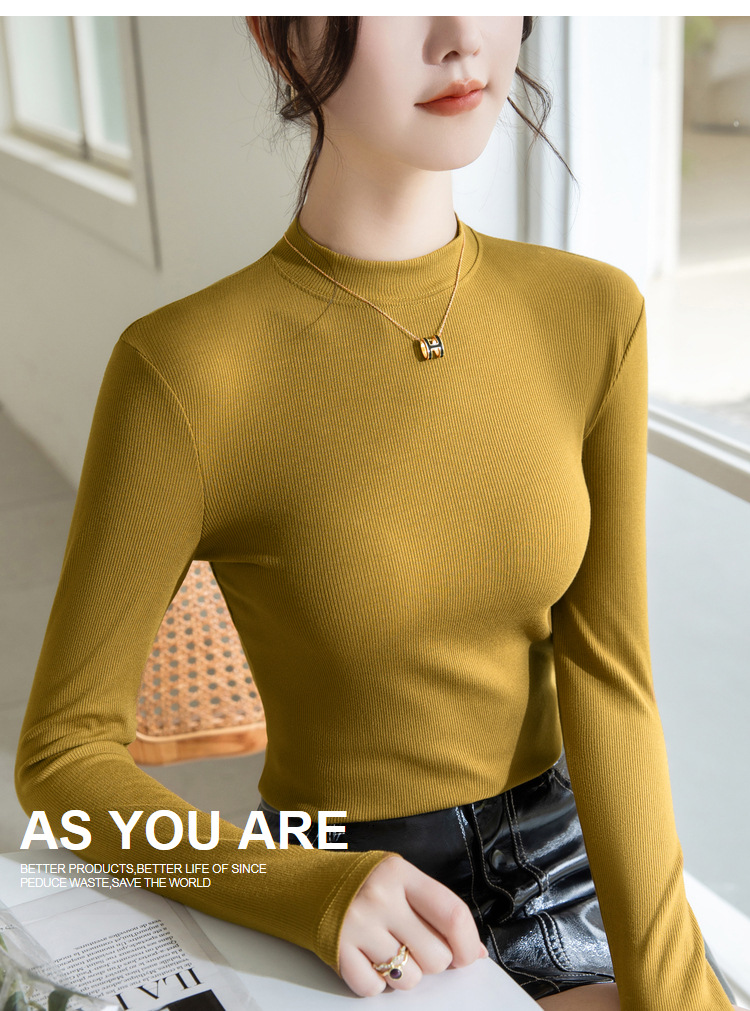 螺纹打底衫女,新款女装正肩小立领长袖t恤春款内搭弹力上衣SG-T2D3292