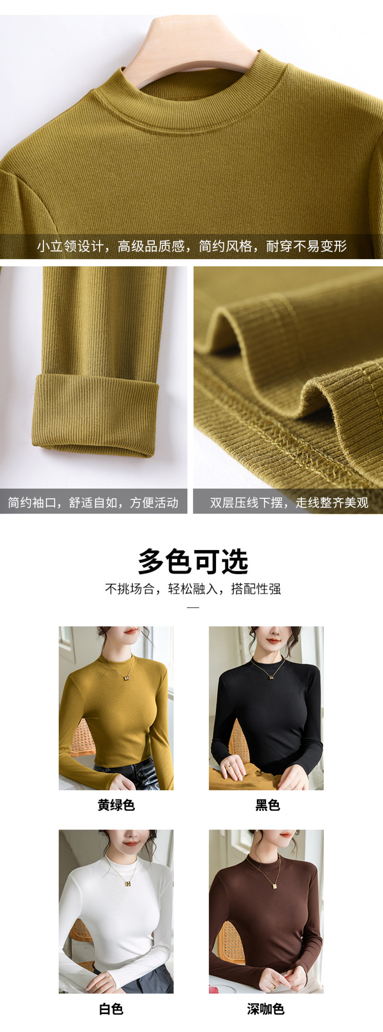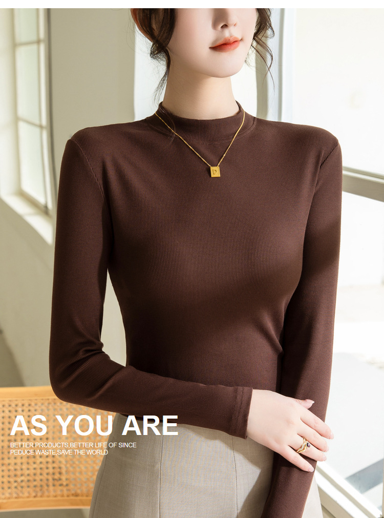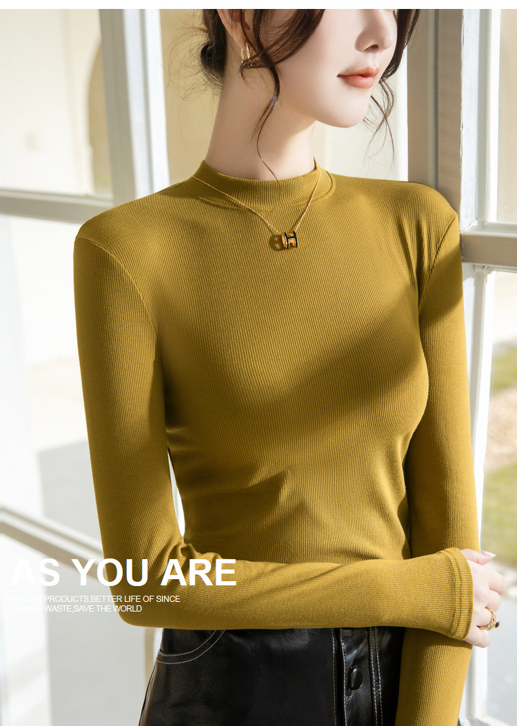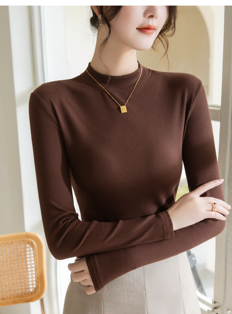 螺纹打底衫女,新款女装正肩小立领长袖t恤春款内搭弹力上衣SG-T2D3292
