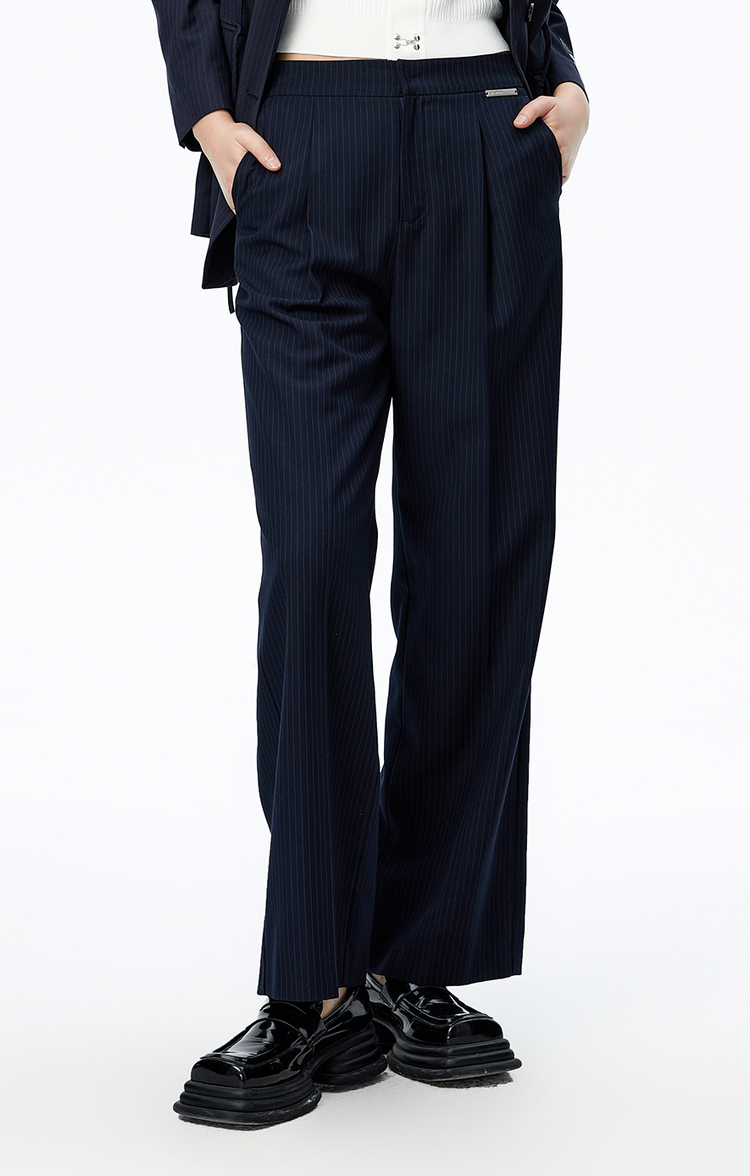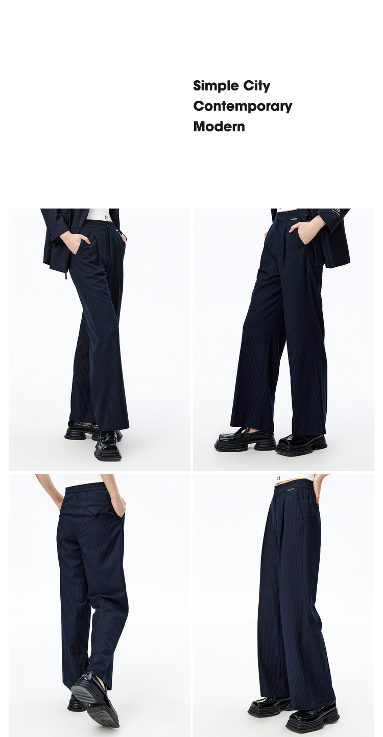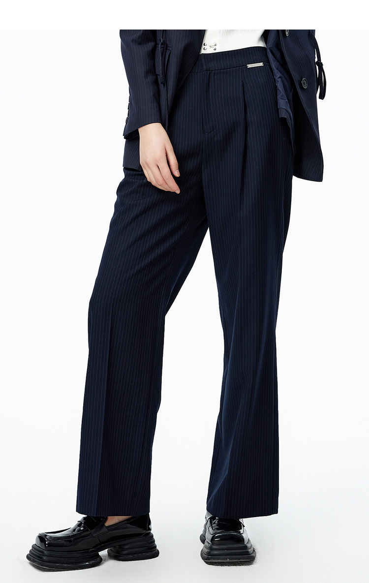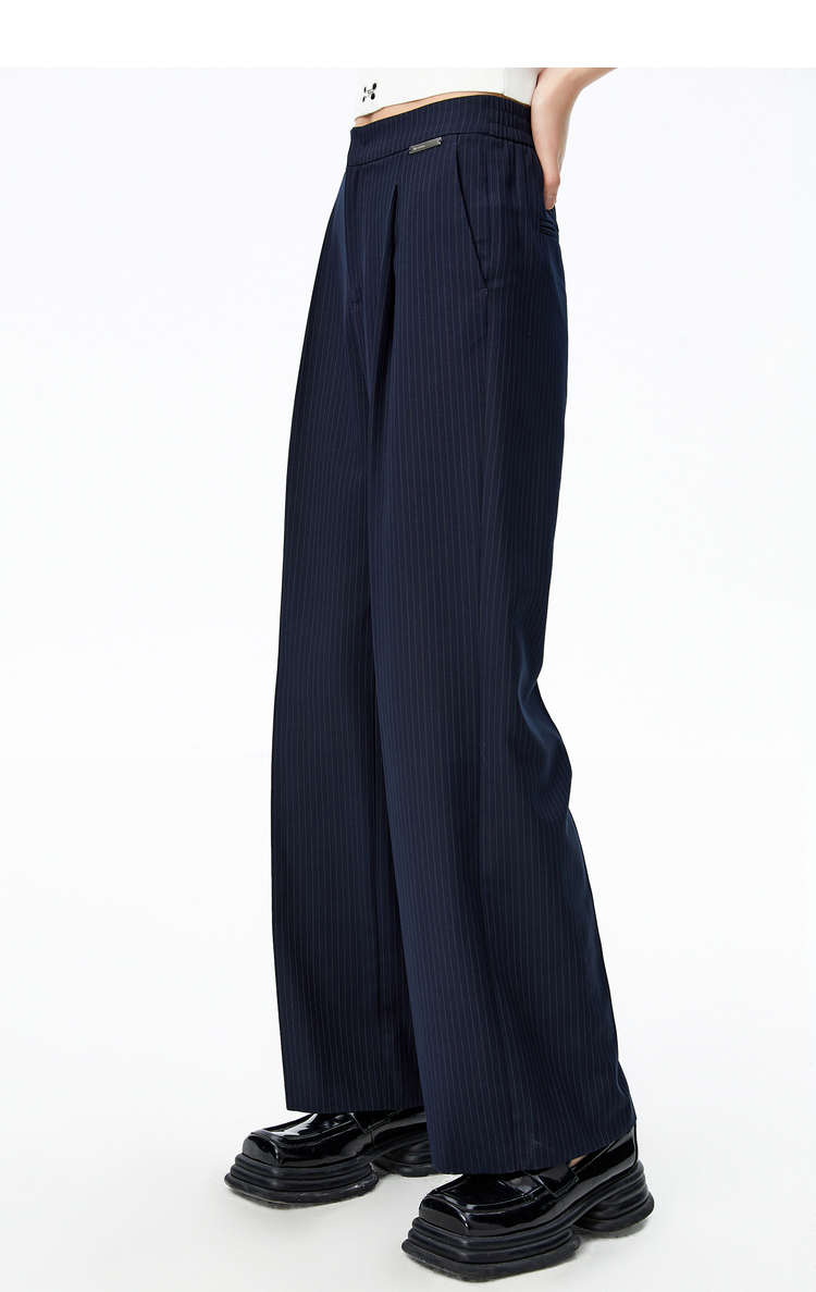 NEELLY纳俪条纹西裤女垂感高级感休闲裤秋季新款宽松直筒阔腿裤N22081H01061