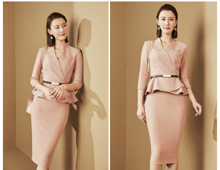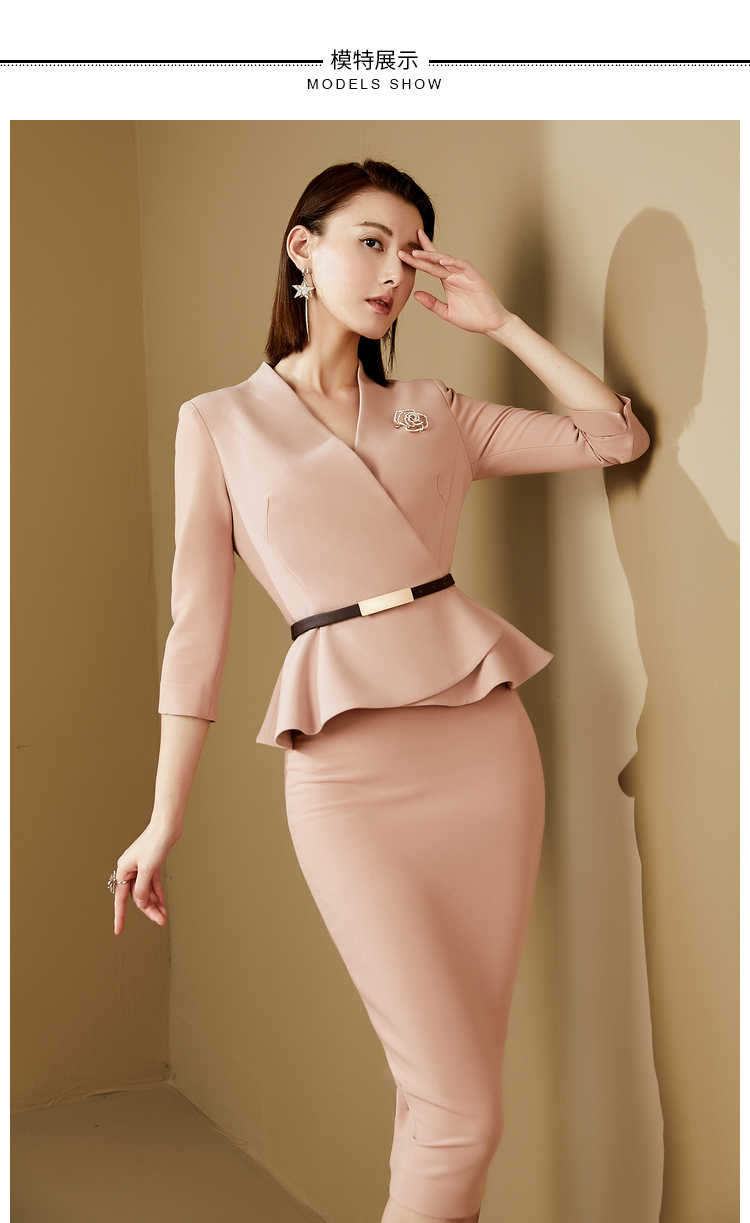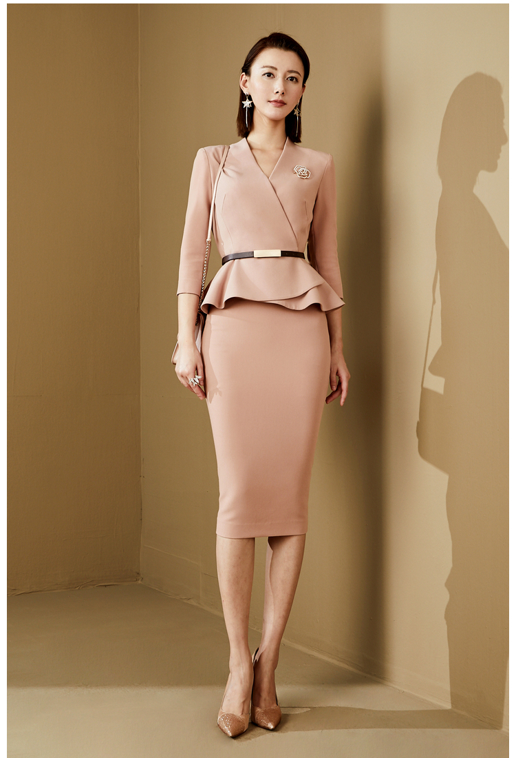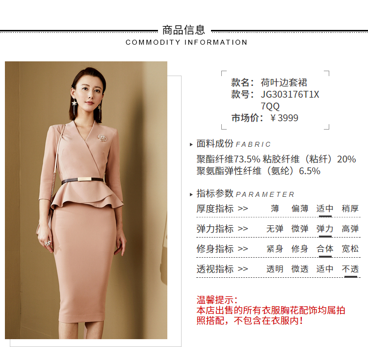 ”黄亦玫 “JG303176T1X5QQ 颈袖添香春夏季时尚气质荷叶边商务职场装女装套装西装套 气质修身荷叶边套裙JG303176T1X7QQ
