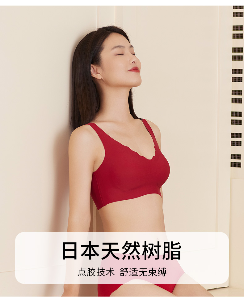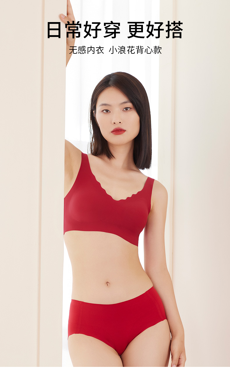 【中国红/黑色】熳洁儿 无痕自由bra无感内衣棉感面料小浪花背心款文胸22701527