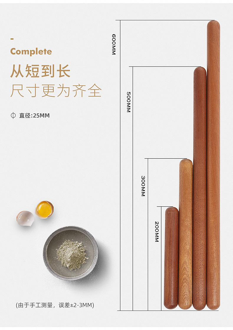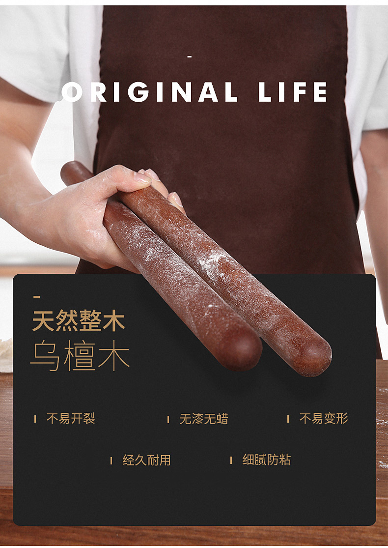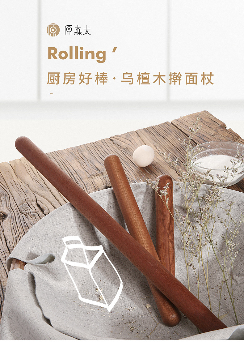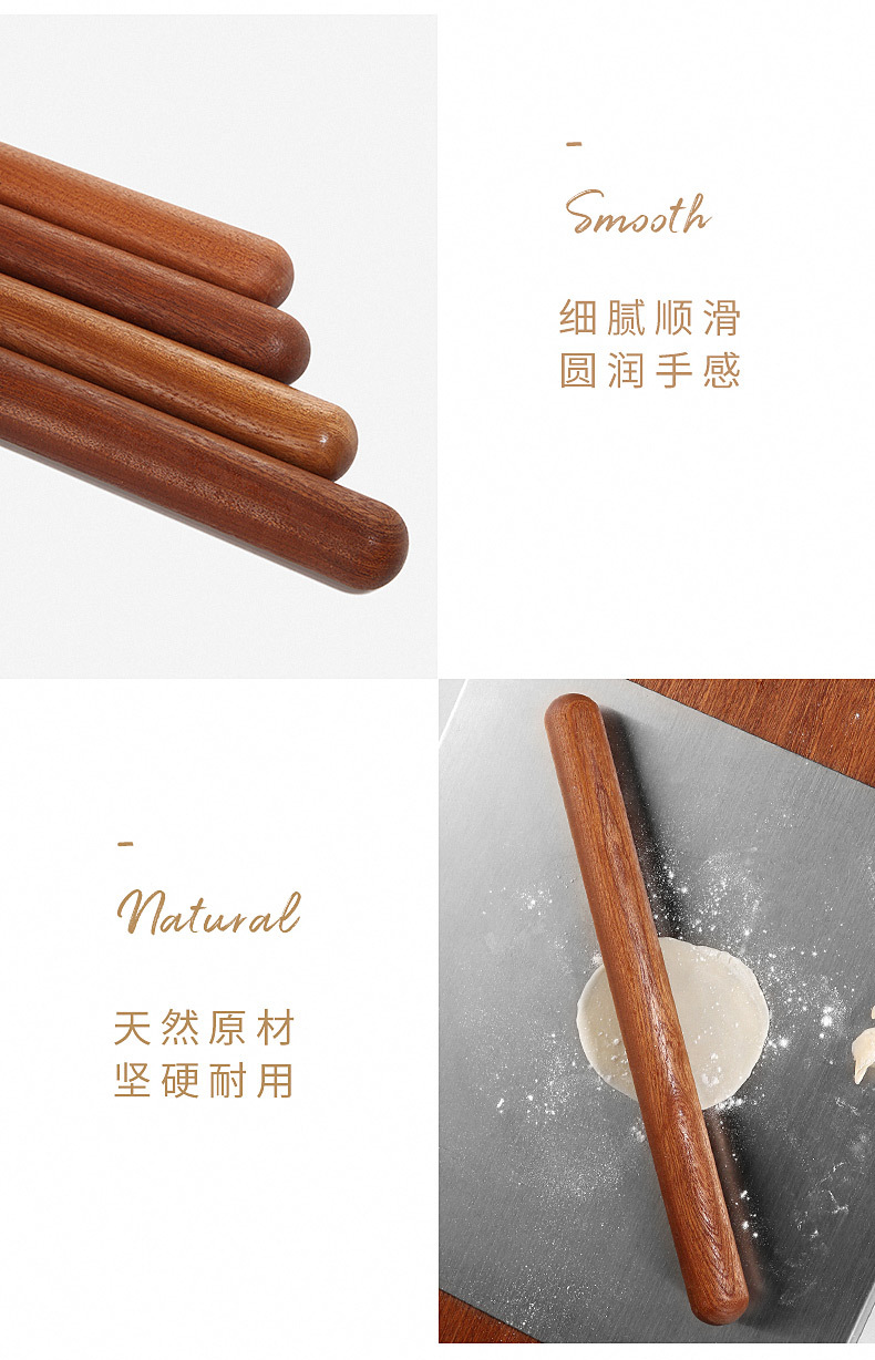 【不易开裂 无漆无蜡】原森太擀面杖实木擀面棍家用赶面棍面棒杆面棍杖擀饺子皮