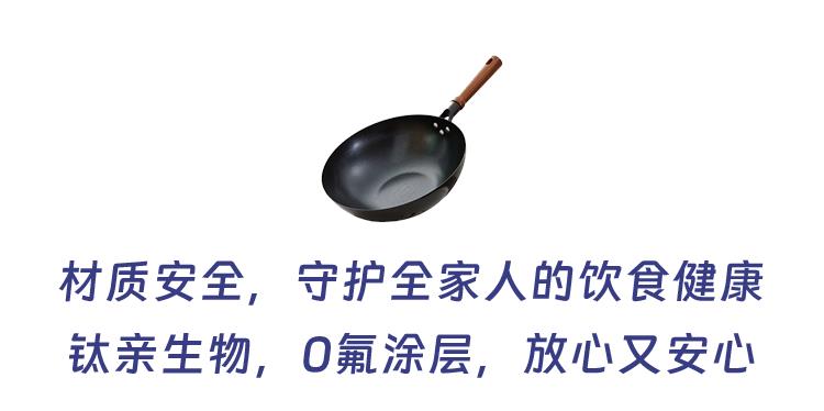 健康安全:无氟、无化学涂层,钛金属的亲生物特性,全家都能安心用;