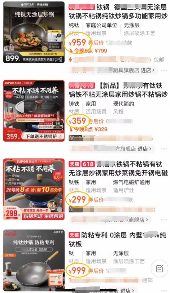 帮大家上网搜一搜,现在外面的钛锅卖多少米?