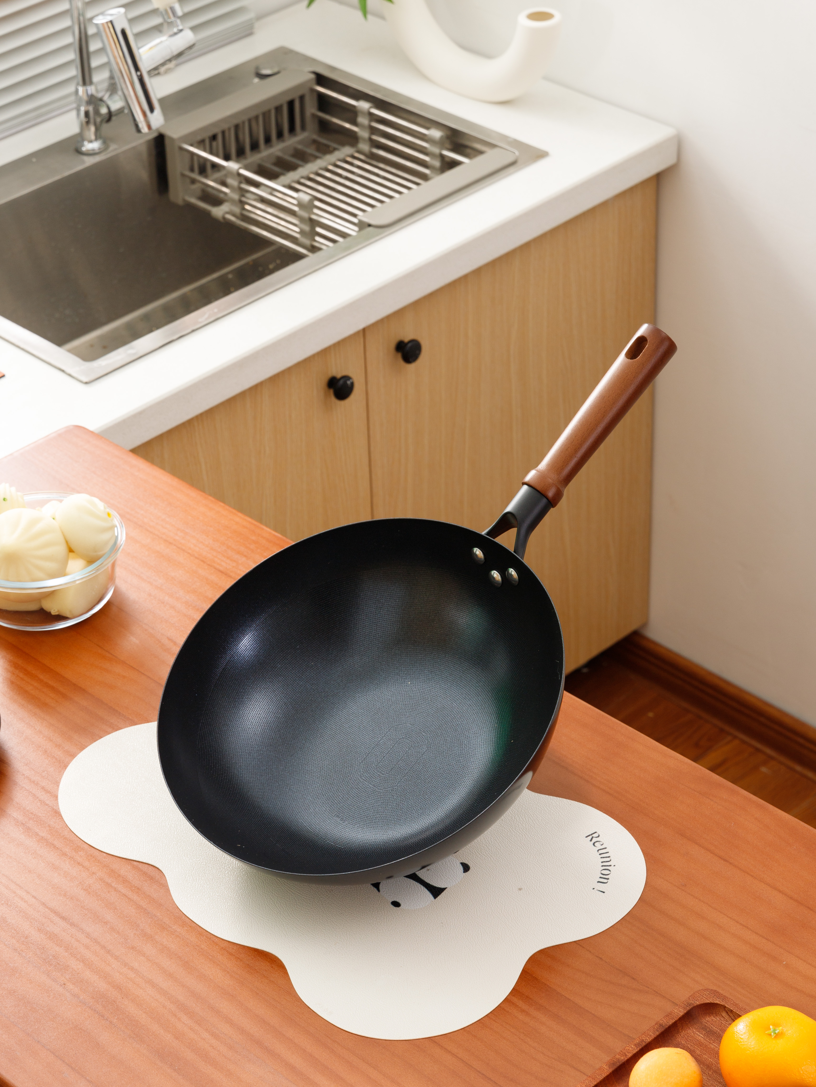 搭配天然榉木做的手柄,握感温润、防烫,颠炒时仿佛在撸一只乖巧的猫咪。