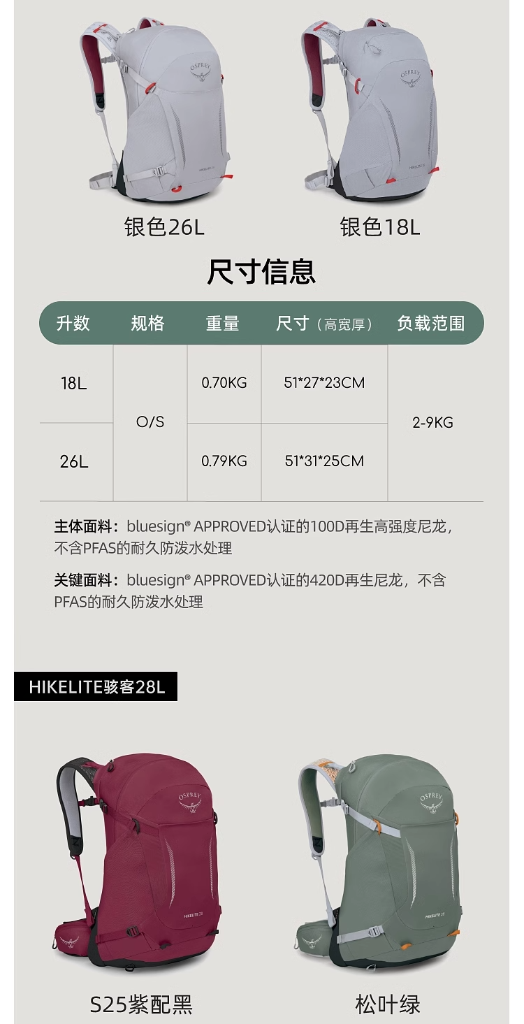 OSPREY Hikelite 小鹰骇客26L户外双肩背包徒步登山包旅行包