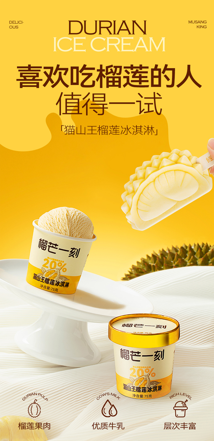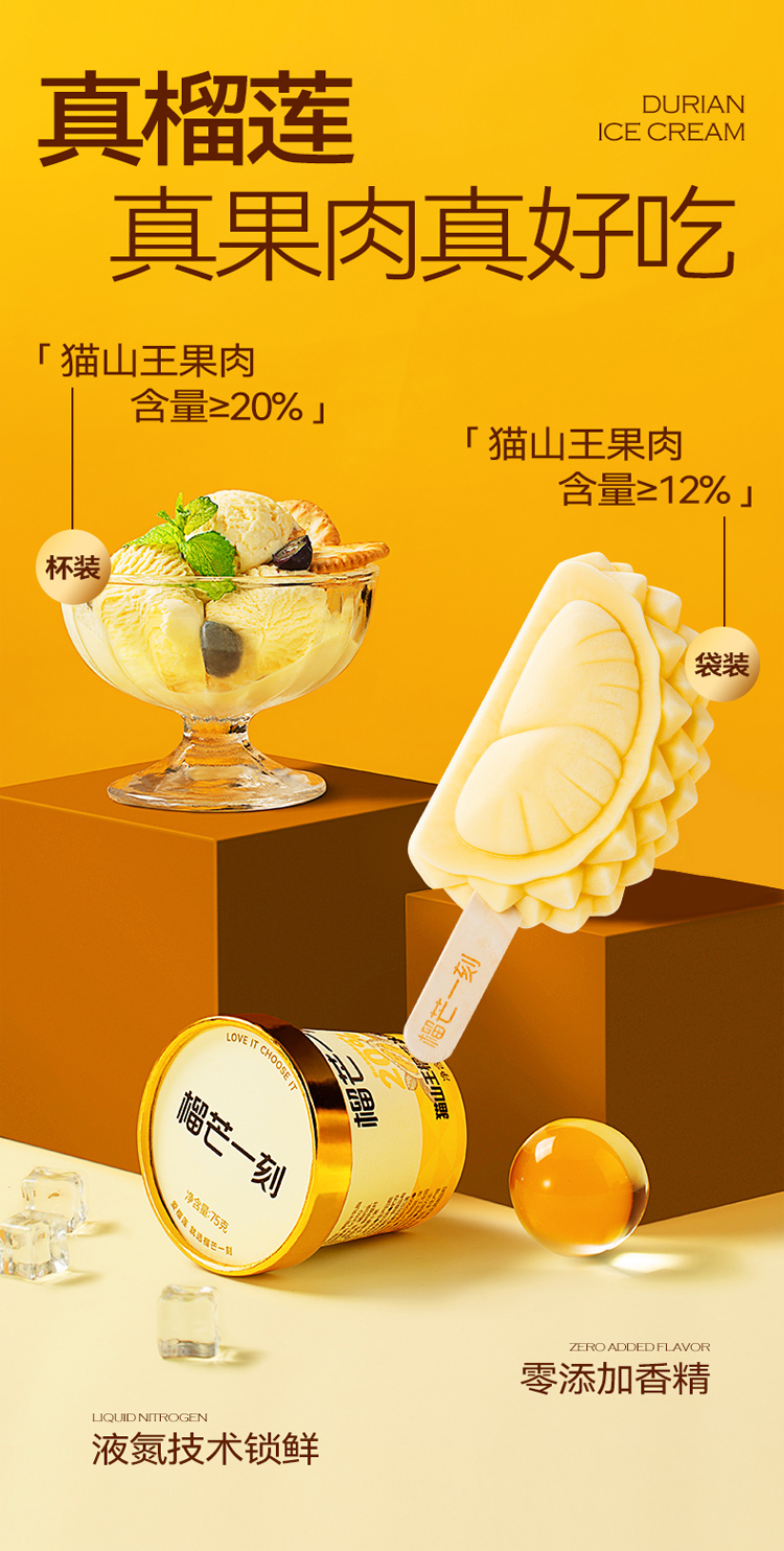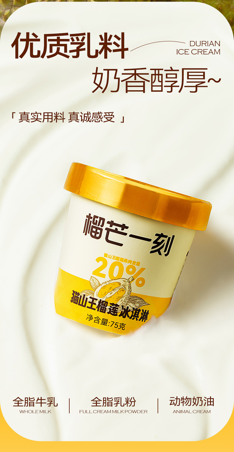 【榴芒一刻】70g猫山王榴莲冰淇淋(条)/75g猫山王榴莲冰淇淋(杯)