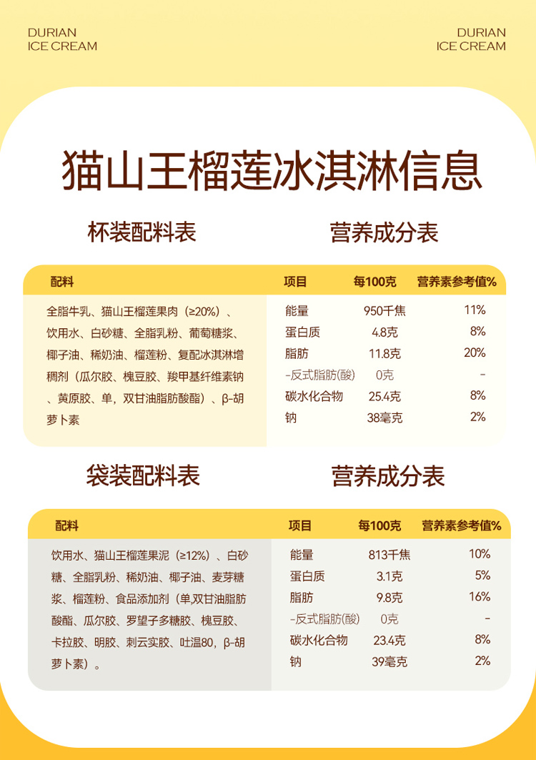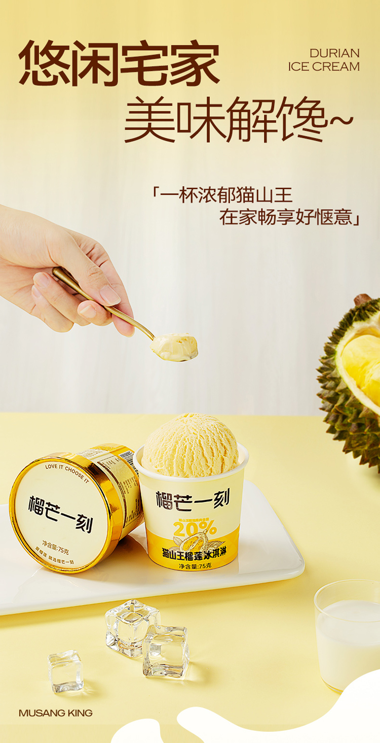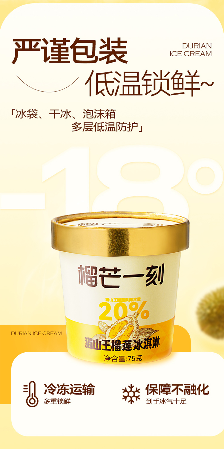 【榴芒一刻】70g猫山王榴莲冰淇淋(条)/75g猫山王榴莲冰淇淋(杯)