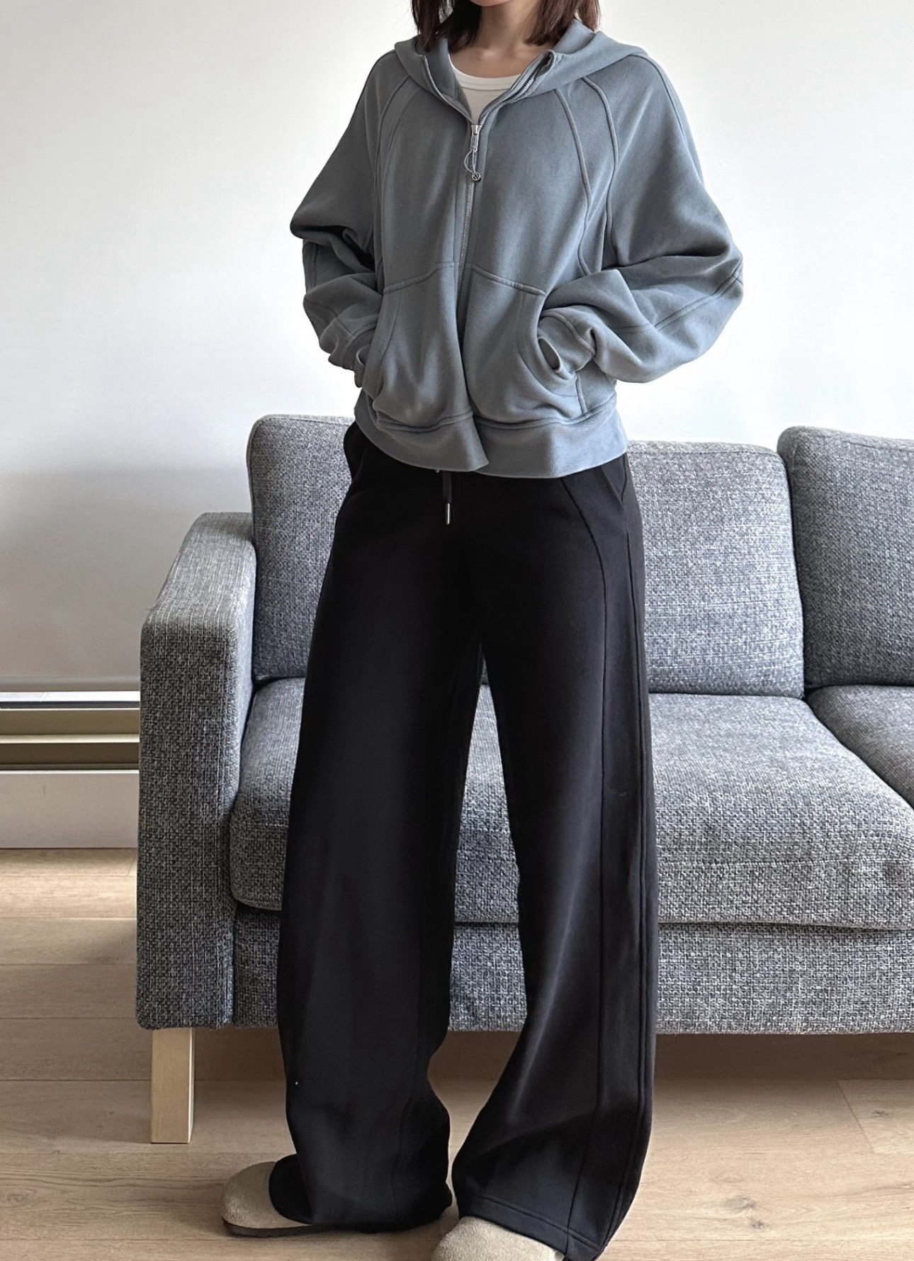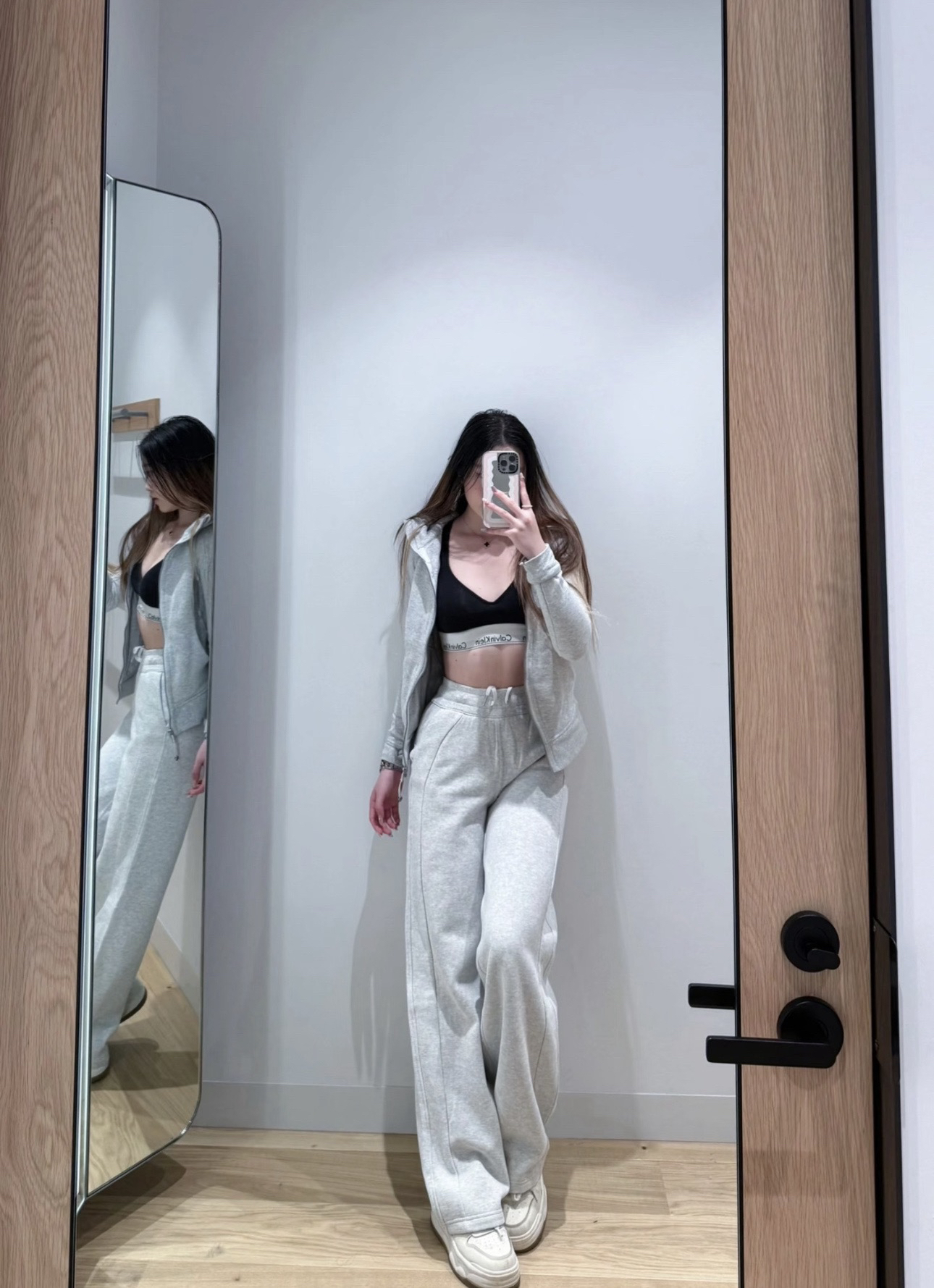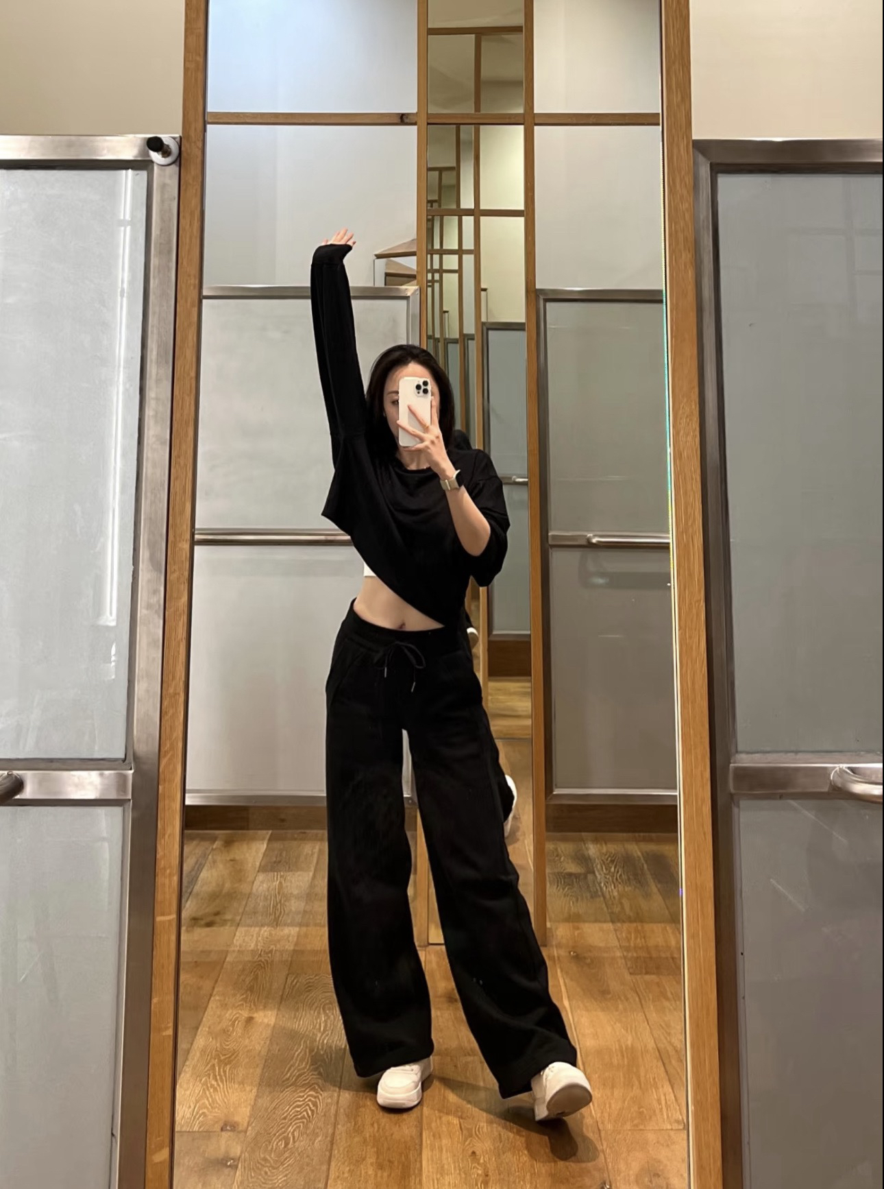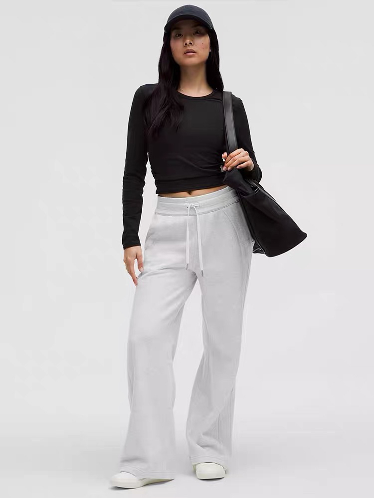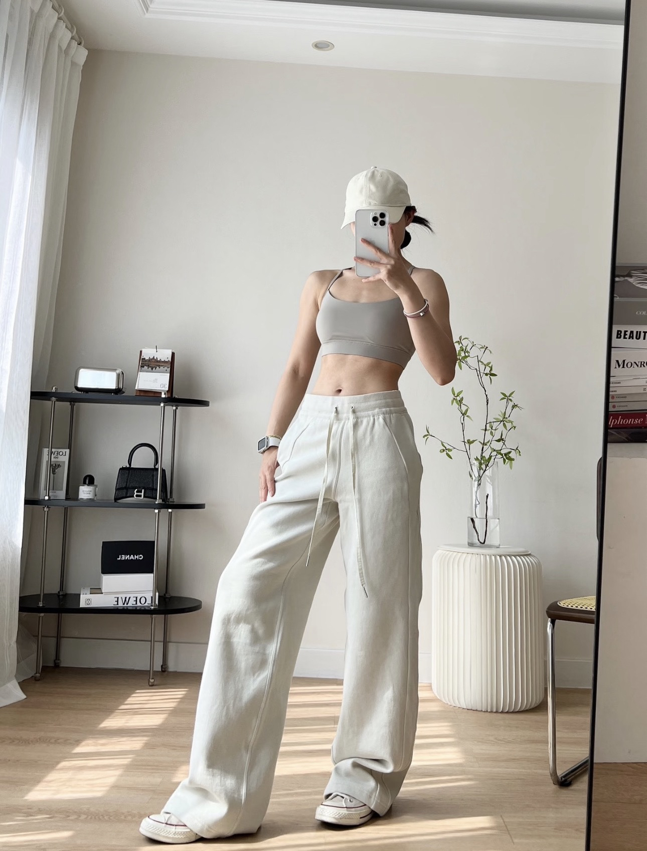直筒阔腿版型 轻松修饰腿粗假胯宽等问题,视觉更藏肉更显腿瘦腿直!精准中腰设计不卡腰不勒肤,搭配加宽螺纹松紧腰,可贴合不同腰围,久坐无束缚,搭载双侧加宽设计的"小心机" 舒适度和包容性都很好,后臀处立体剪裁 能够更好的塑造臀部线条!