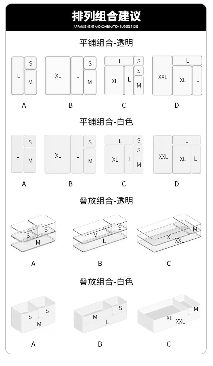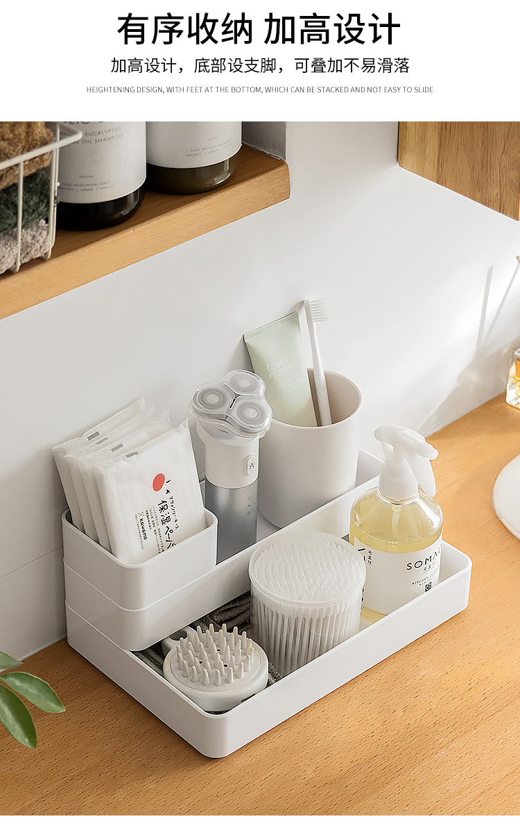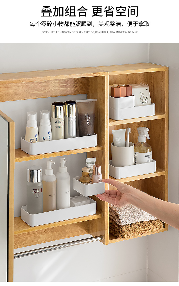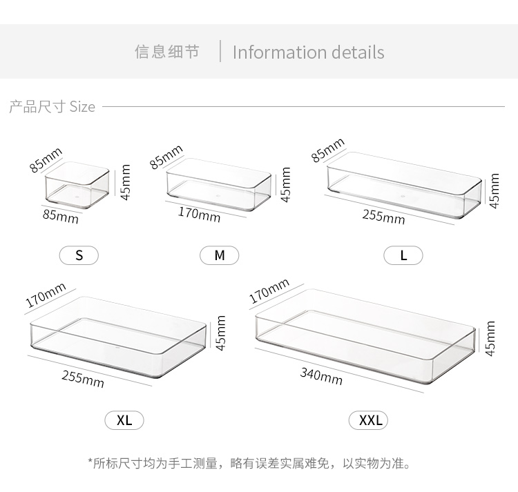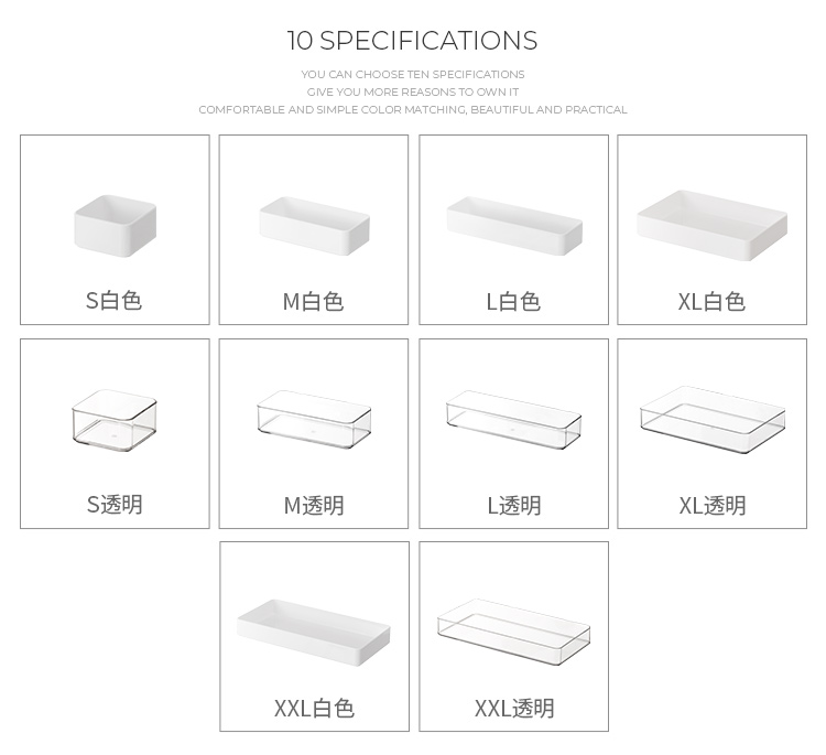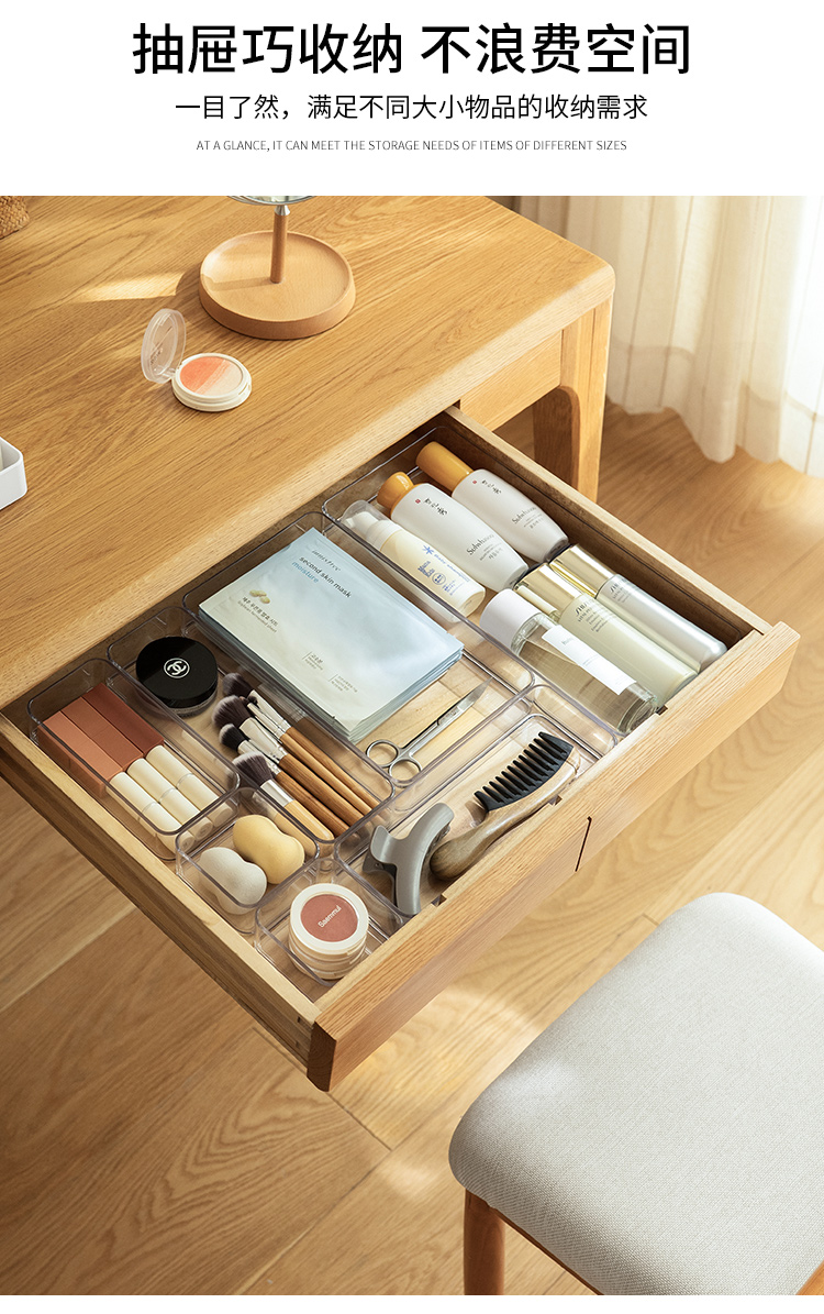 可叠加抽屉收纳盒桌面文具化妆品镜柜分隔盒亚克力质感分格整理盒