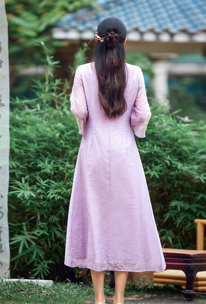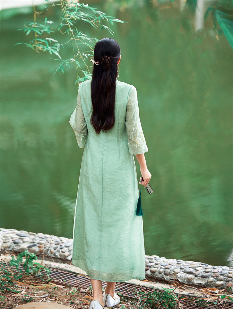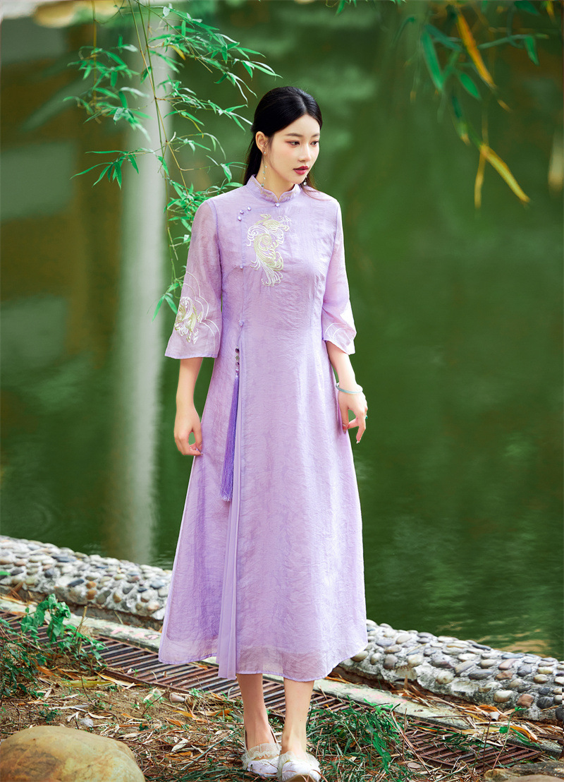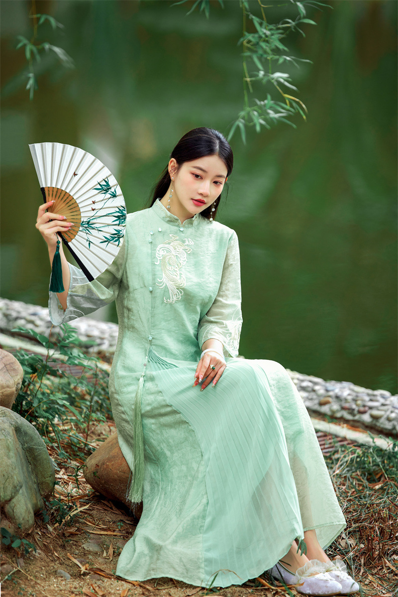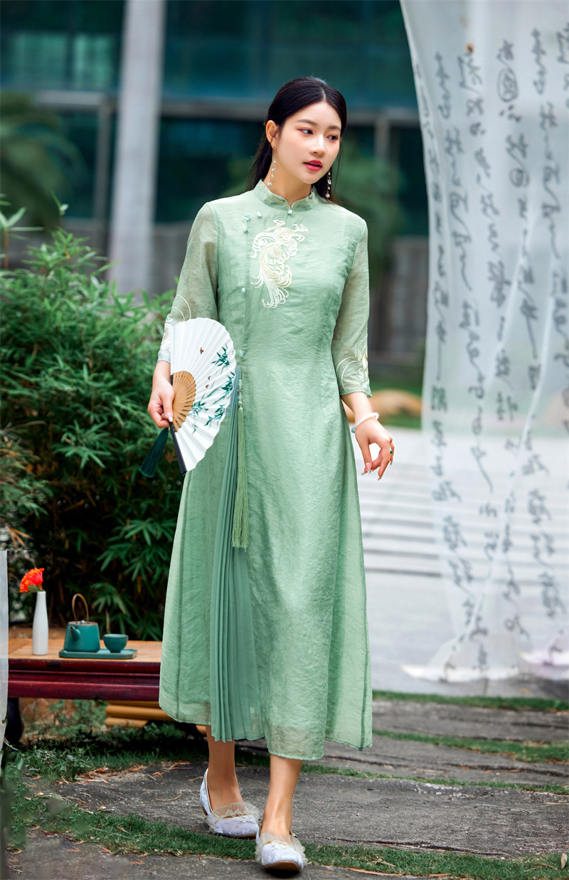 FLZD-2381夏季高定版改良旗袍流苏重工刺绣新中式国风开叉压褶连衣裙