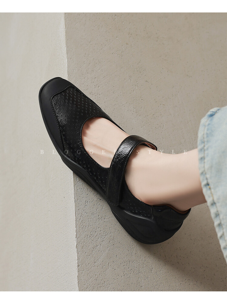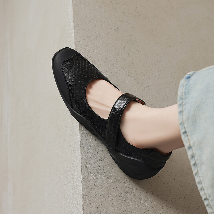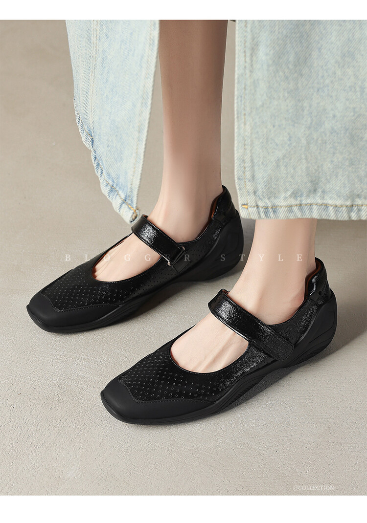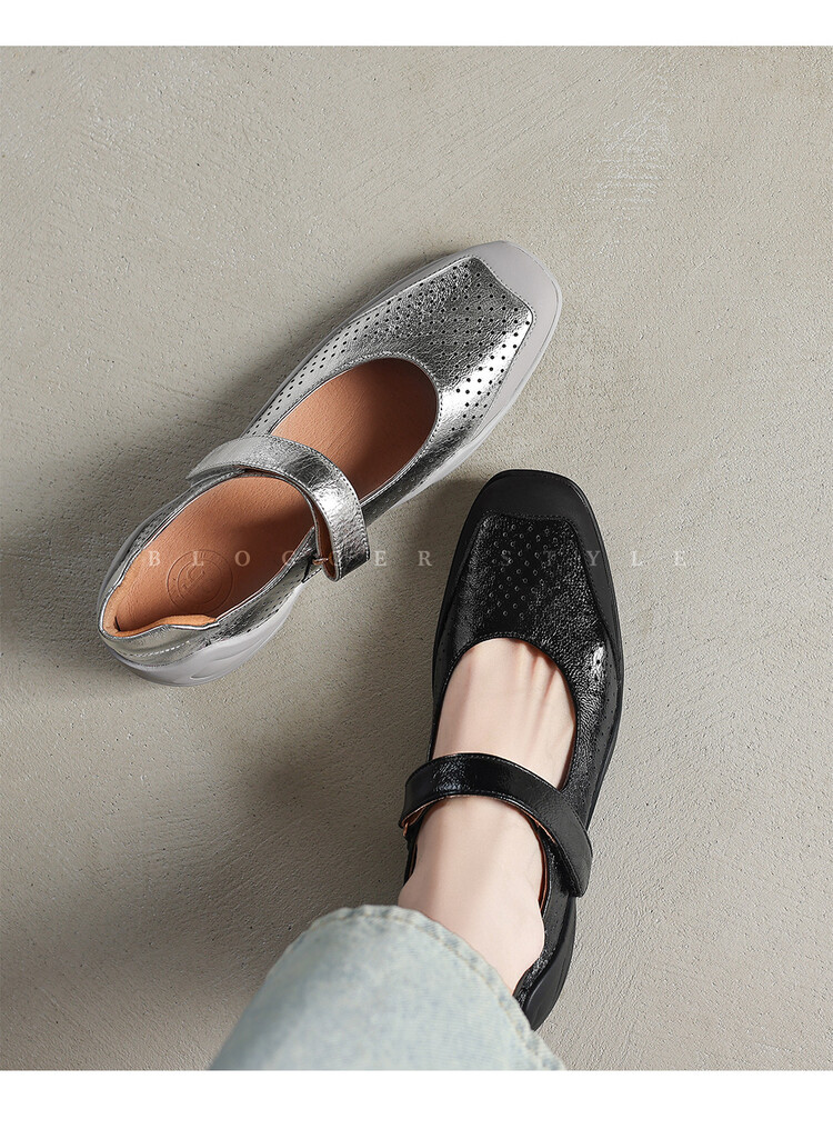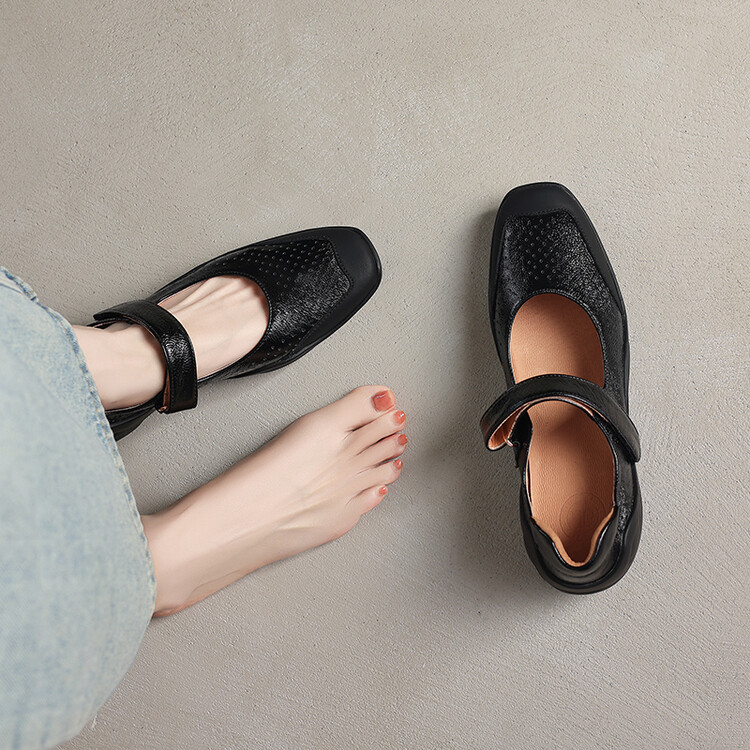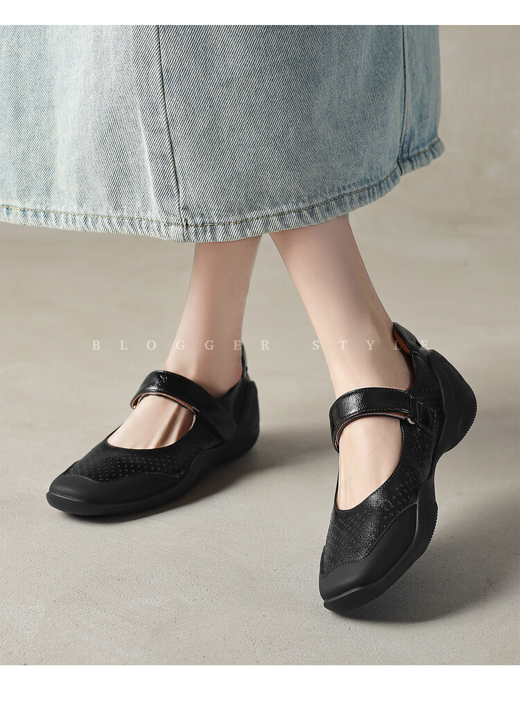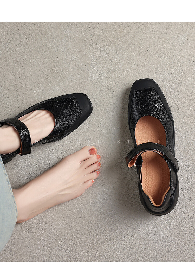 【预售5天】羊皮版~新款韩版小众方头芭蕾风休闲浅口魔术贴一字带单鞋女DTN&D158-1