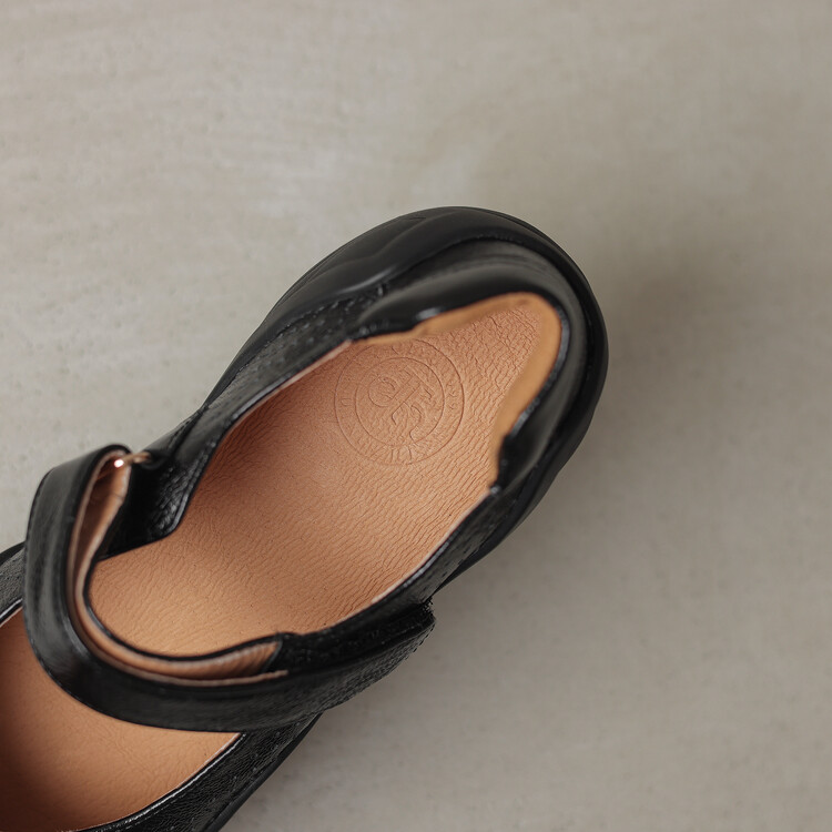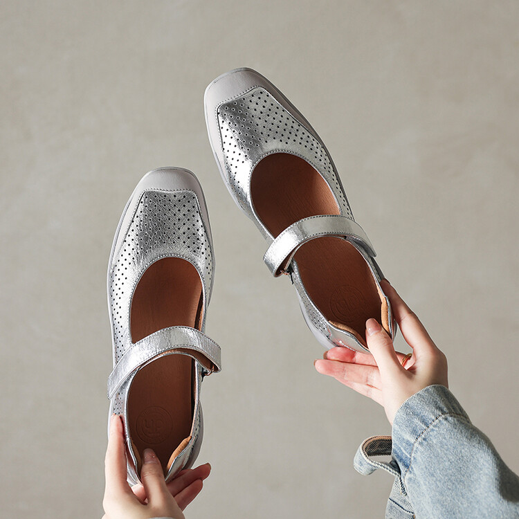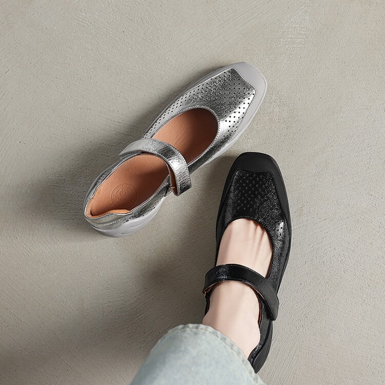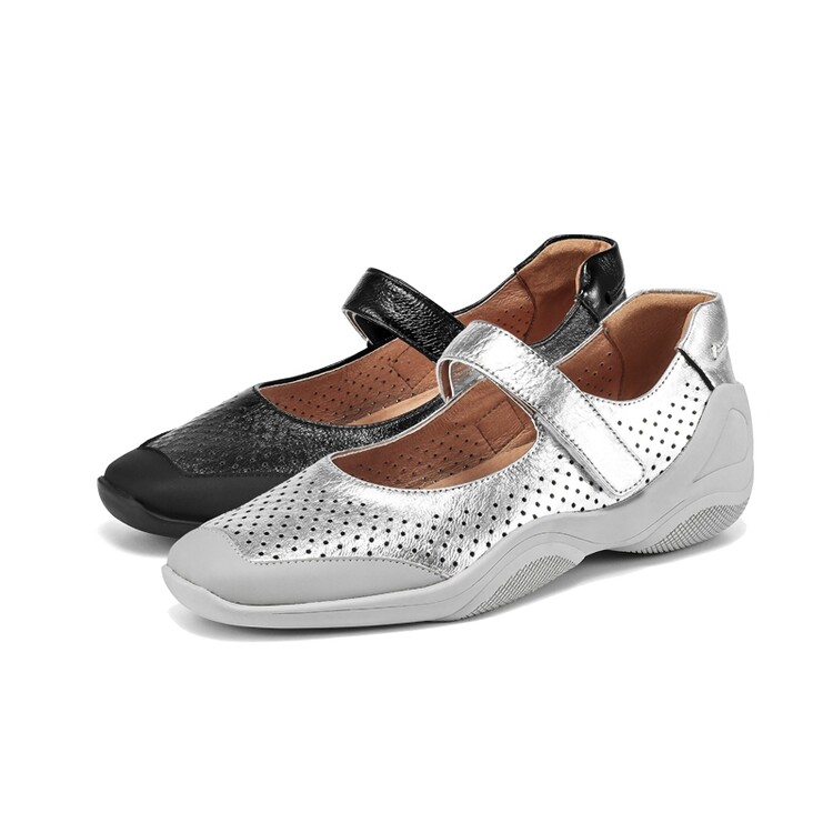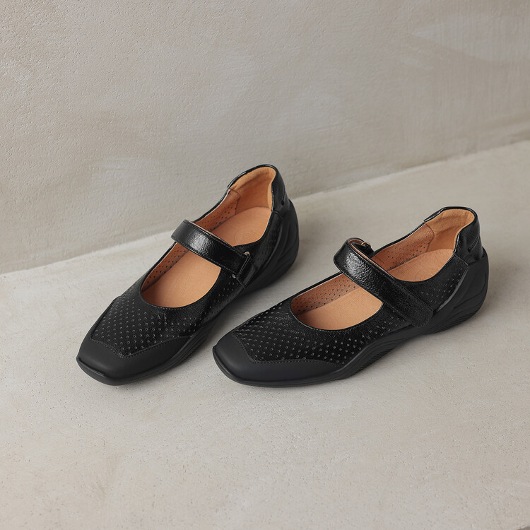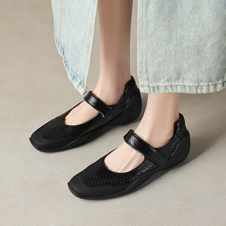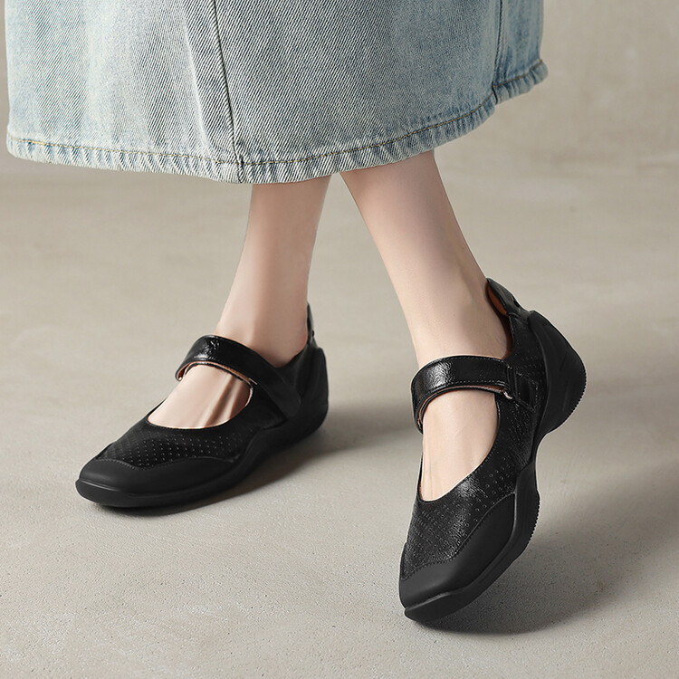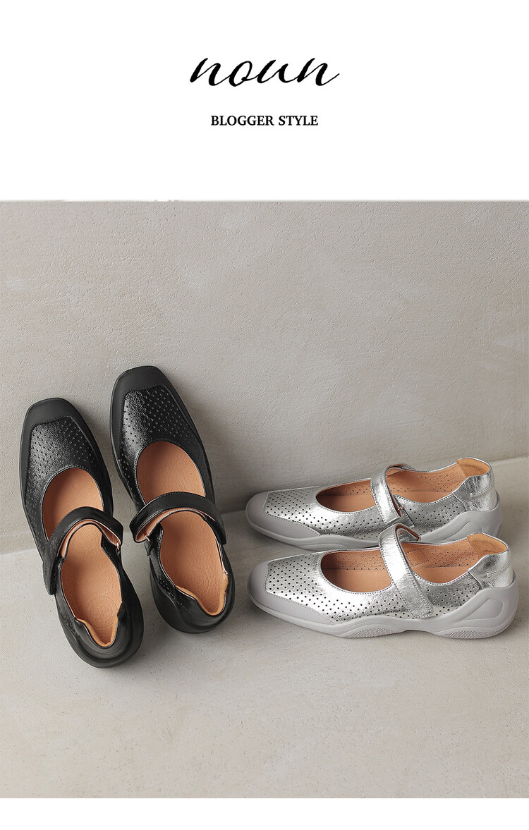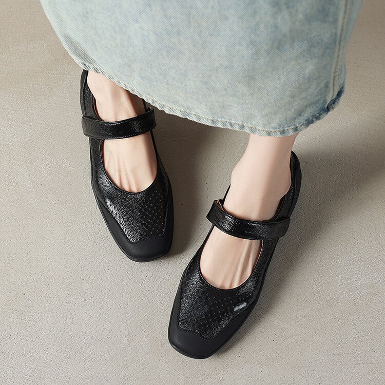 【预售5天】羊皮版~新款韩版小众方头芭蕾风休闲浅口魔术贴一字带单鞋女DTN&D158-1