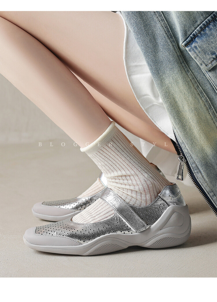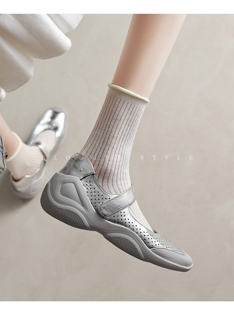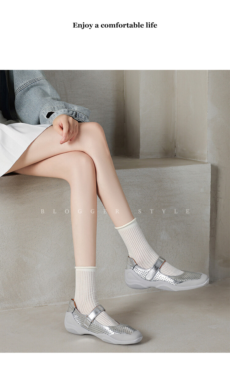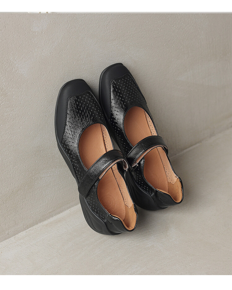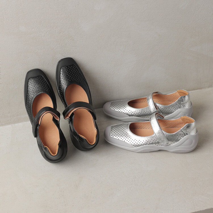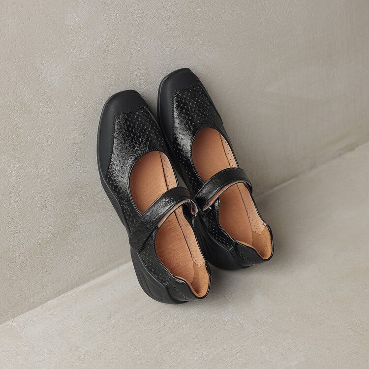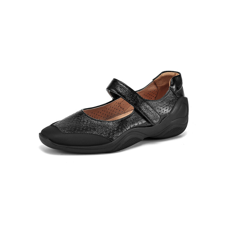 【预售5天】羊皮版~新款韩版小众方头芭蕾风休闲浅口魔术贴一字带单鞋女DTN&D158-1