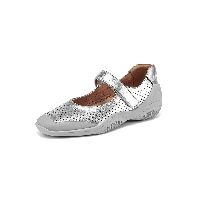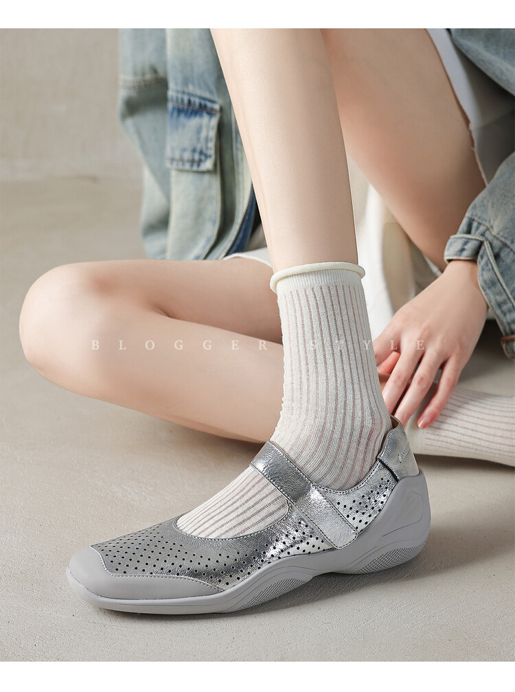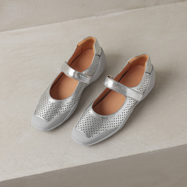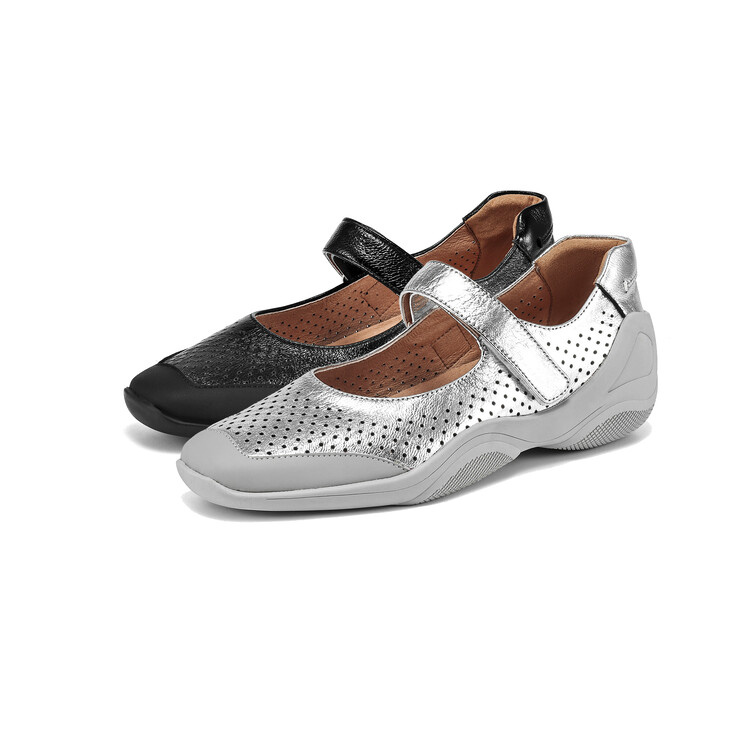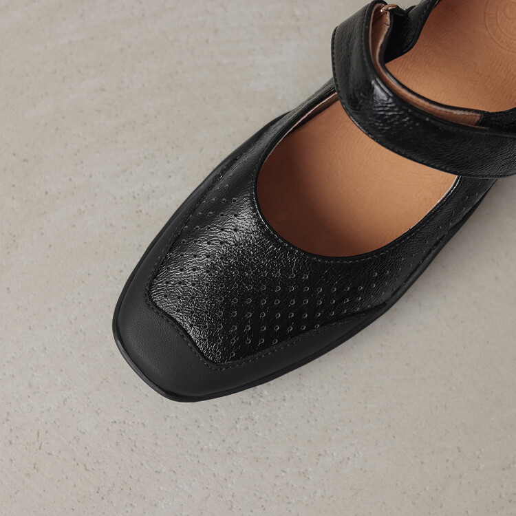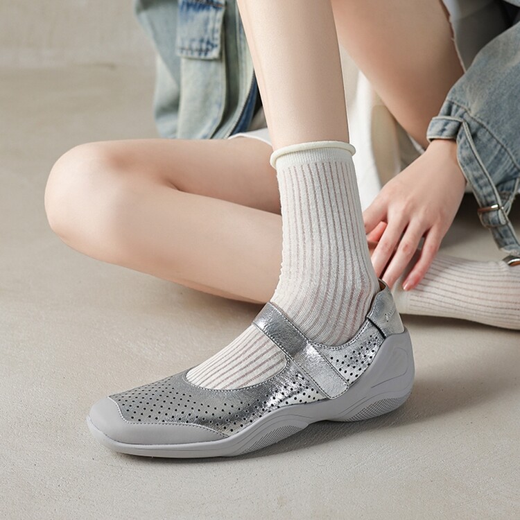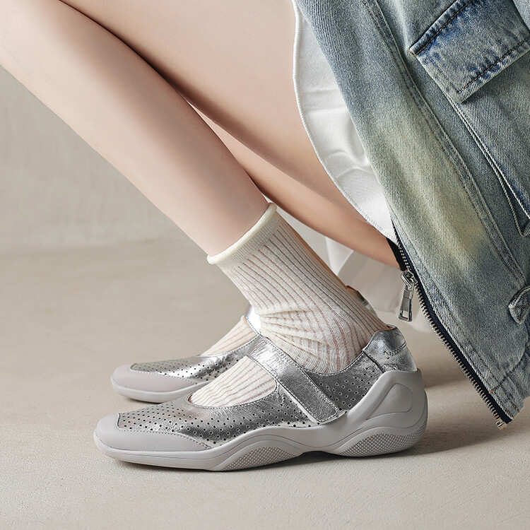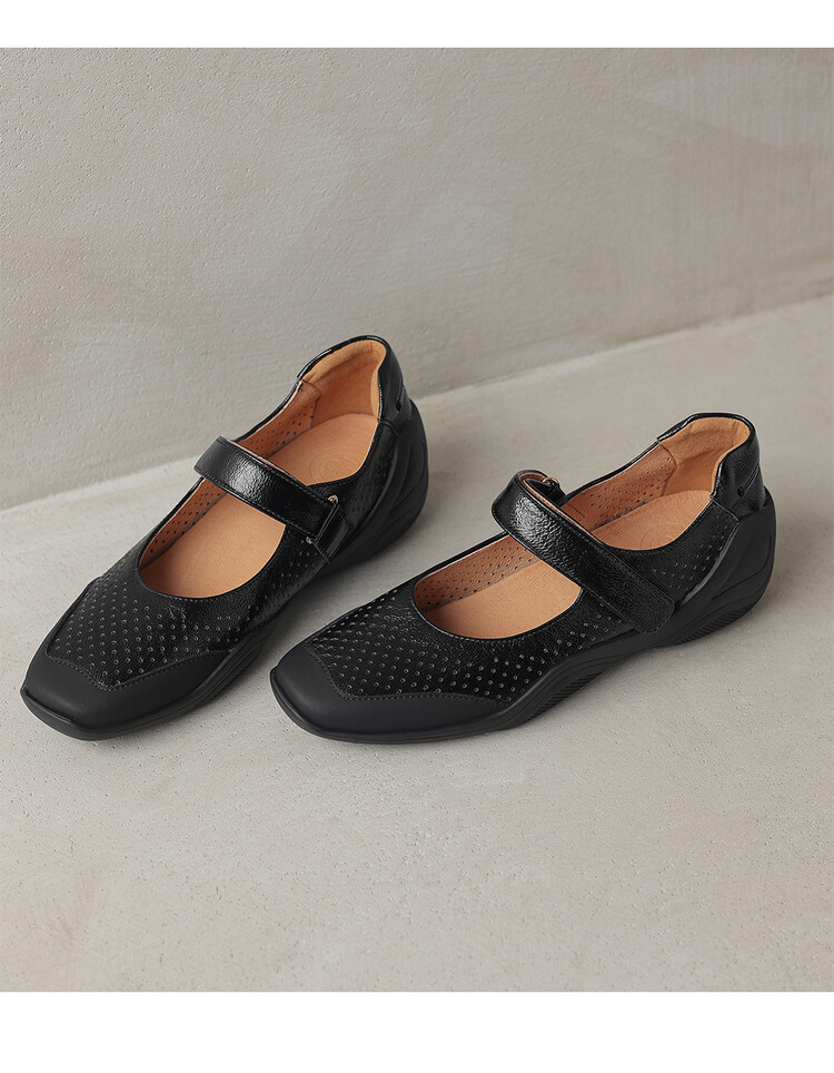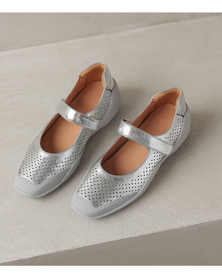 【预售5天】羊皮版~新款韩版小众方头芭蕾风休闲浅口魔术贴一字带单鞋女DTN&D158-1